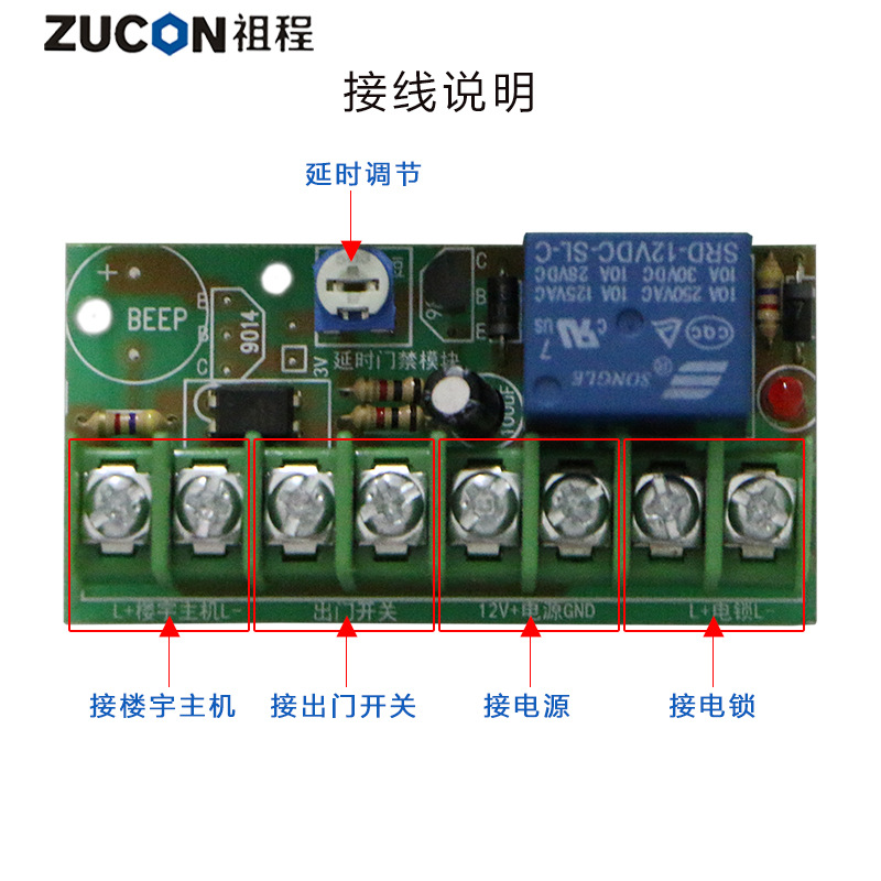 ZUCON祖程K10T磁力鎖延時電路板 樓宇對講門禁控制電源模塊 控制開關