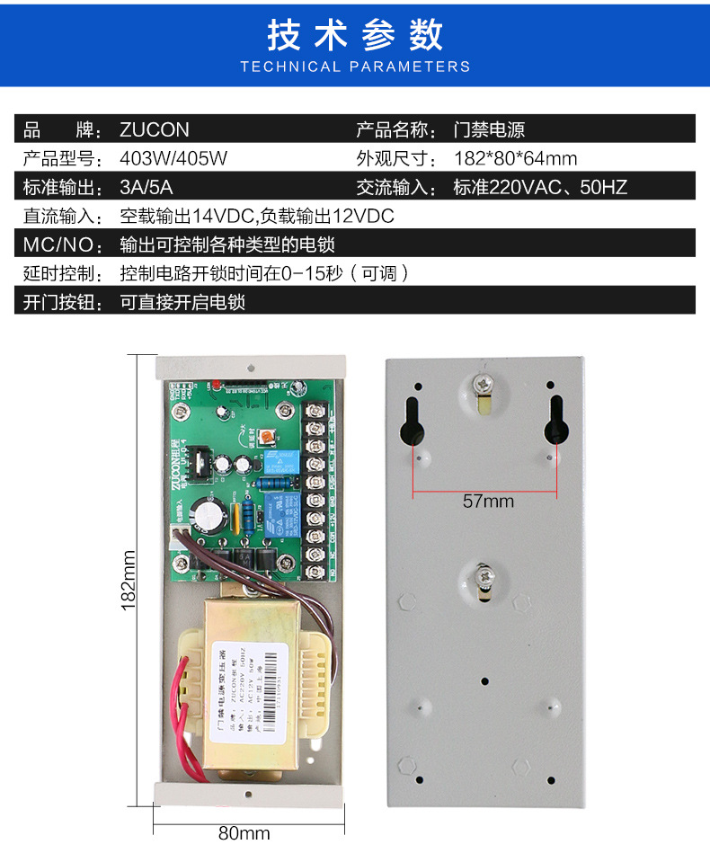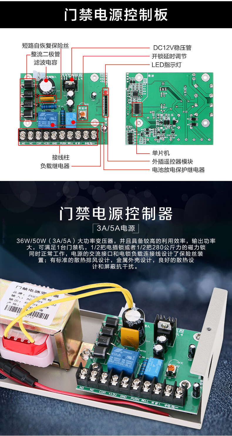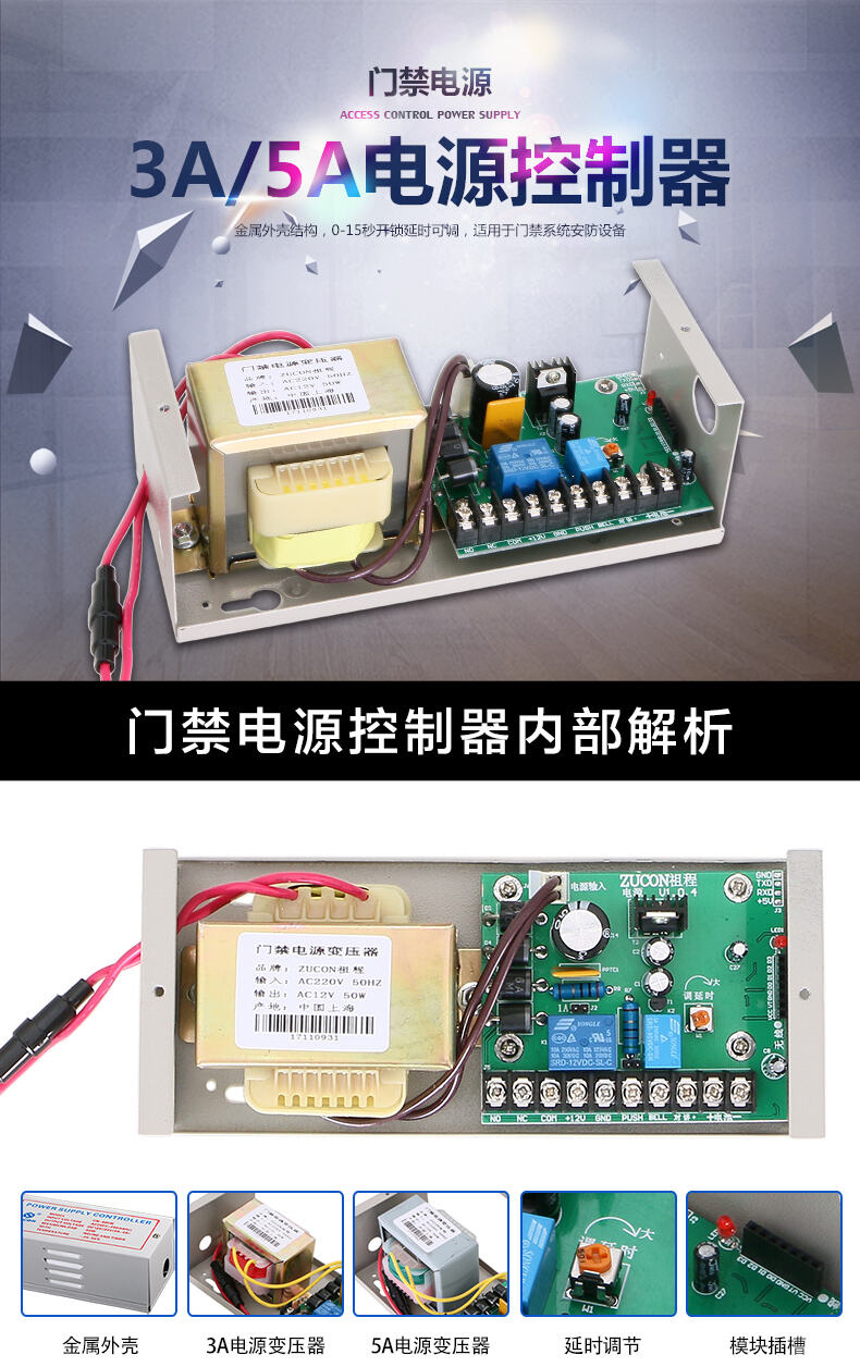 ZUCON祖程403W、405W門禁系統(tǒng)配套電源 3A5A門鎖控制器外接電插鎖磁力鎖