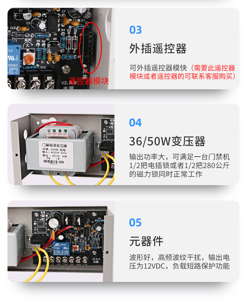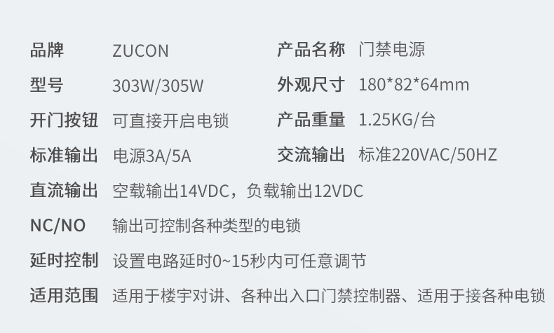 ZUCON祖程303W、305W門禁電源12v5a門禁專用電源控制器電路板12v3a變壓器