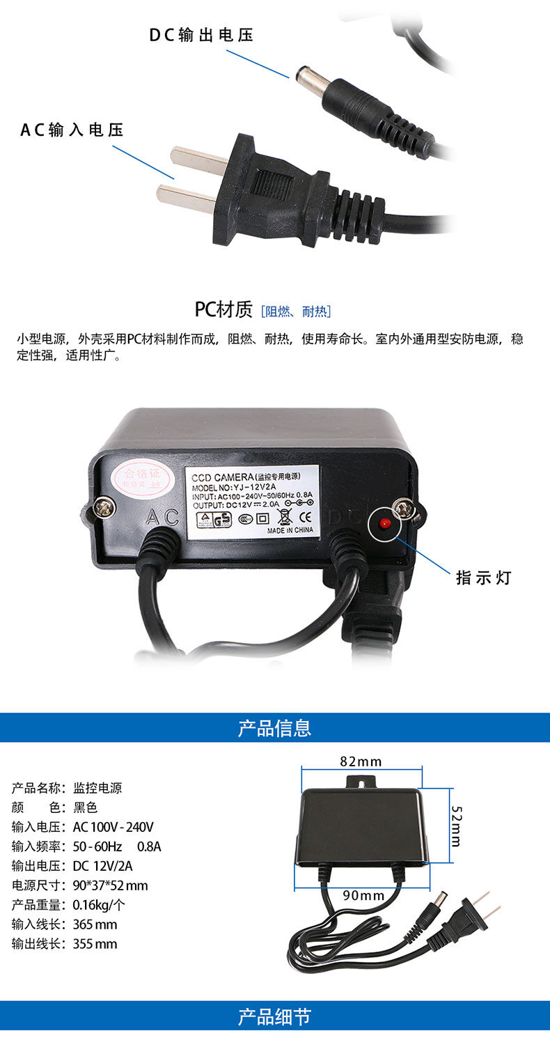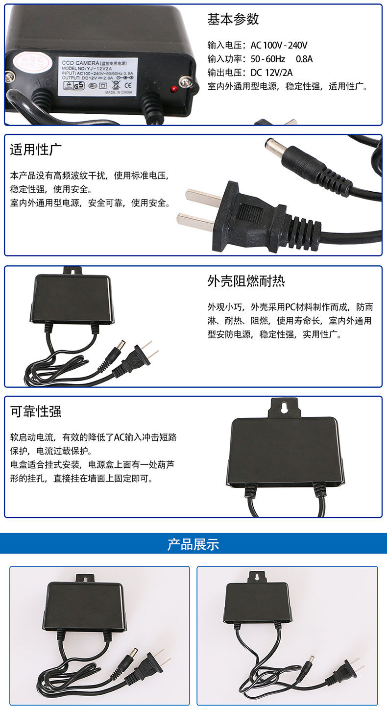 ZUCON 防水監控電源 監控電源適配器攝像頭攝像機電源12v2a