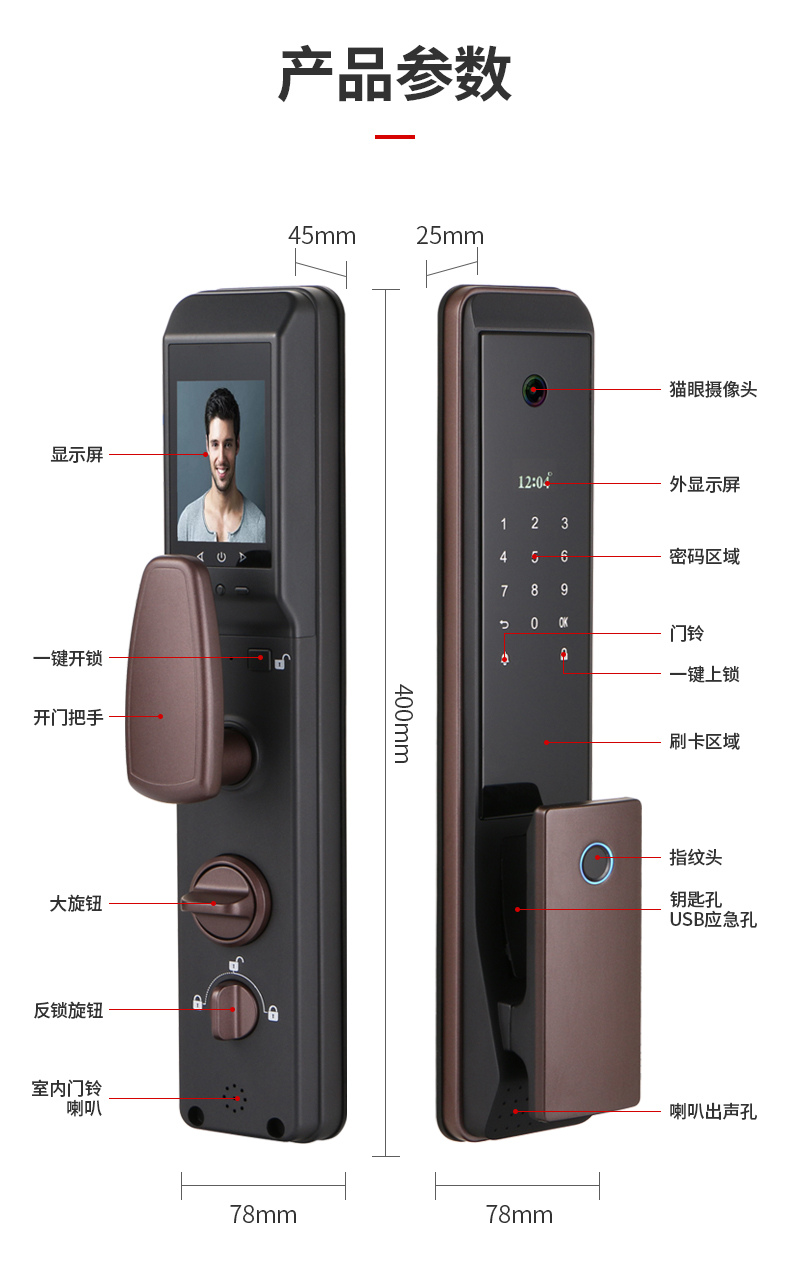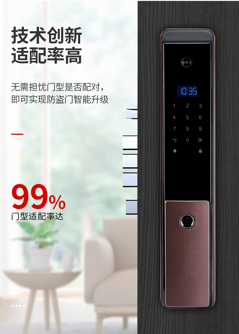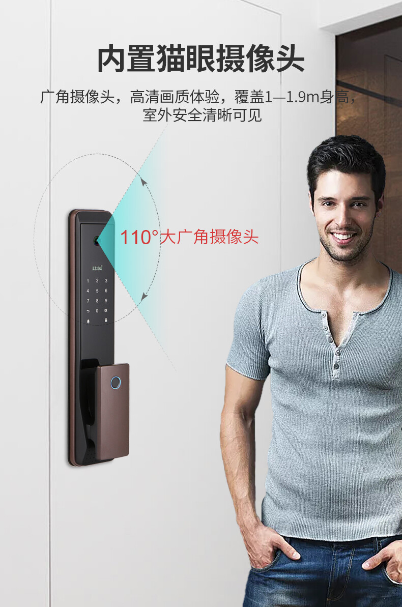 ZUCON祖程F795P指紋鎖家用防盜門智能電子門鎖密碼鎖帶電子貓眼攝像頭