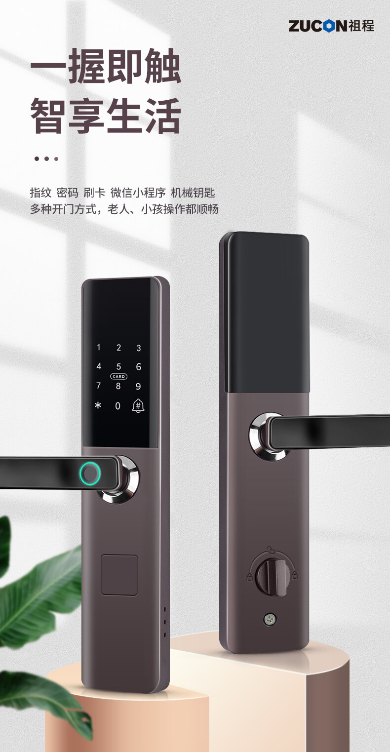 ZUCON祖程F595指紋鎖家用防盜門進戶門密碼鎖刷卡電子鎖智能門鎖十大品牌