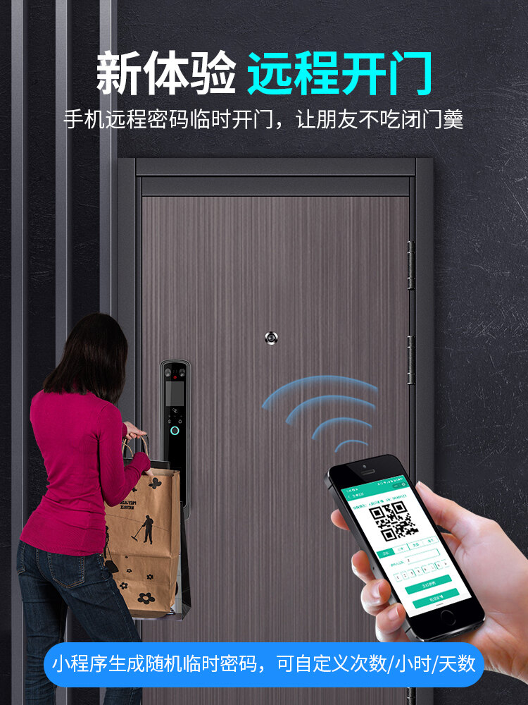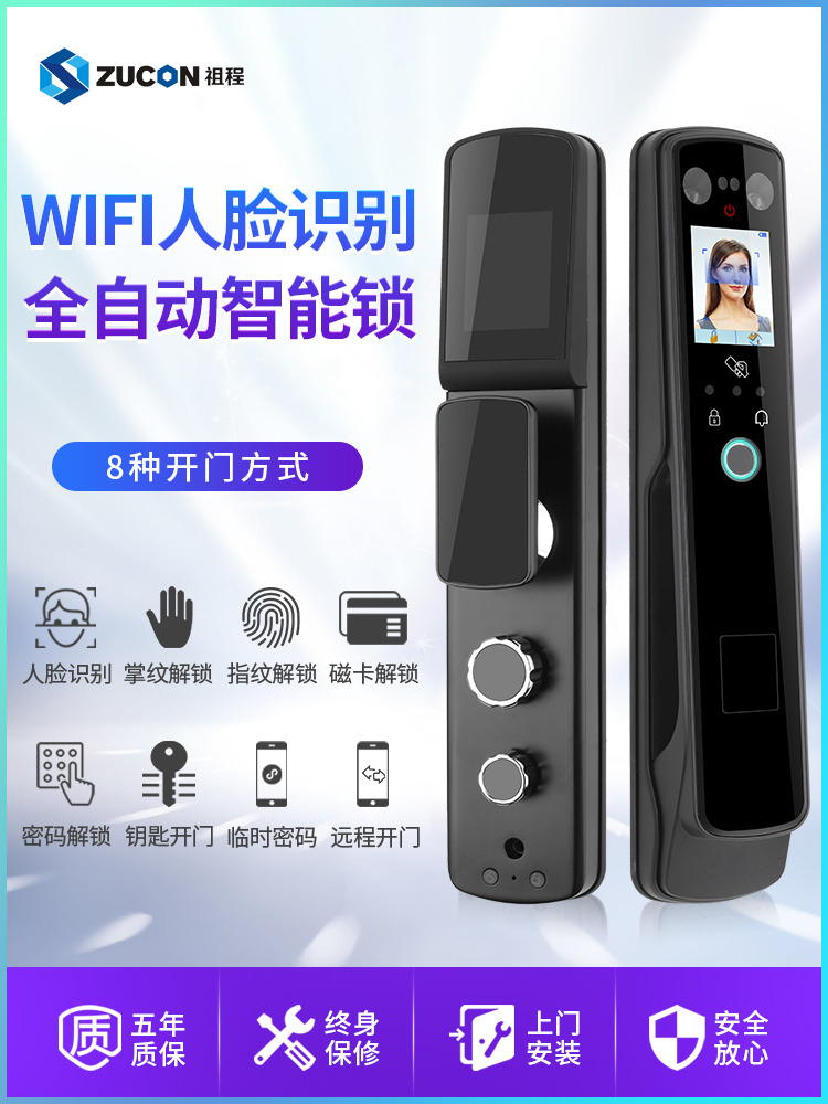 ZUCON祖程F594人臉識別智能鎖全自動指紋鎖家用防盜門帶監控攝像頭