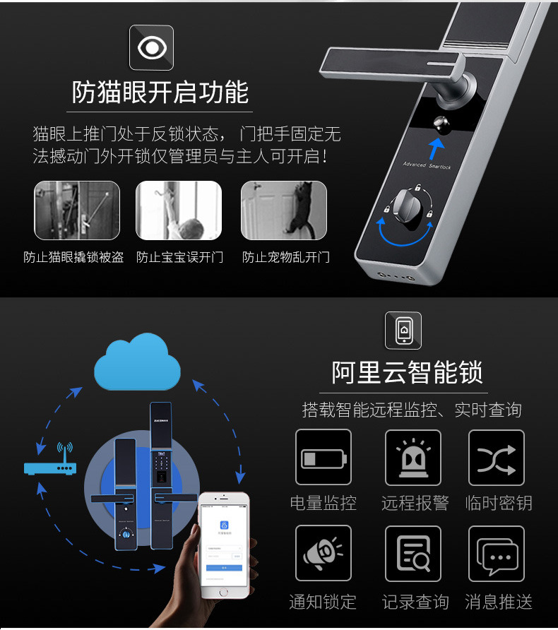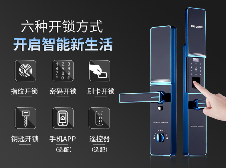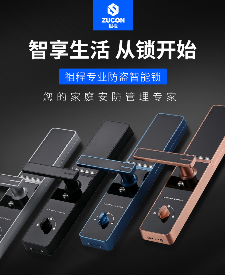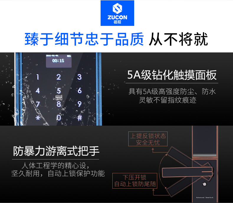 ZUCON祖程F890家用防盜門鎖智能指紋鎖密碼鎖感應鎖智能刷卡電子鎖