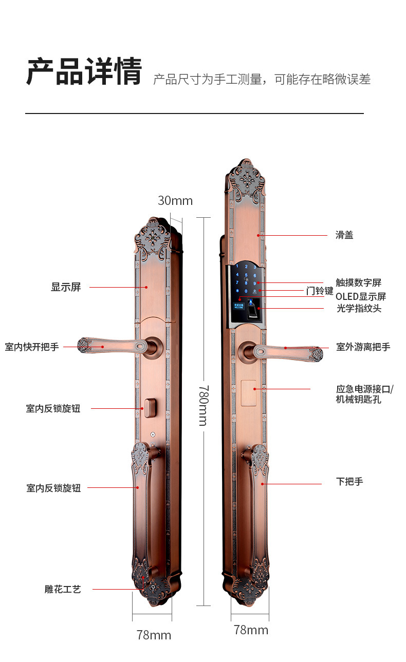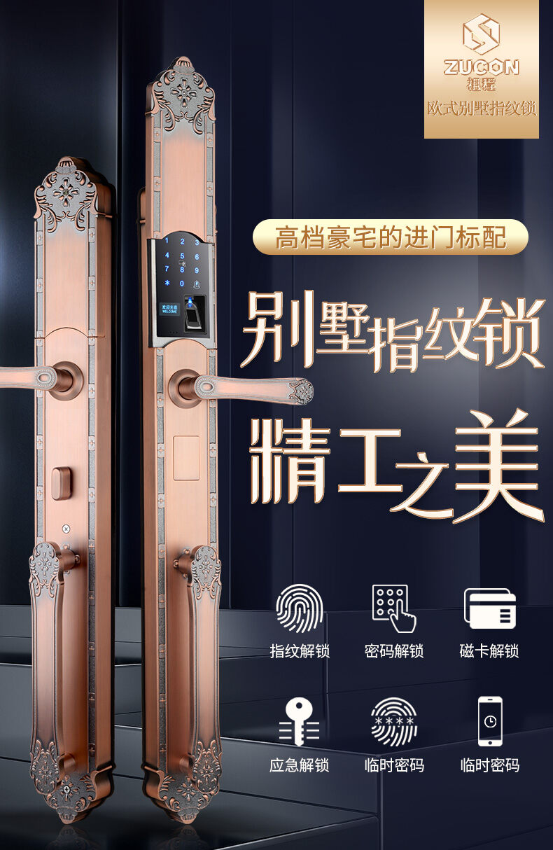 ZUCON祖程F696別墅指紋鎖家用防盜門進戶門密碼鎖刷卡電子鎖智能十大品牌