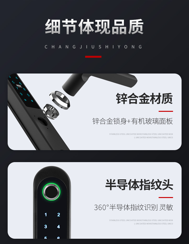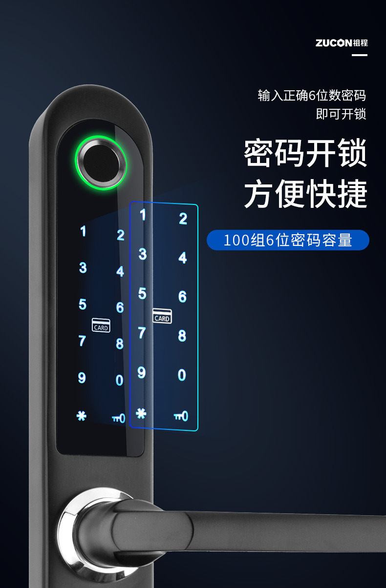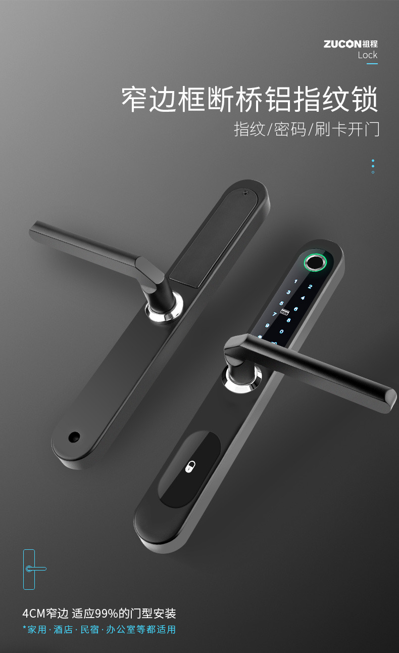 ZUCON斷橋鋁指紋鎖家用防盜門密碼鎖刷卡電子鎖智能門鎖十大品牌