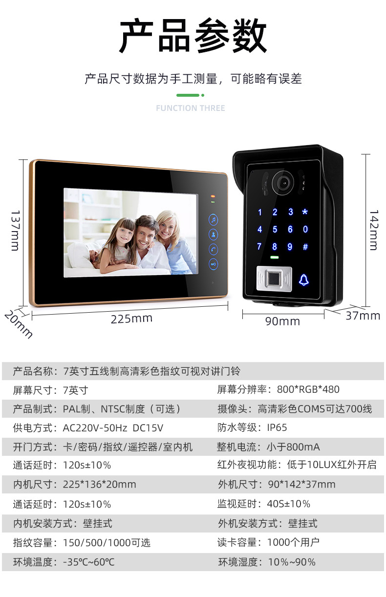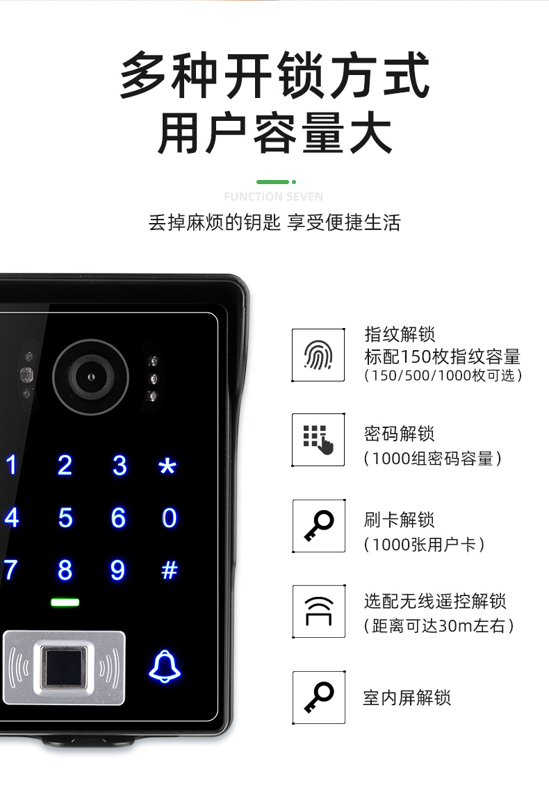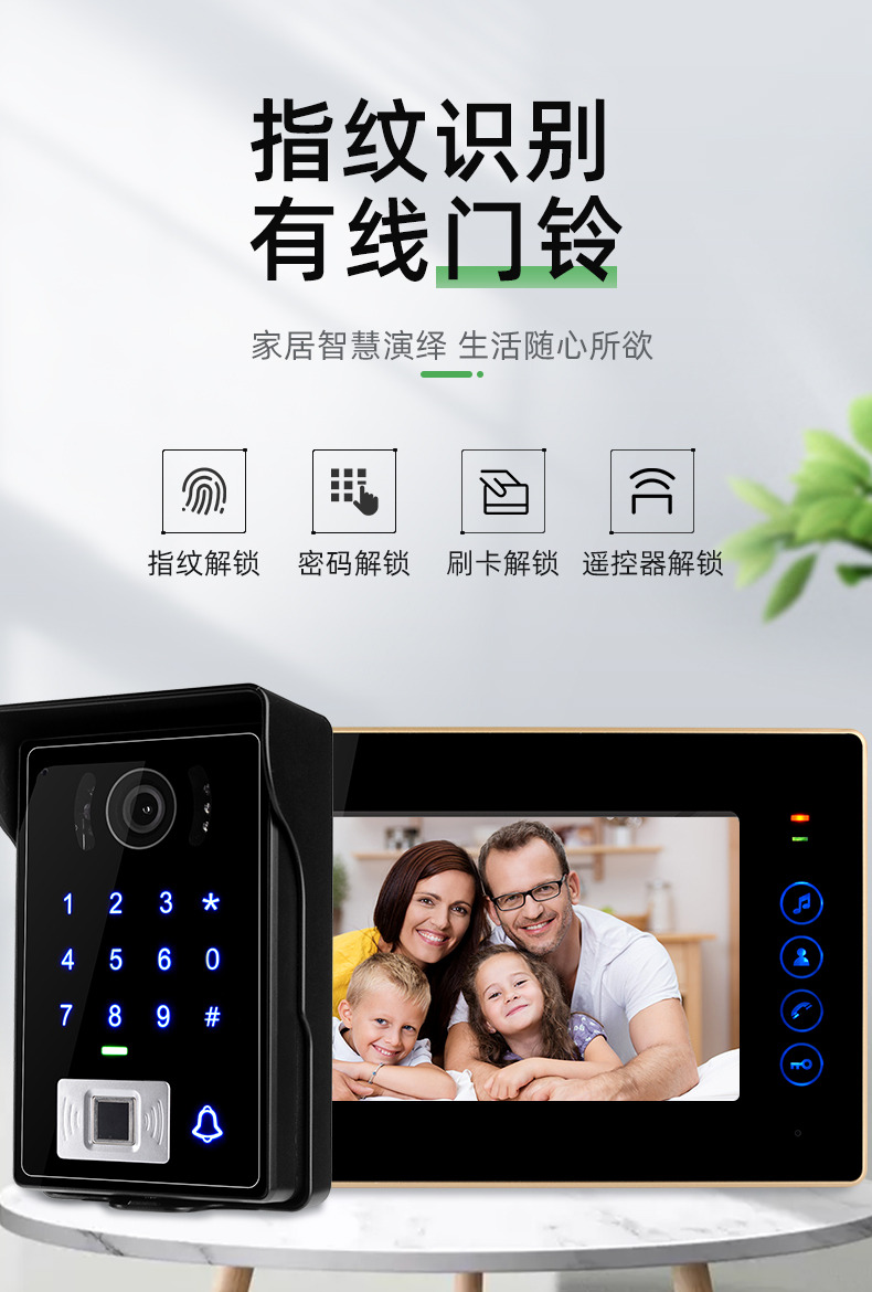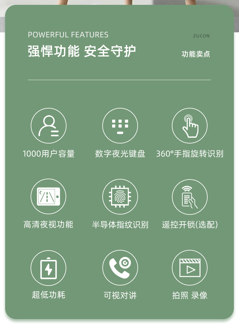 ZUCON祖程MF400別墅可視對講門鈴家用高清庭院門指紋防水室外電子貓眼