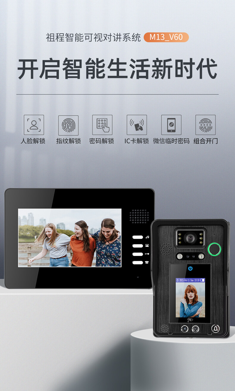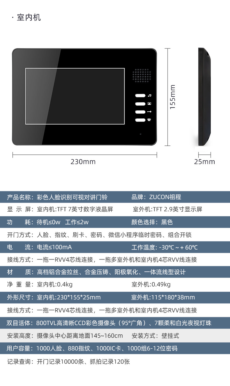 ZUCON祖程MF13樓宇可視對(duì)講門鈴家用別墅室內(nèi)機(jī)指紋防水室外電子貓眼