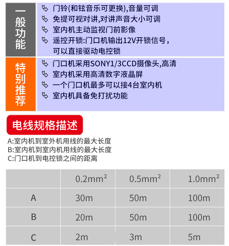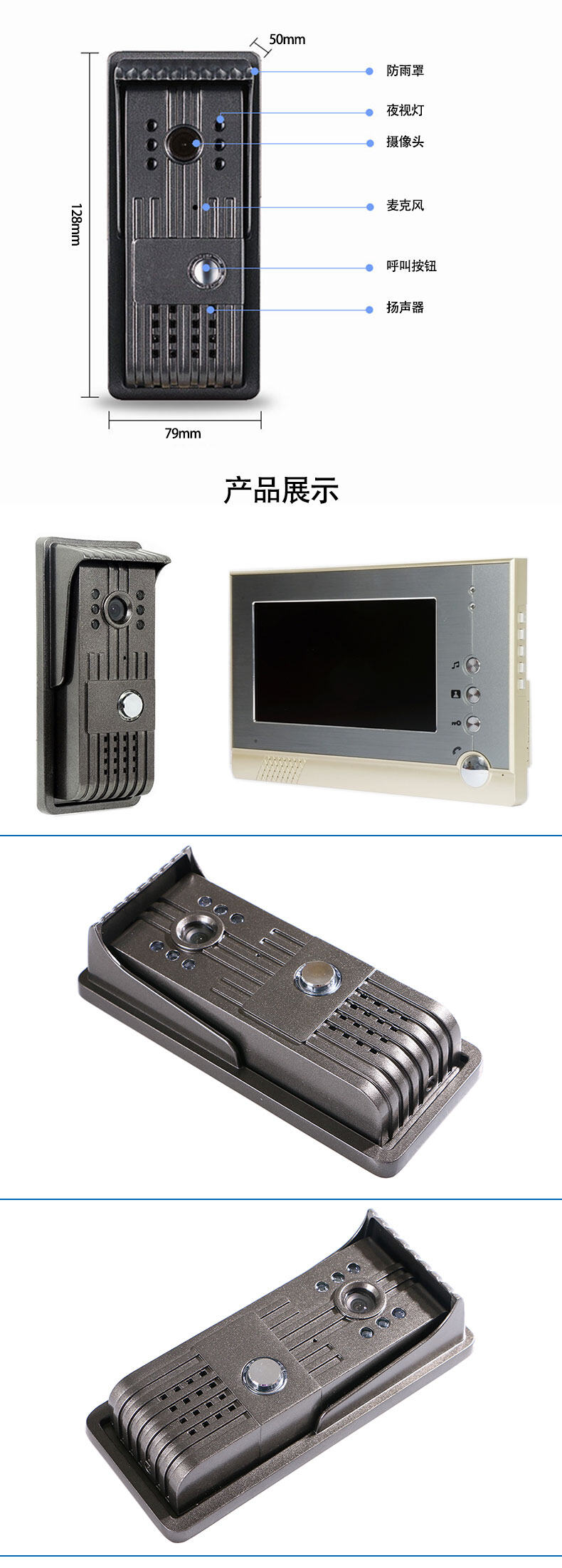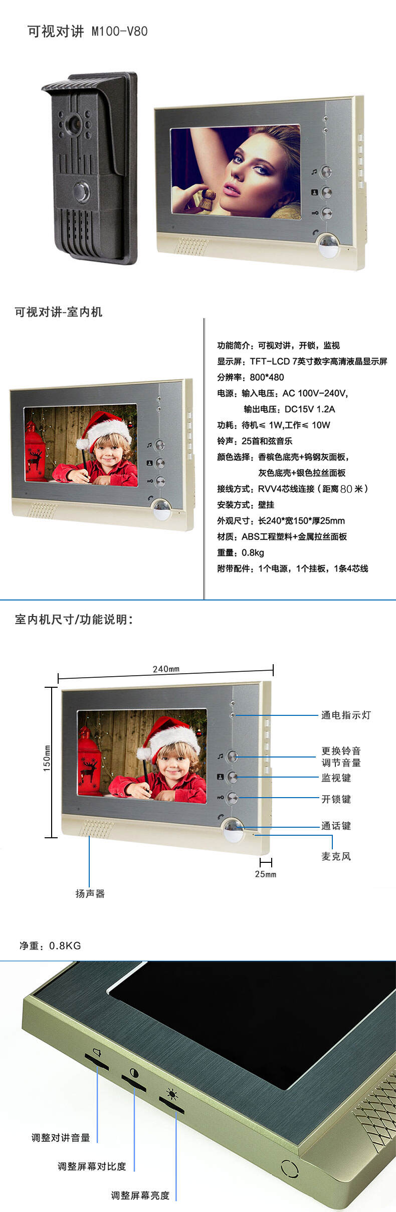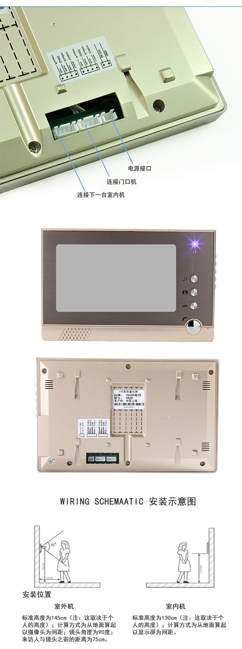 ZUCON祖程M100別墅有線可視對講彩色高清夜視7寸可視對講門鈴防雨防砸防水
