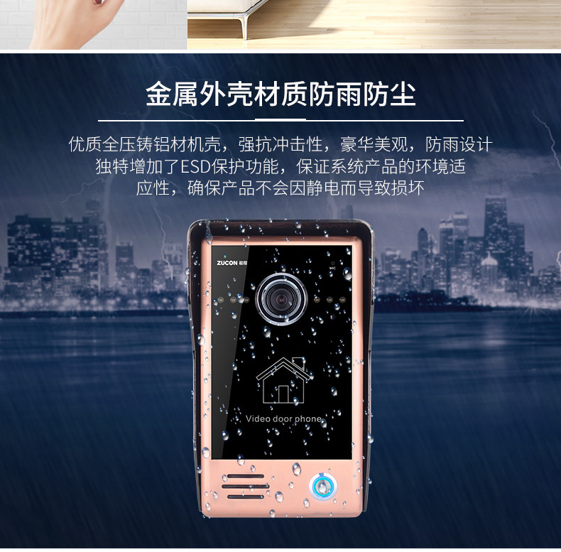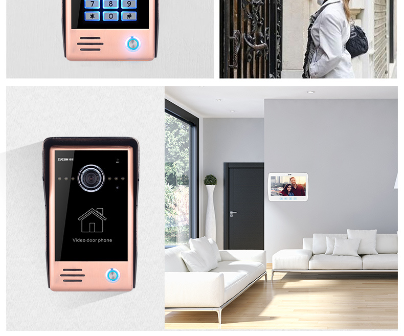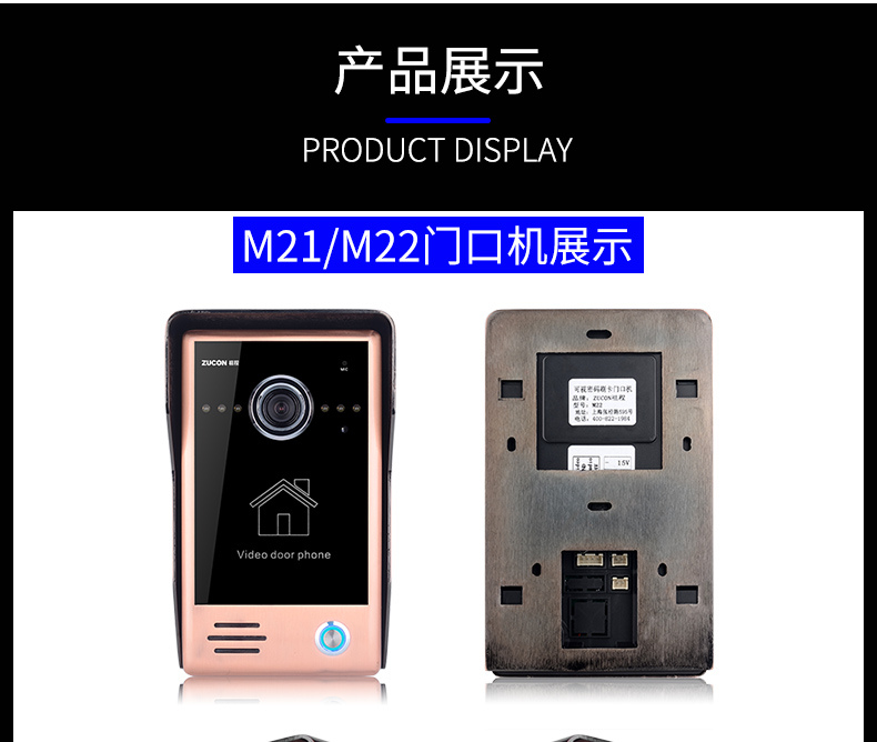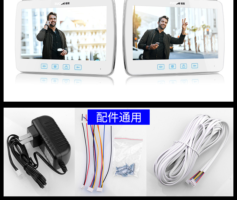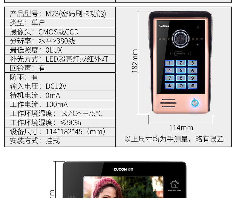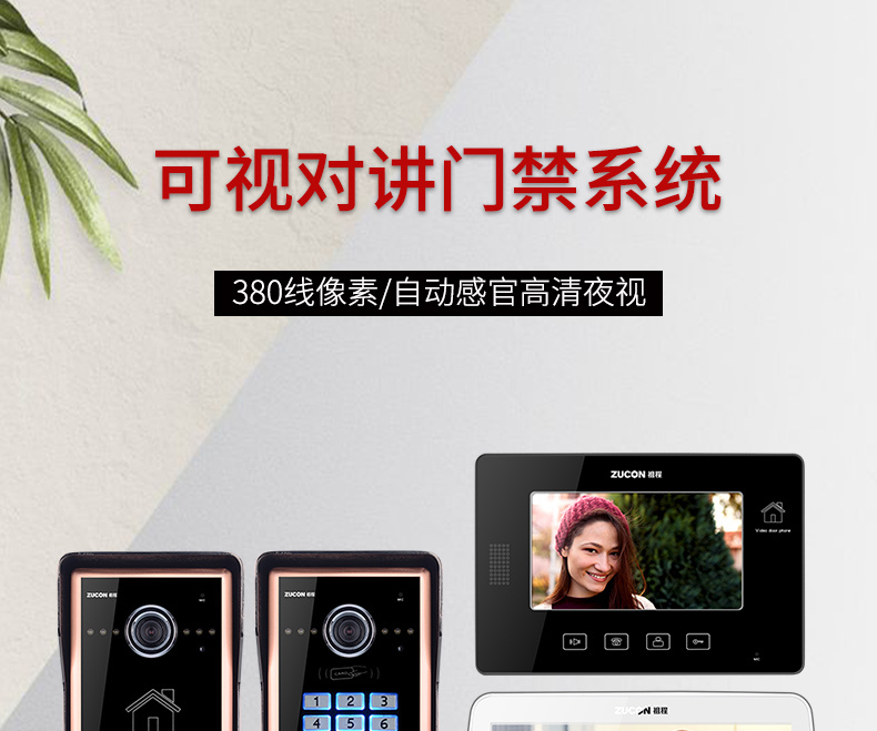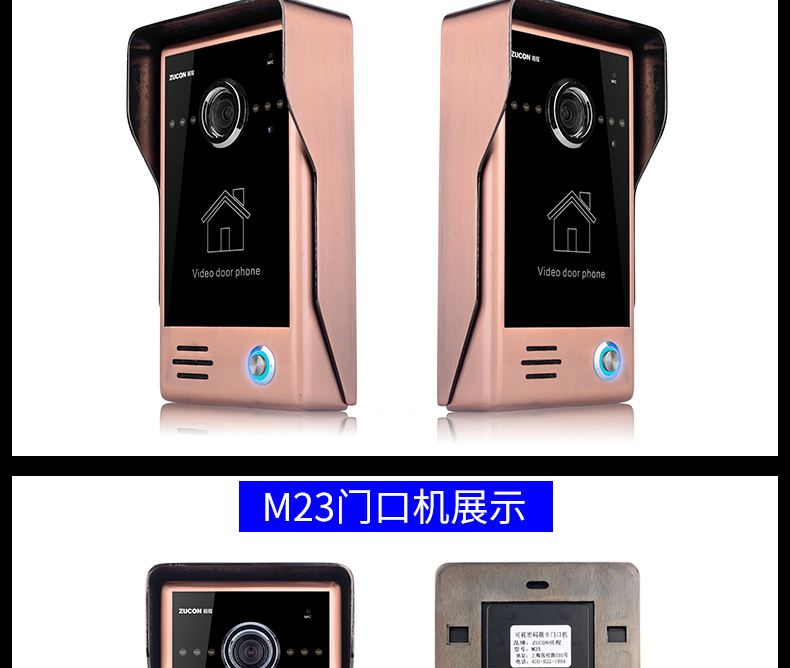 ZUCON祖程M22、M23別墅有線可視對(duì)講彩色高清夜視7寸10寸可視對(duì)講門鈴刷卡密碼