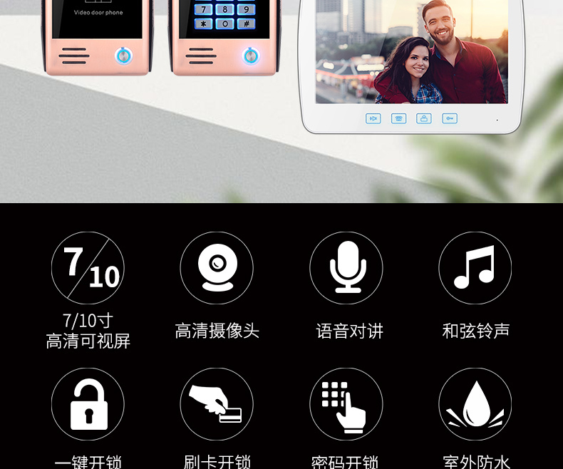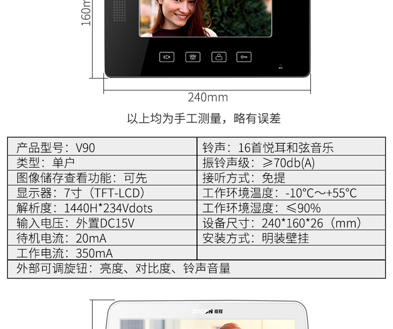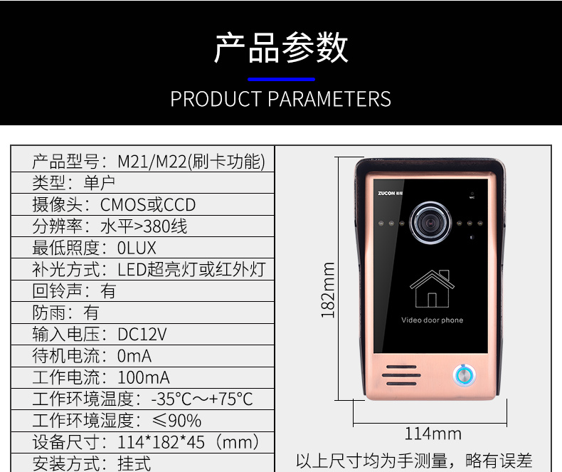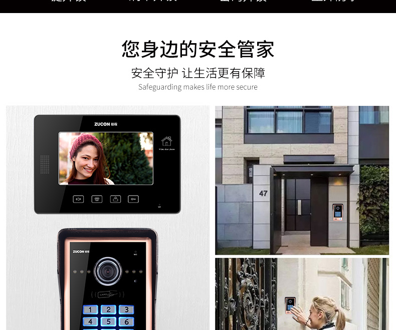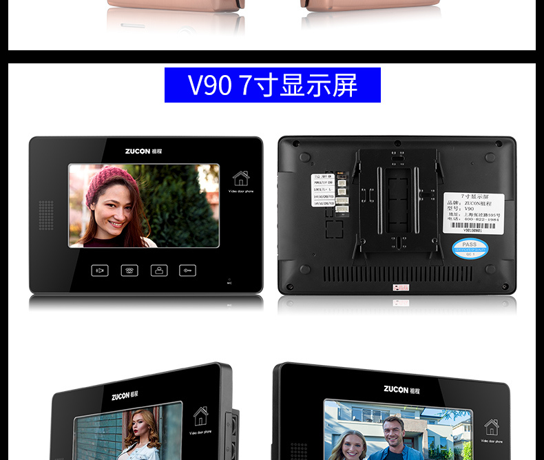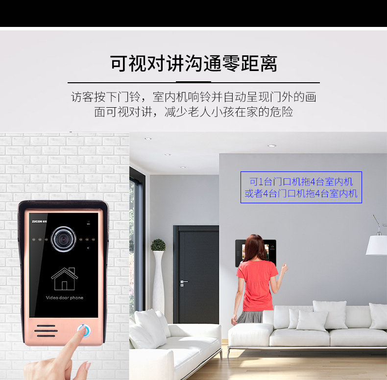 ZUCON祖程M22、M23別墅有線可視對(duì)講彩色高清夜視7寸10寸可視對(duì)講門鈴刷卡密碼