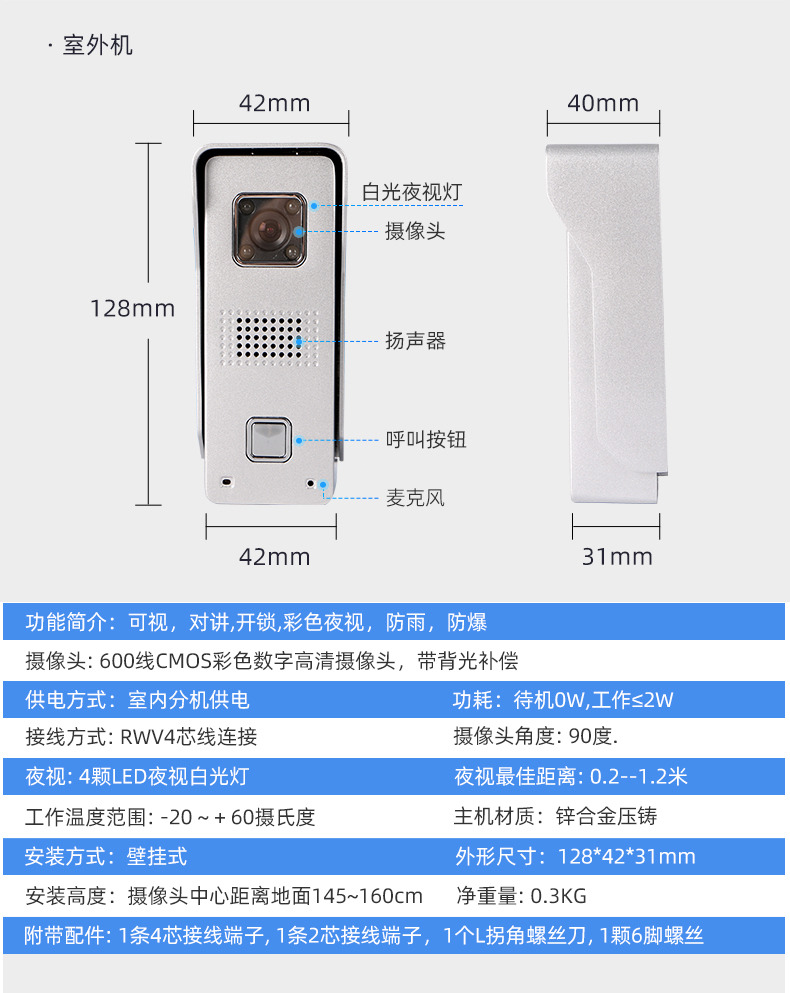 ZUCON祖程M2有線可視對講 7寸可視彩色高清夜視對講門鈴 家用辦公包郵