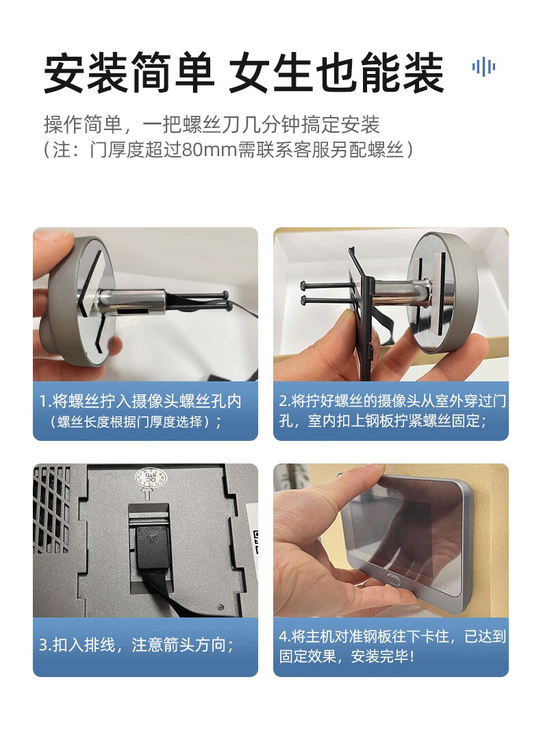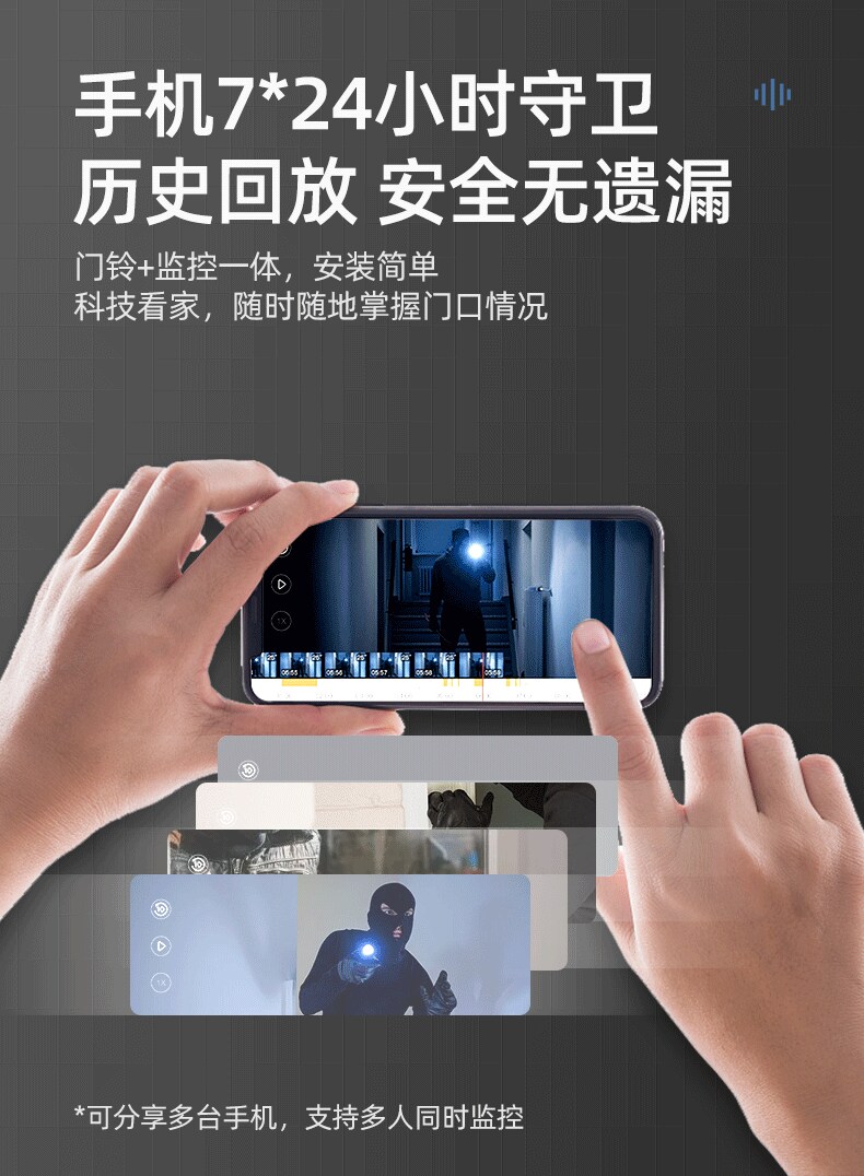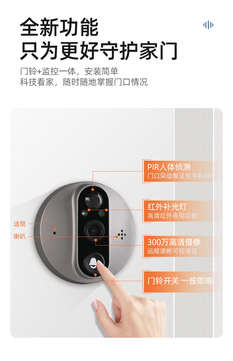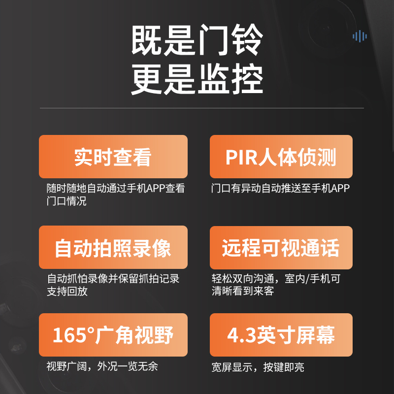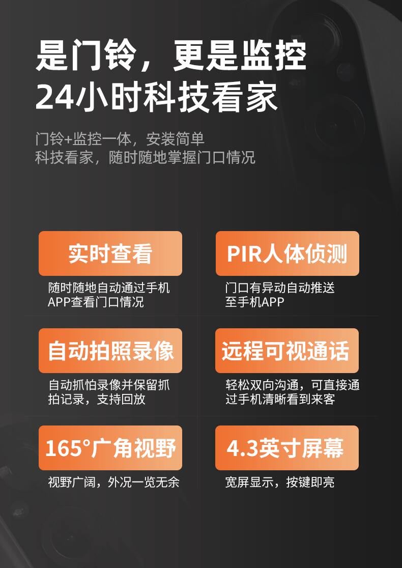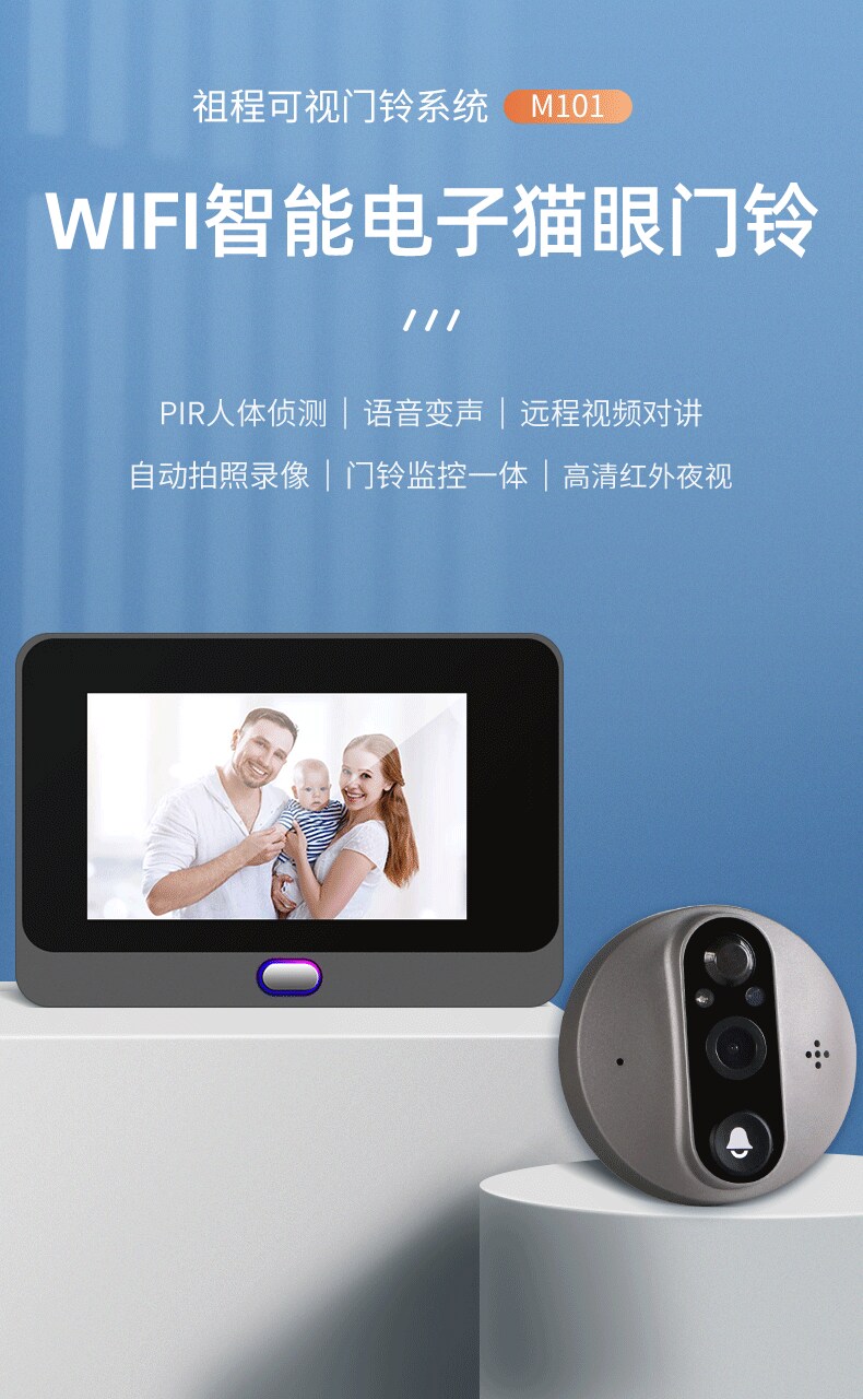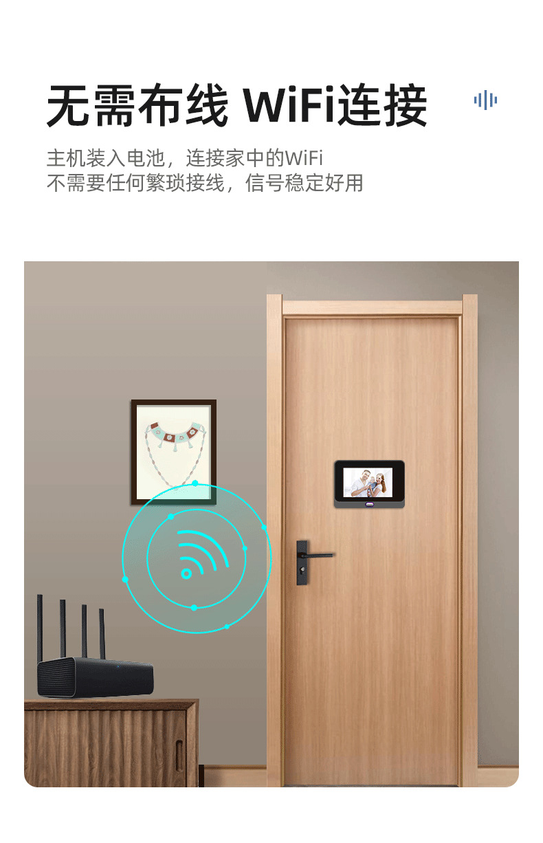 ZUCON祖程B19智能可視彩屏無(wú)線門鈴對(duì)講家用帶顯示屏電子貓眼WIFI監(jiān)控?cái)z像