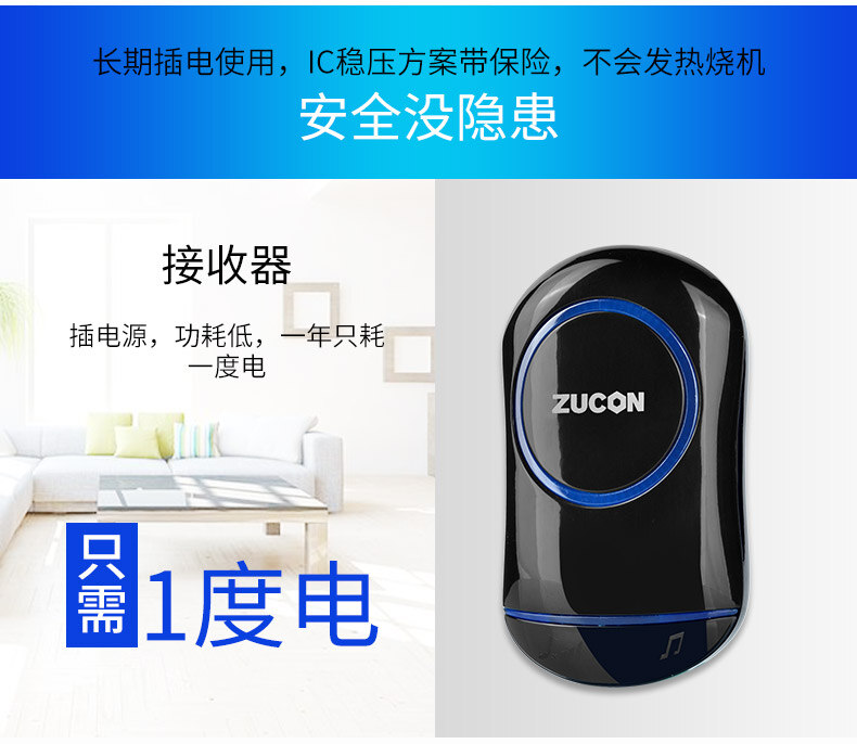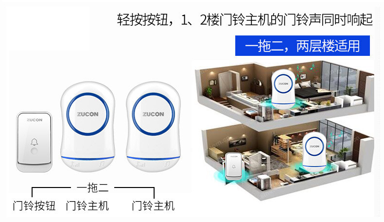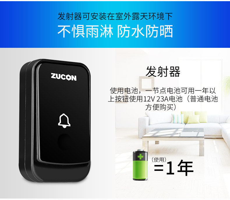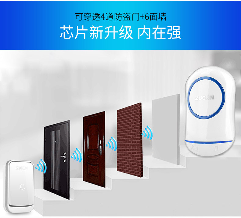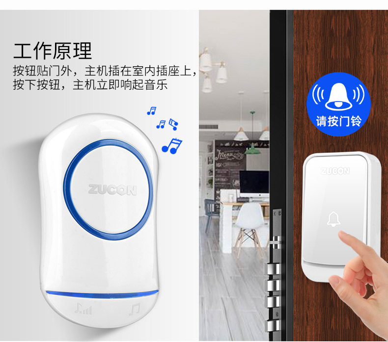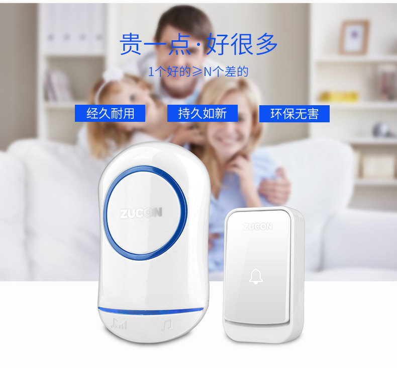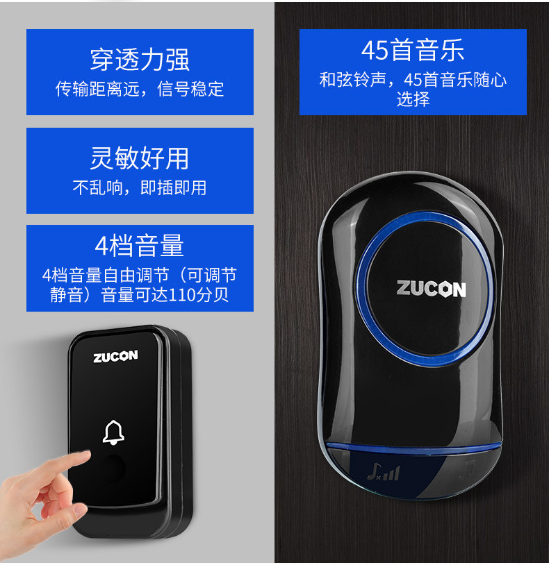 ZUCON祖程B17無線門鈴家用辦公室別墅遠距離門鈴