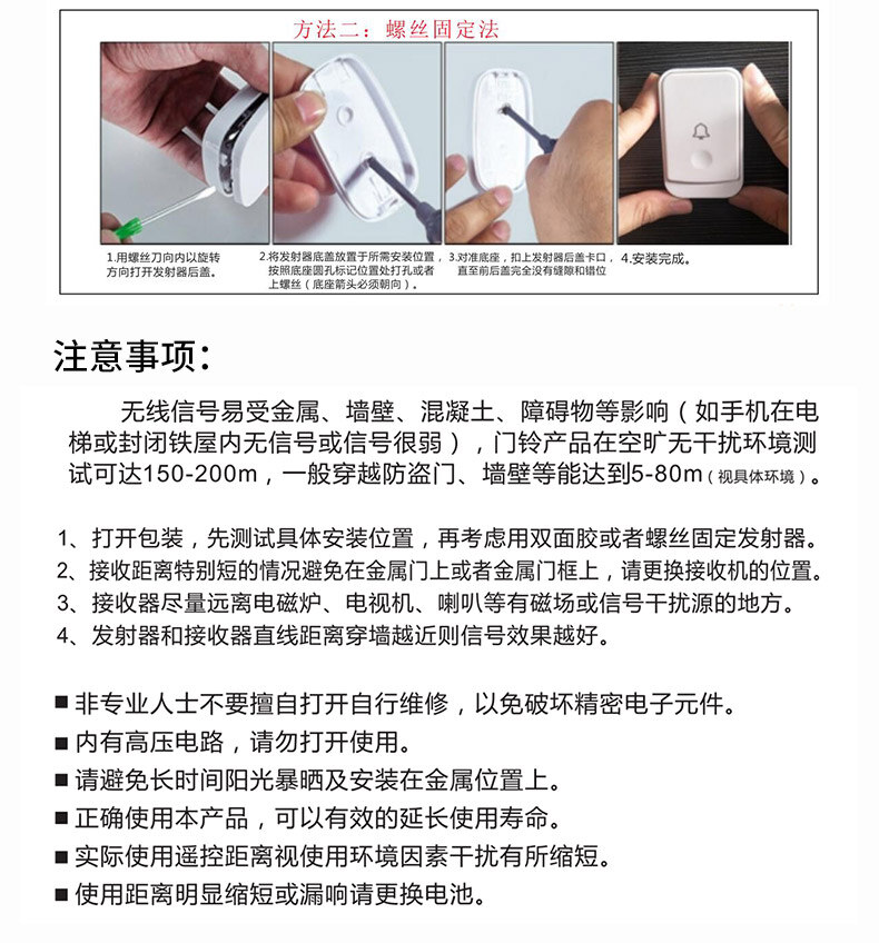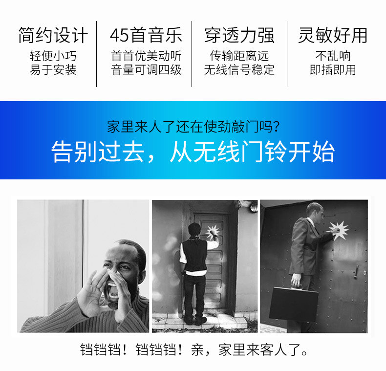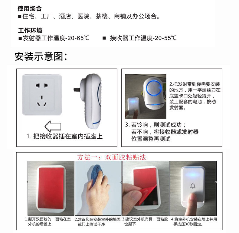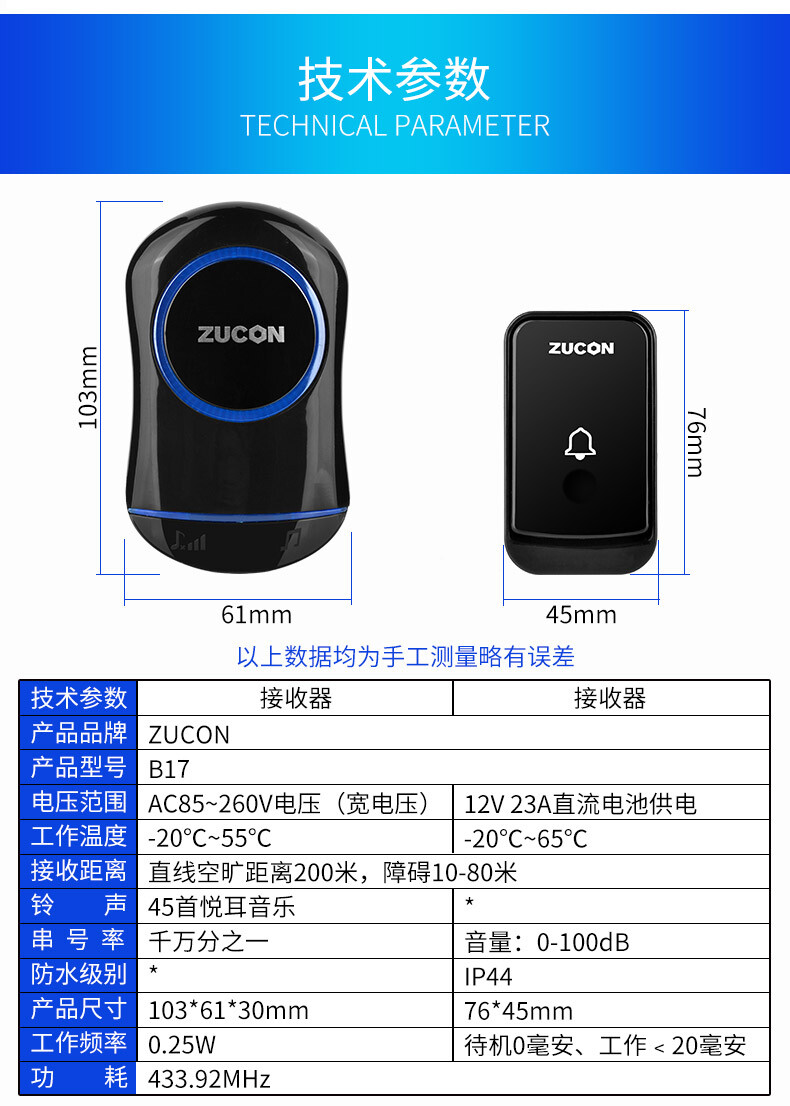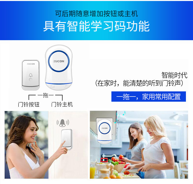 ZUCON祖程B17無線門鈴家用辦公室別墅遠距離門鈴