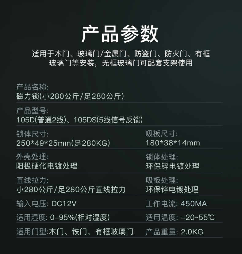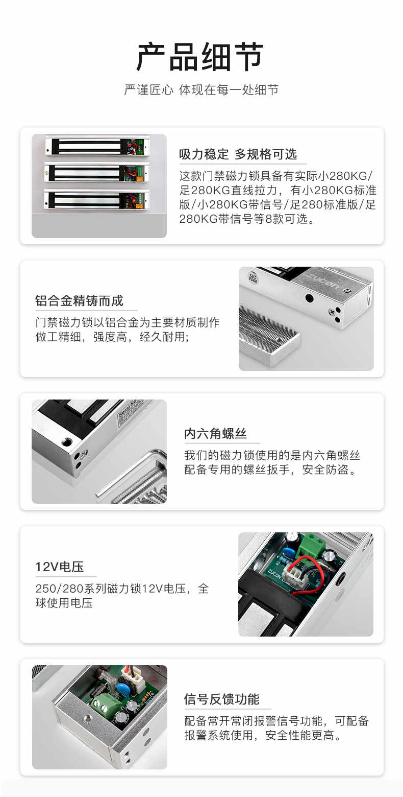 ZUCON祖程105D磁力鎖280kg單門電磁鎖12v門禁鎖電控鎖可防水延時信號反饋