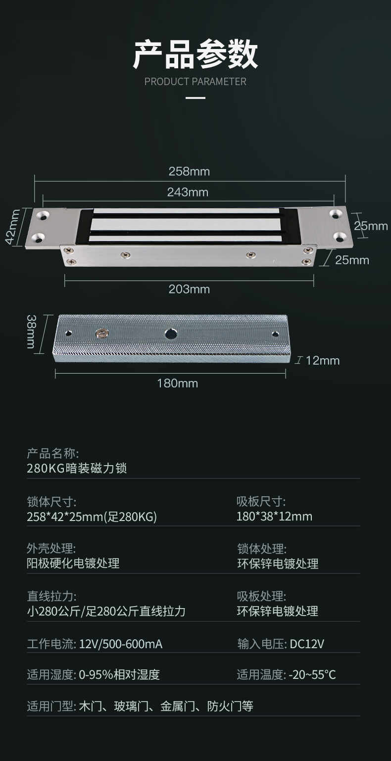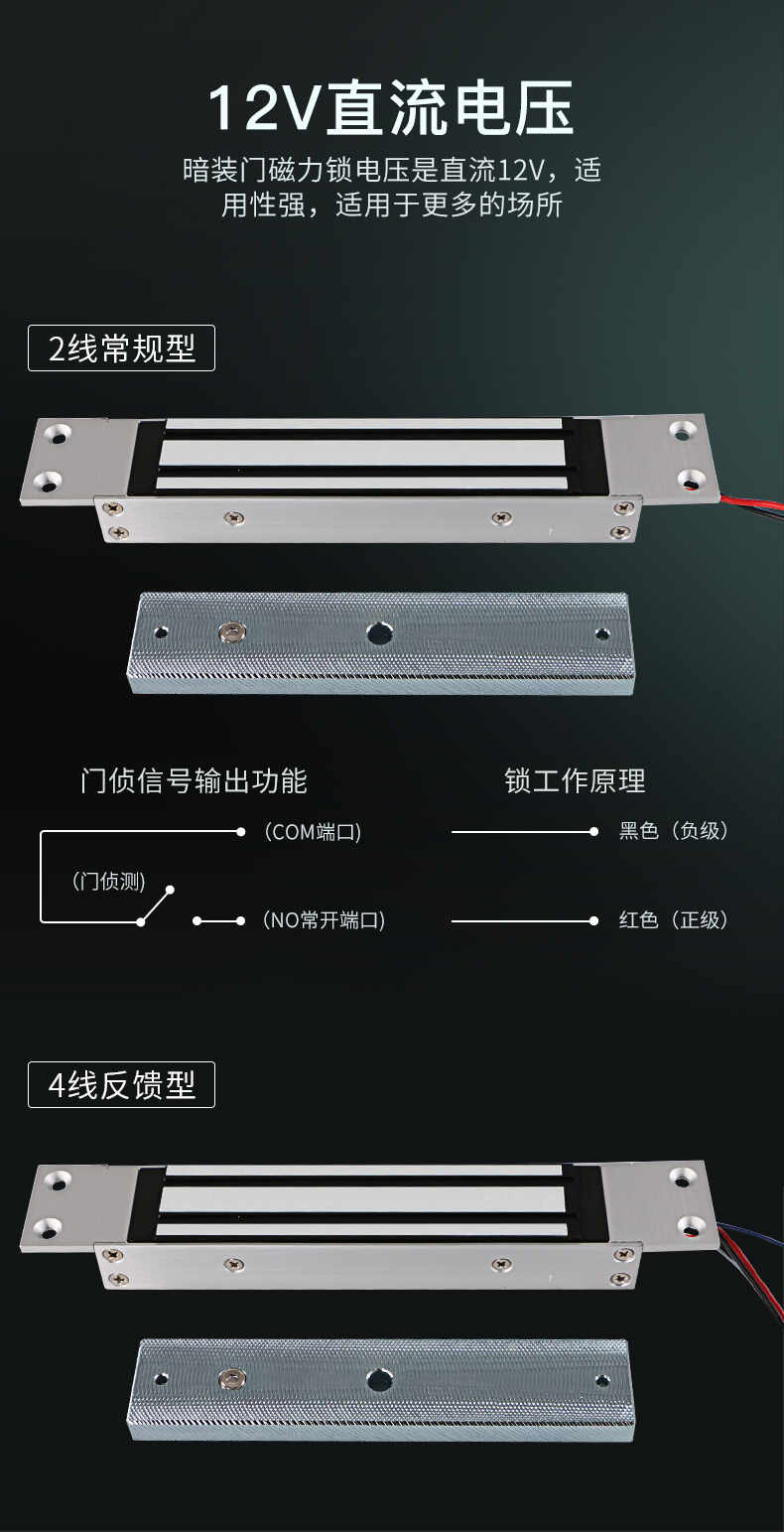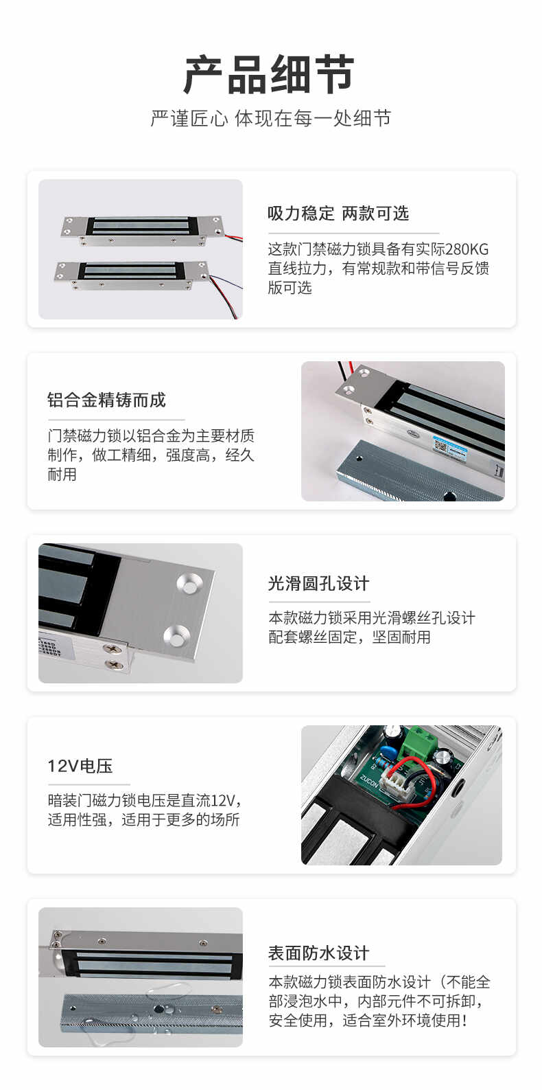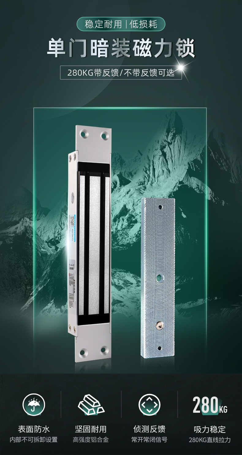 ZUCON祖程磁力鎖280kg暗裝單門電磁鎖12v門禁鎖電控鎖可延時(shí)信號(hào)反饋