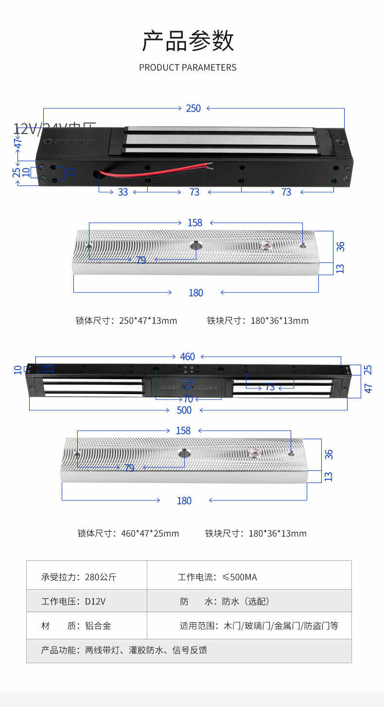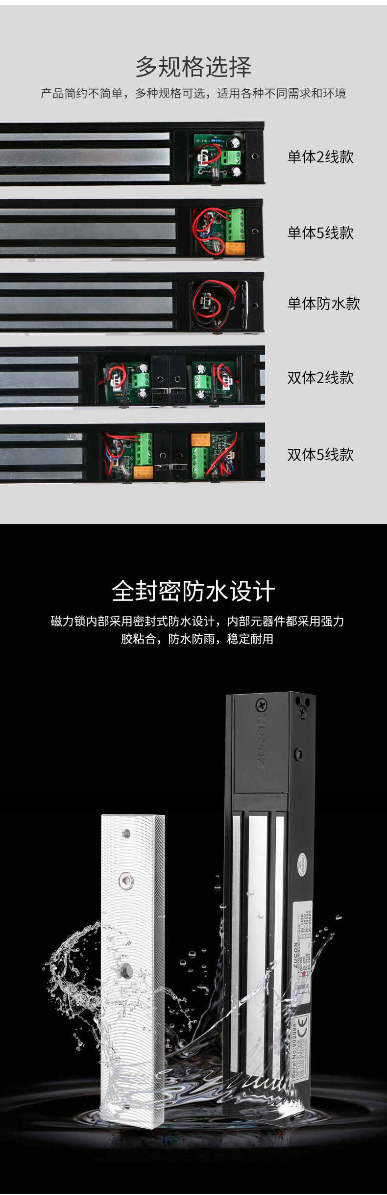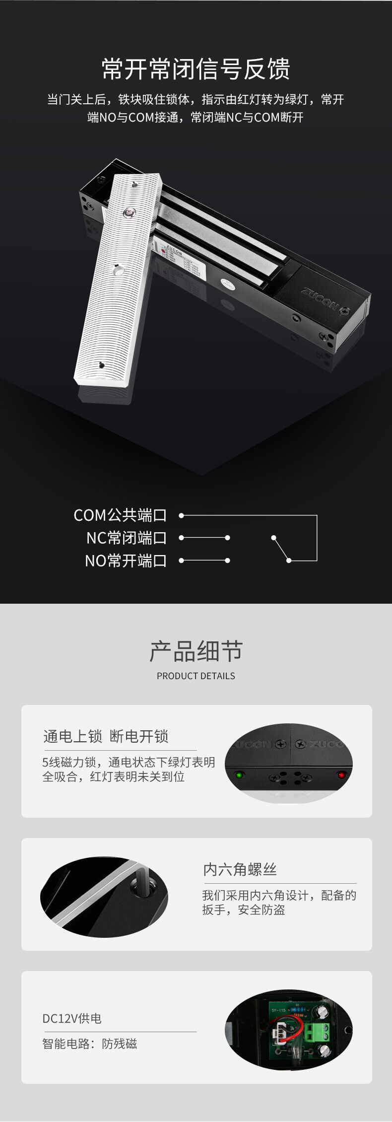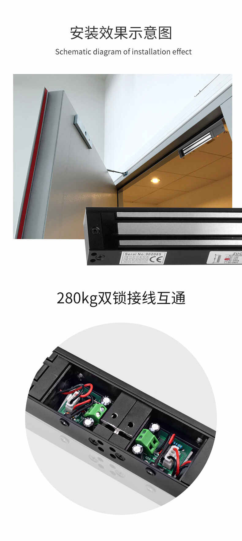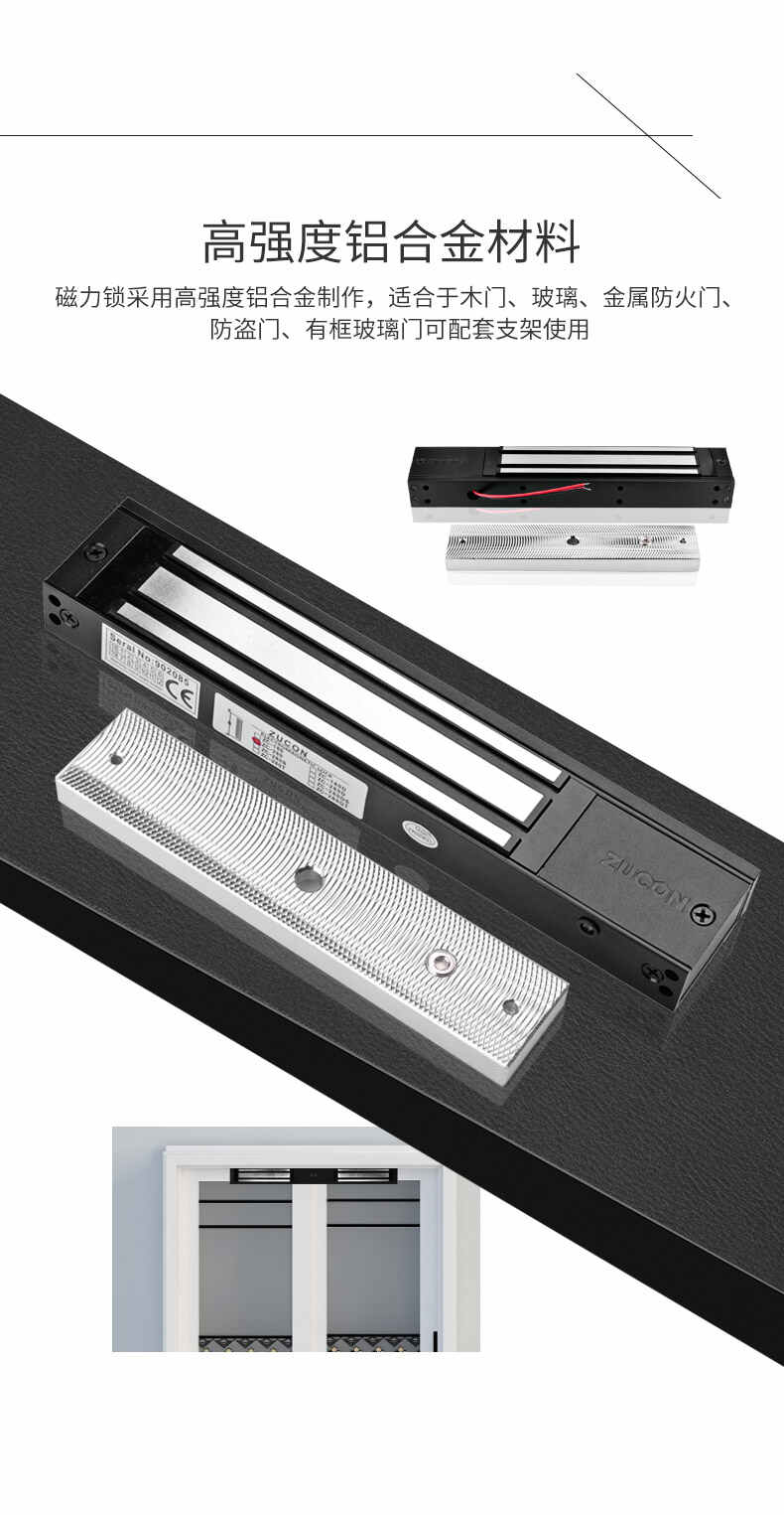 ZUCON祖程黑色磁力鎖280kg電吸門禁系統防水電磁鎖樓宇鎖延時反饋鎖
