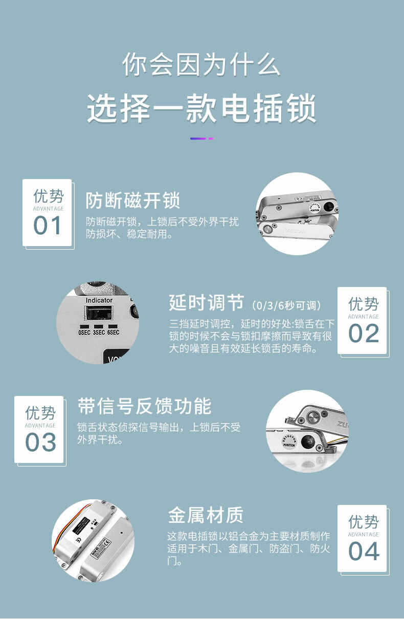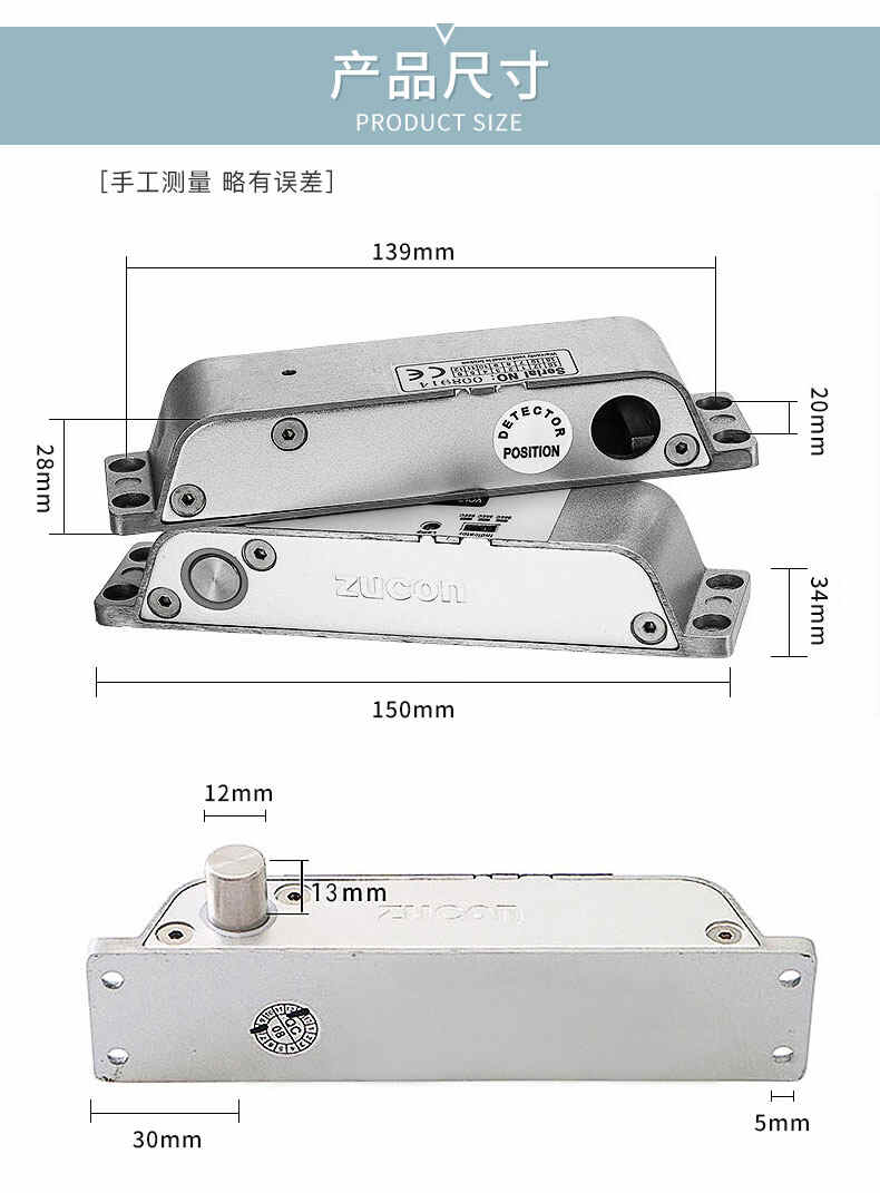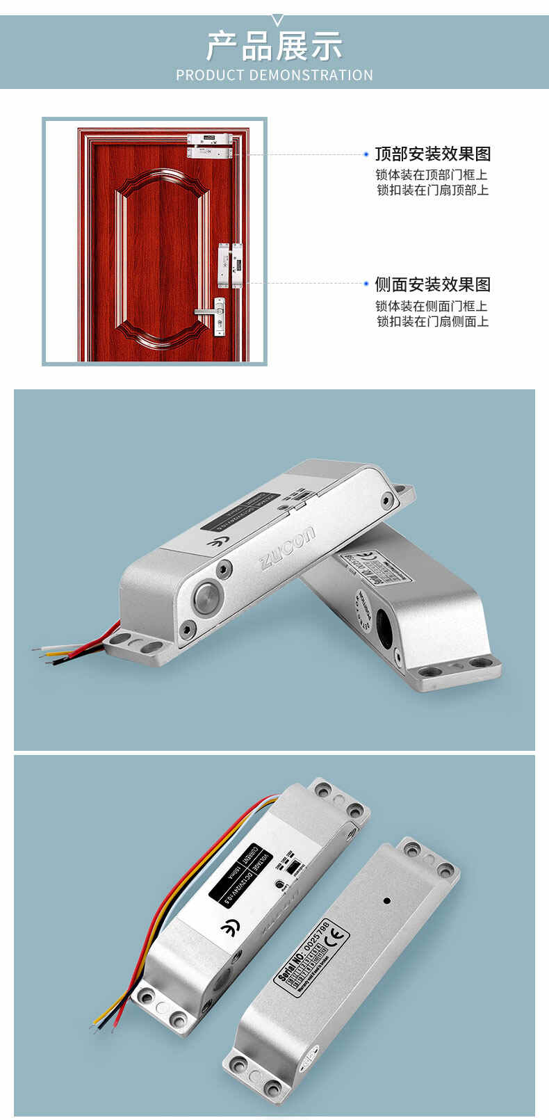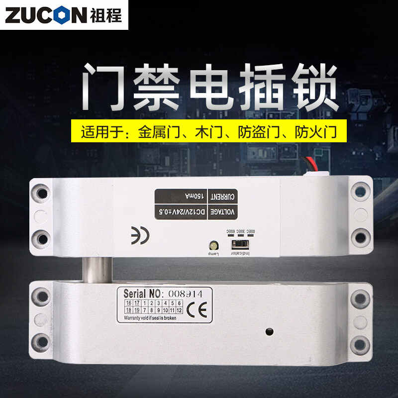 ZUCON祖程407D明裝電插鎖木門鐵門插銷鎖有框玻璃門禁系統斷電開