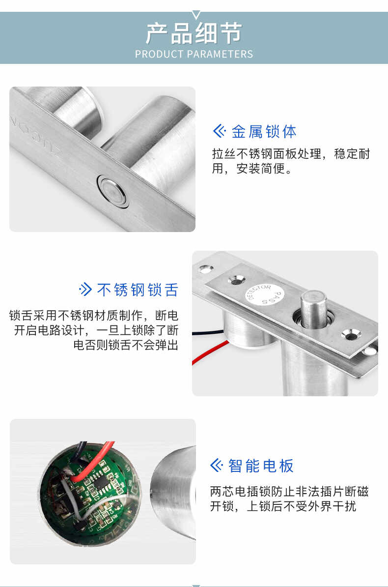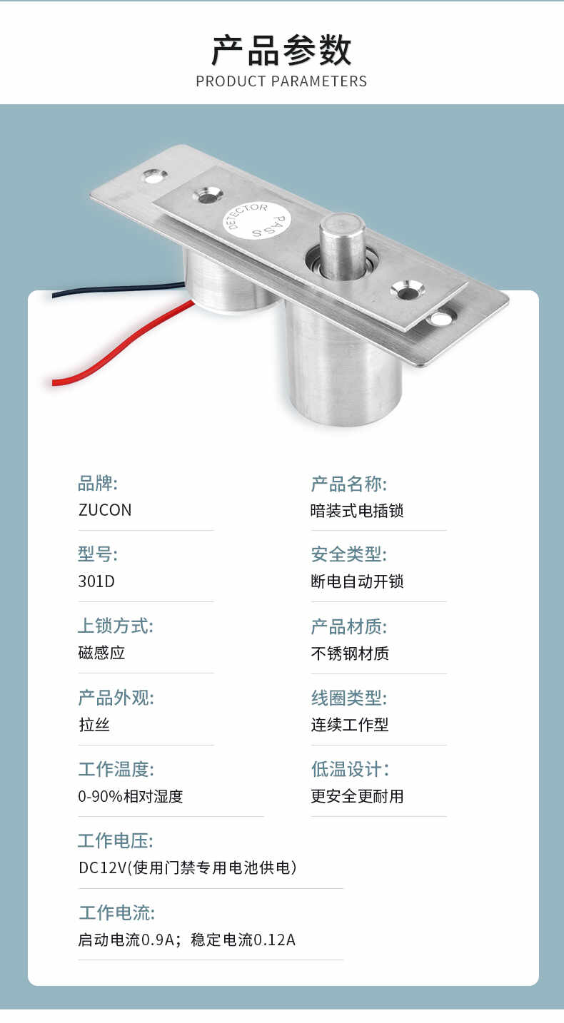 ZUCON祖程301D暗裝式電插鎖微型小鎖不銹鋼迷你電插鎖門禁鎖電子鎖