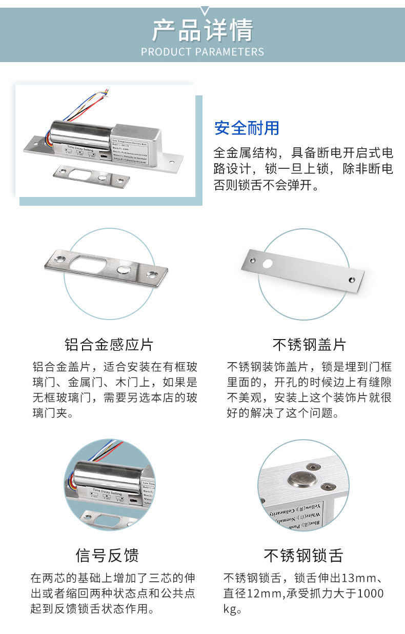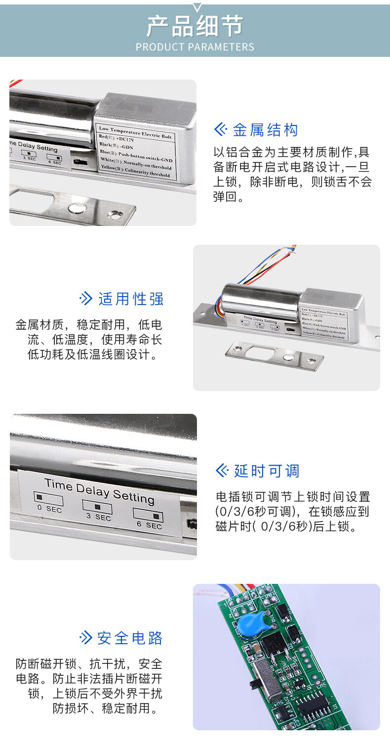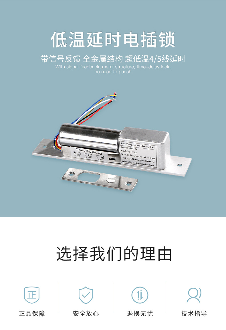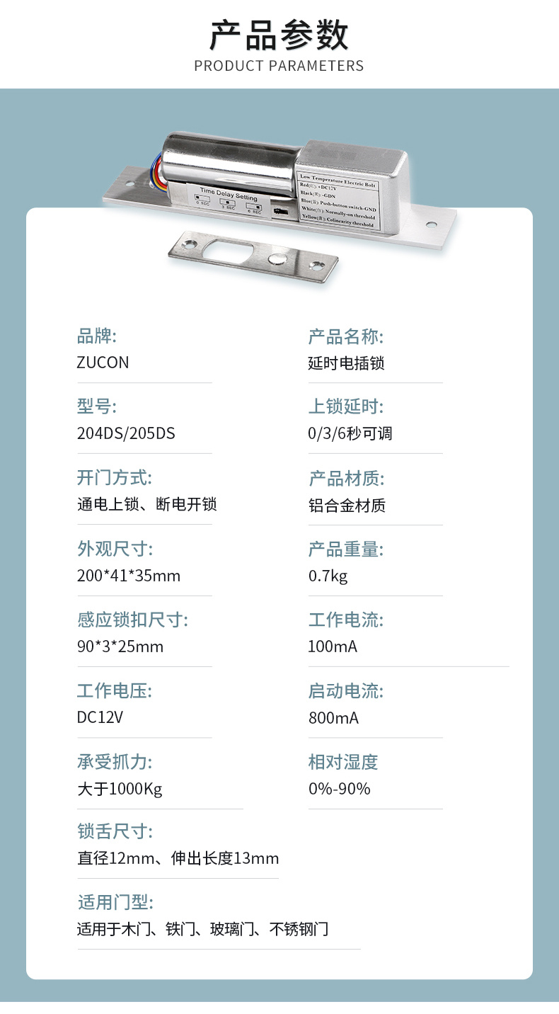 ZUCON祖程204DS 4、5芯延時電插鎖信號反饋插銷鎖門禁配套電插鎖低溫鎖
