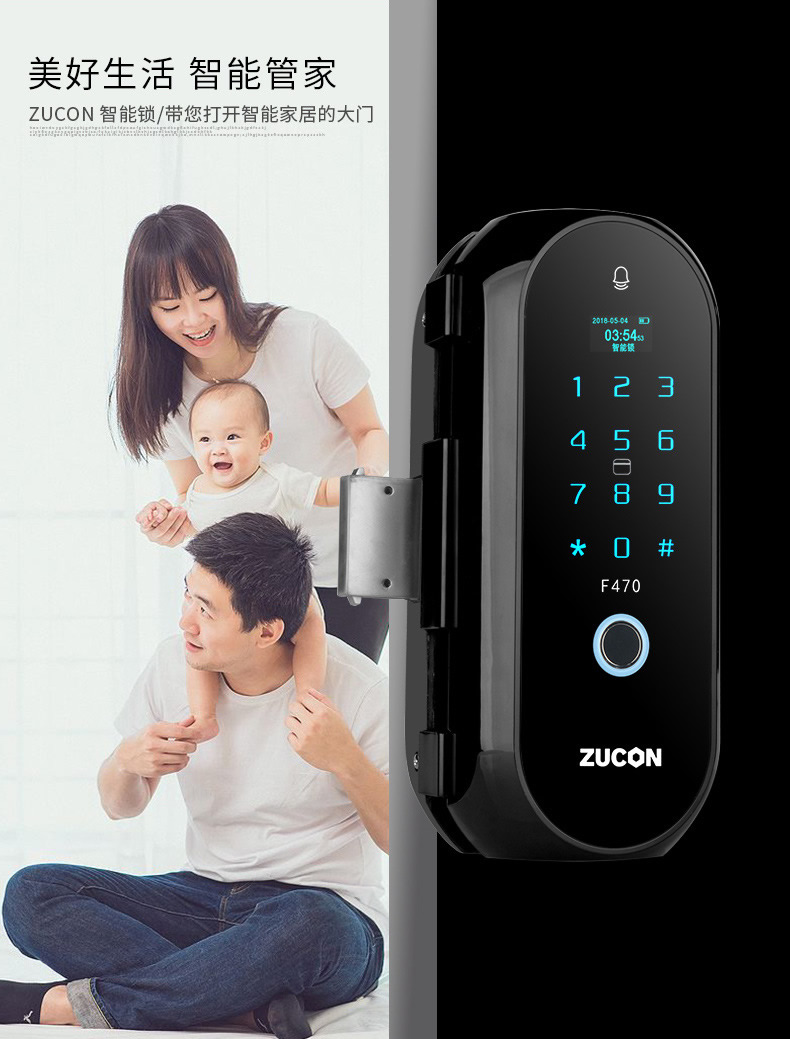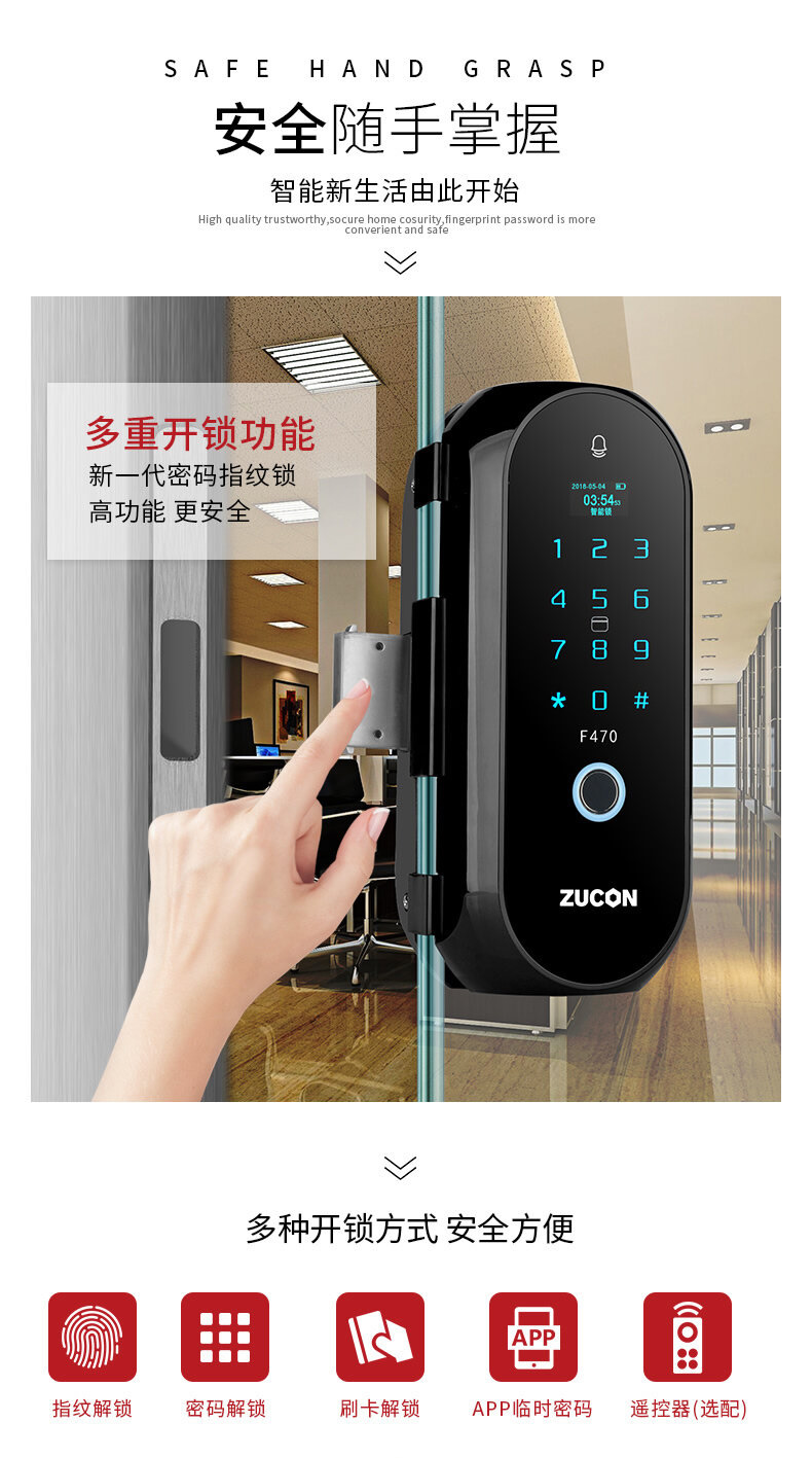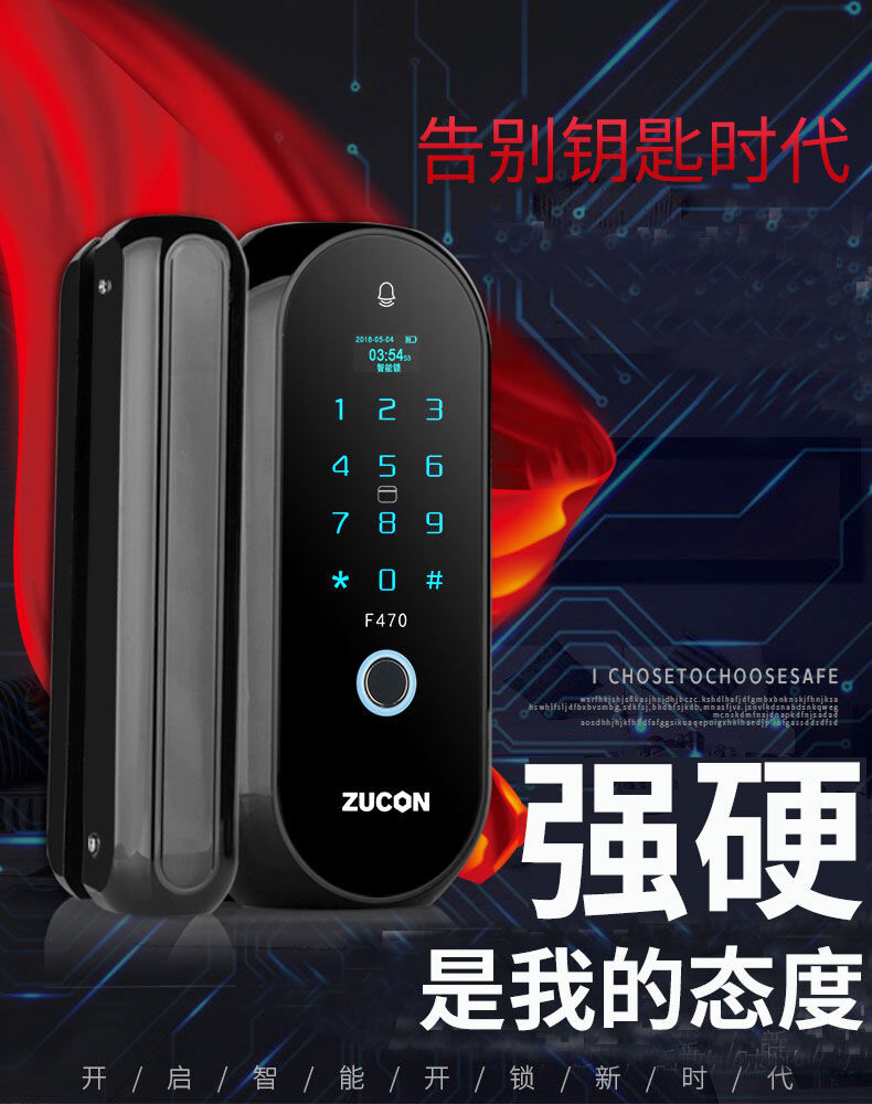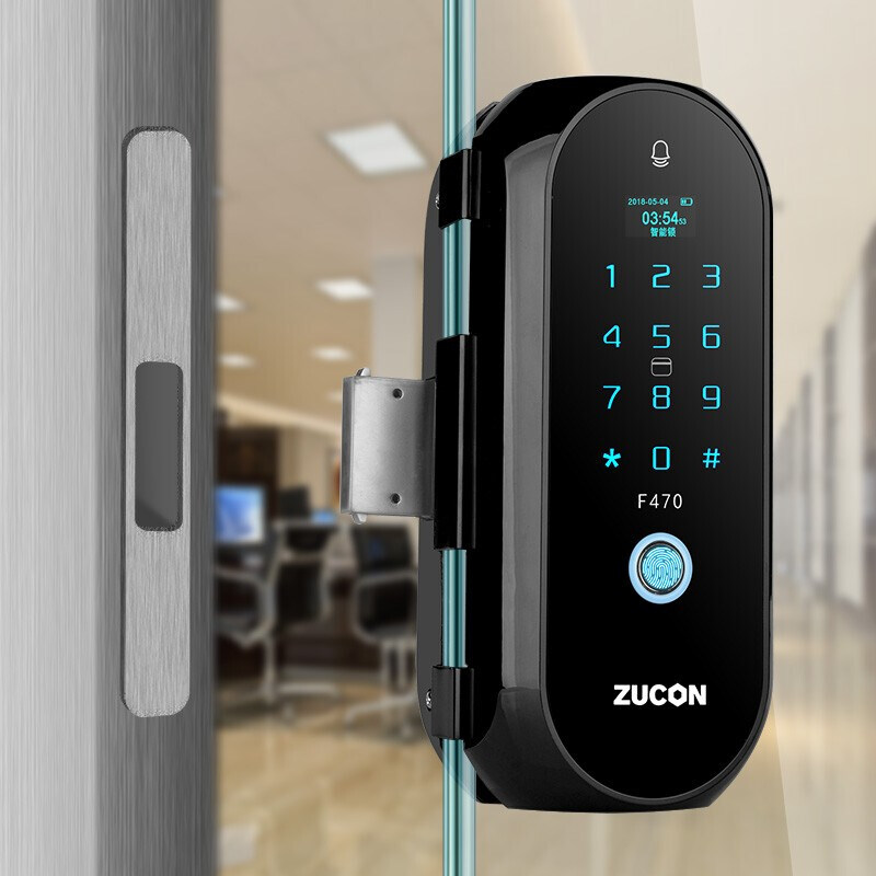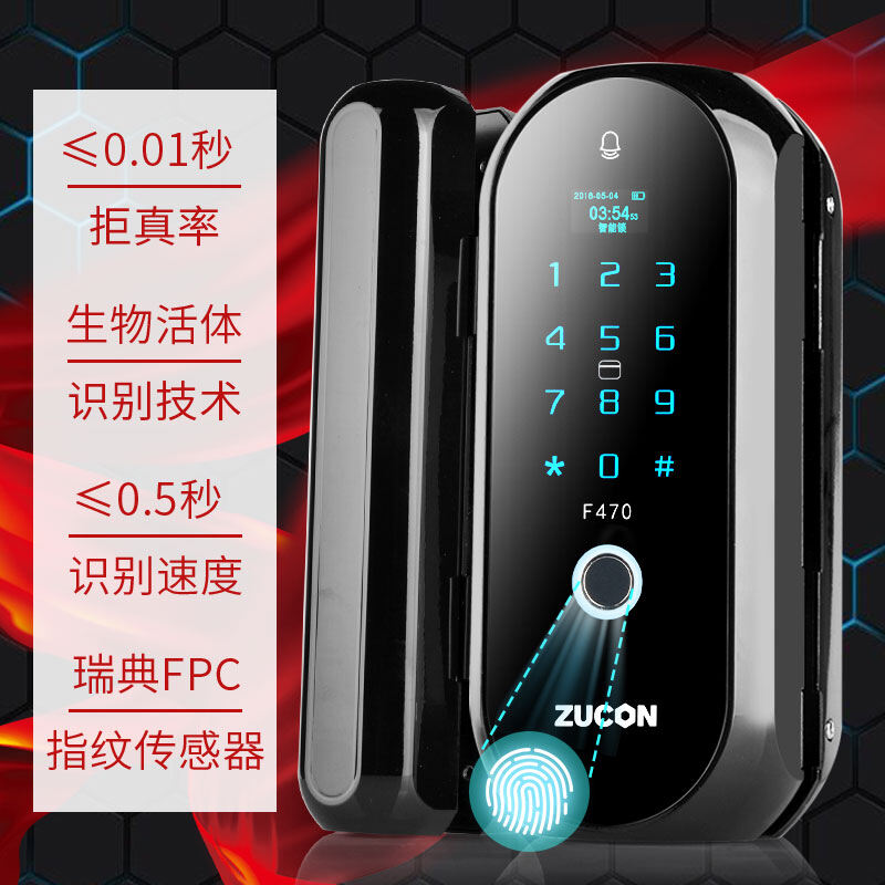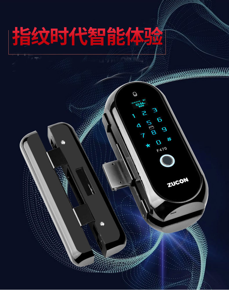 ZUCON祖程F470門禁指紋鎖辦公室玻璃門雙門單開免開孔智能電子密碼鎖家用