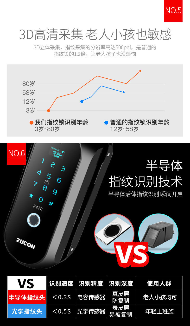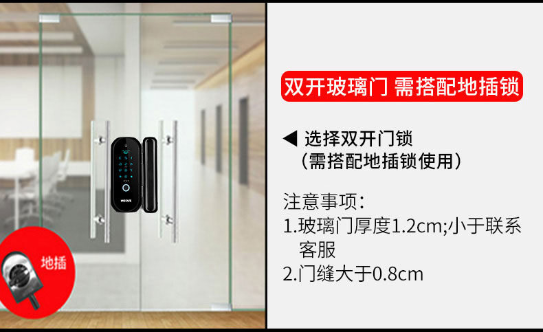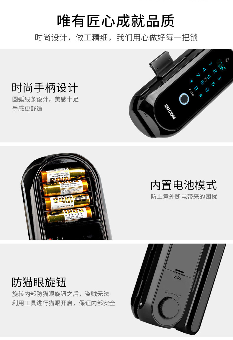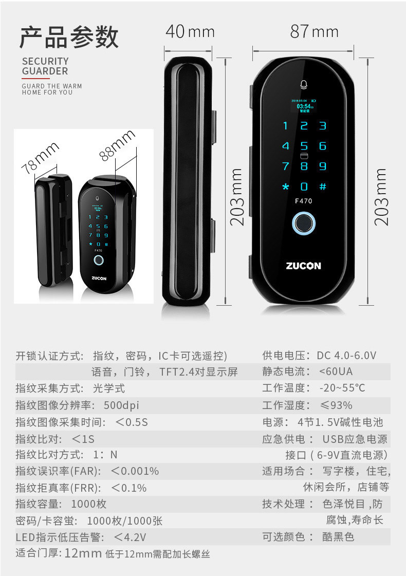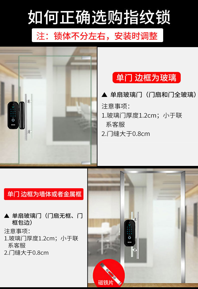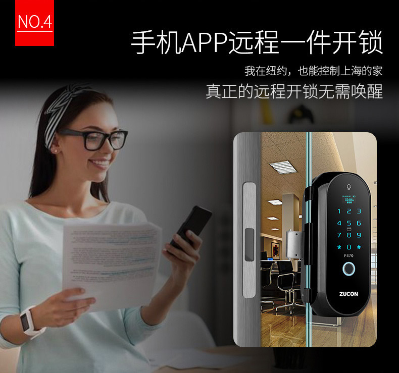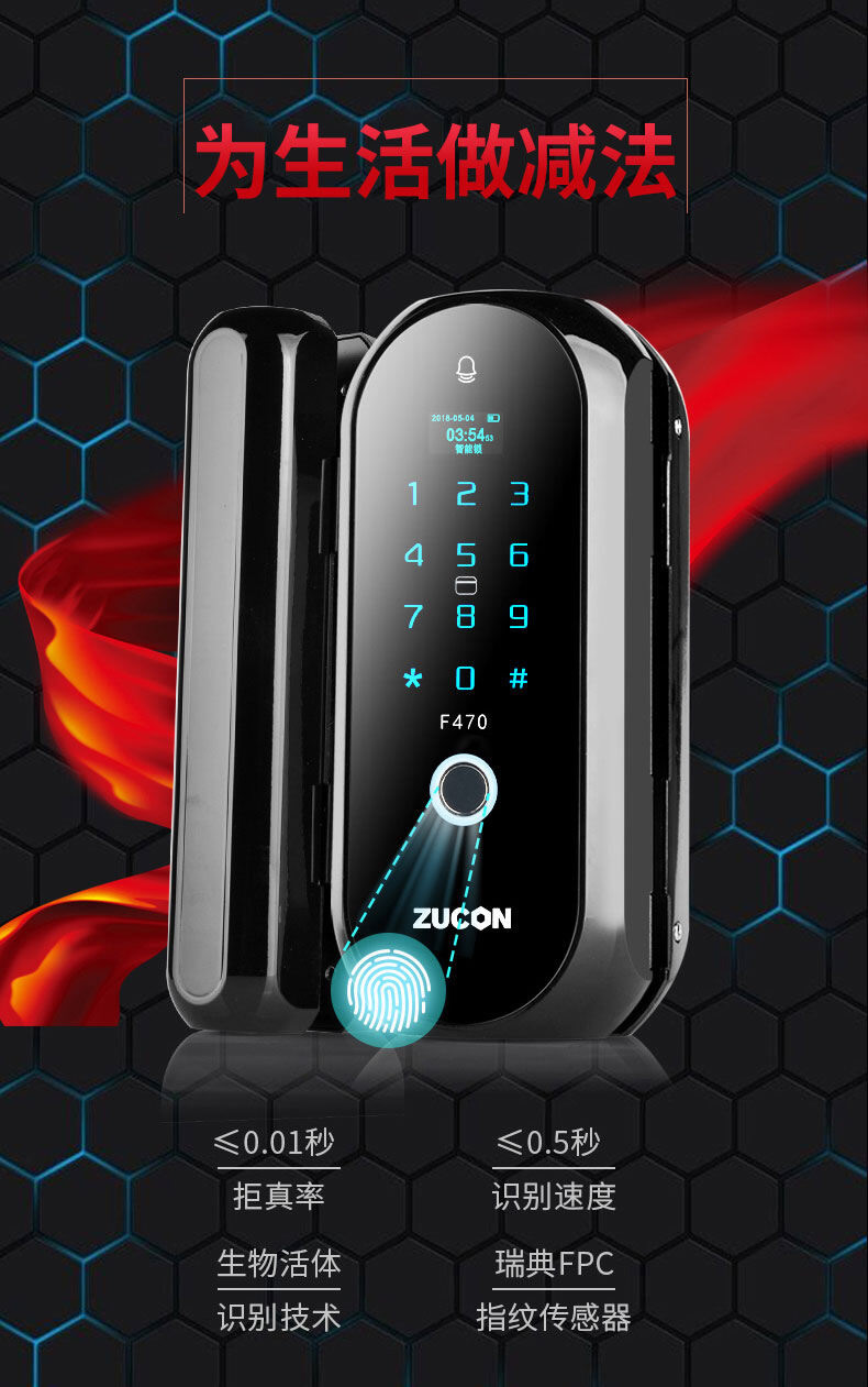 ZUCON祖程F470門禁指紋鎖辦公室玻璃門雙門單開免開孔智能電子密碼鎖家用
