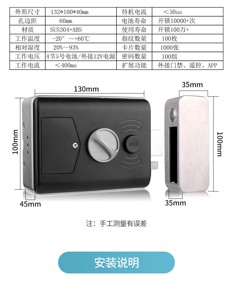ZUCON祖程SK-01指紋一體鎖電控出租房庭院防水不銹鋼免布線刷卡密碼門禁