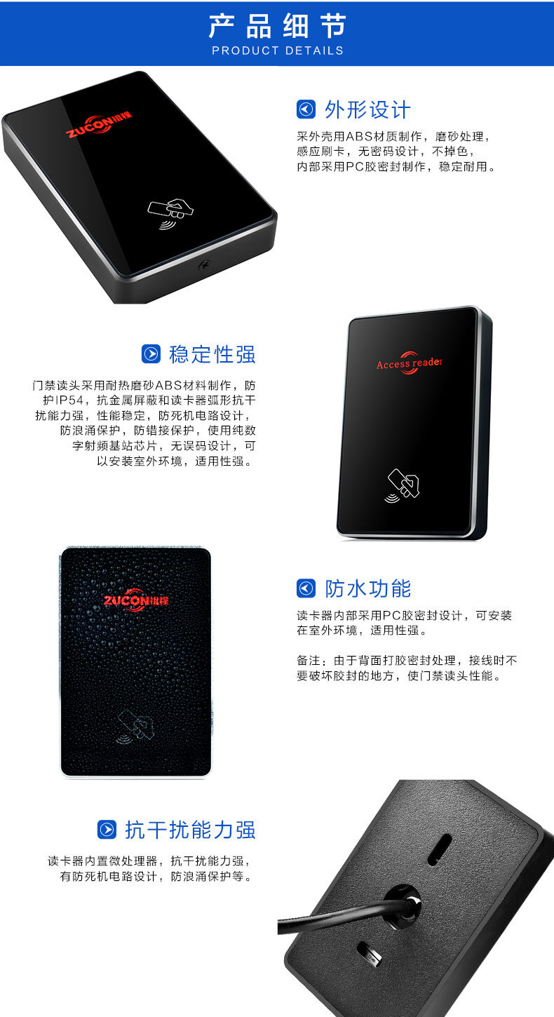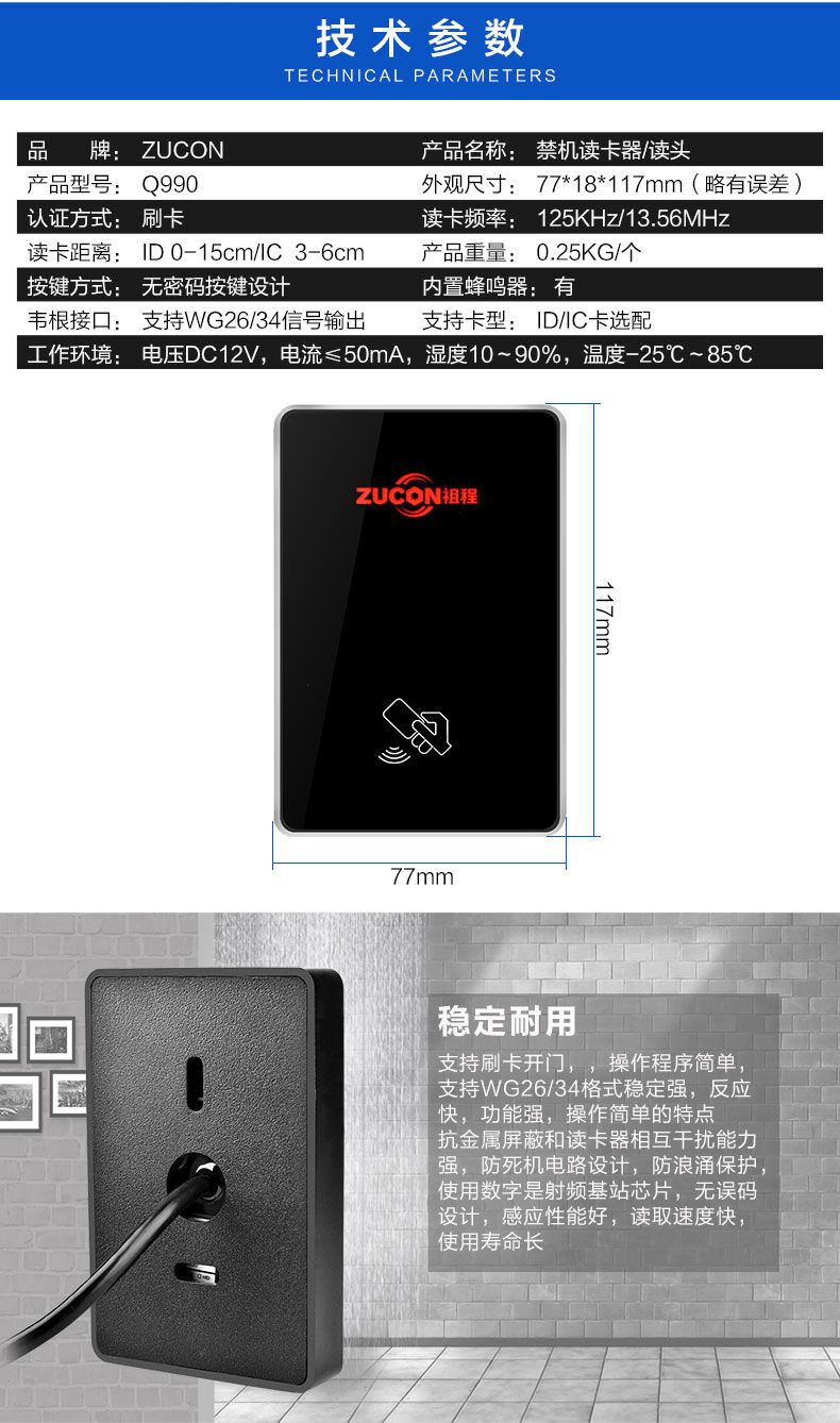 ZUCON祖程Q990門禁讀頭聯網控制器配套讀卡器IDIC刷卡機中性可選