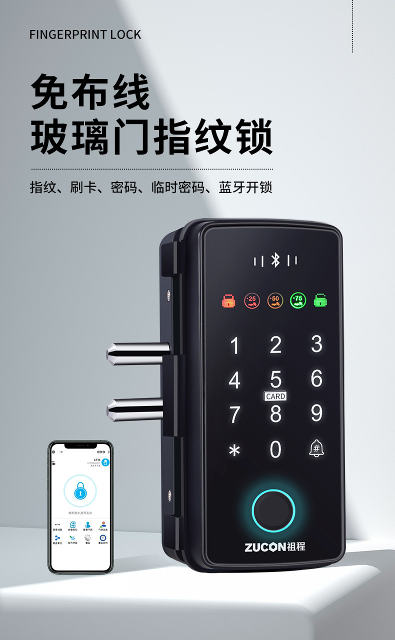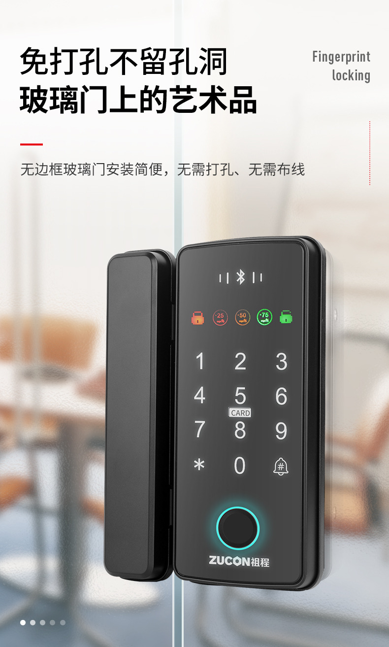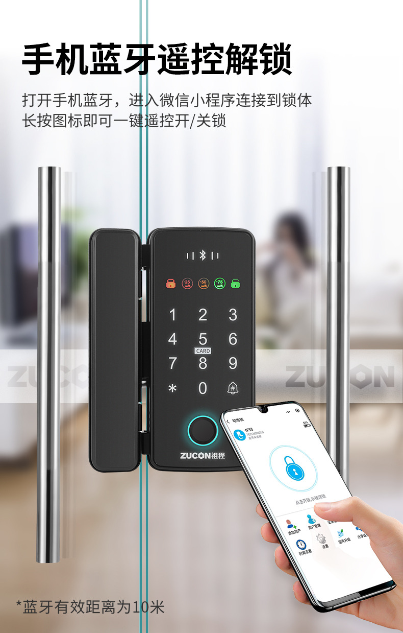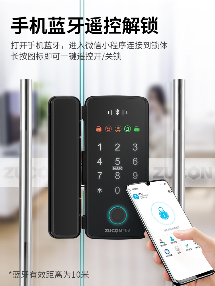 ZUCON祖程F340玻璃門指紋密碼鎖辦公室密碼遙控門鎖單雙門智能電子門禁鎖