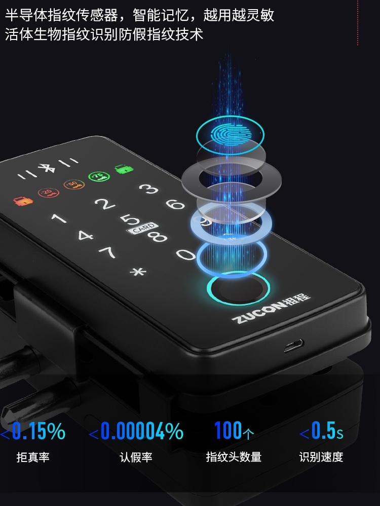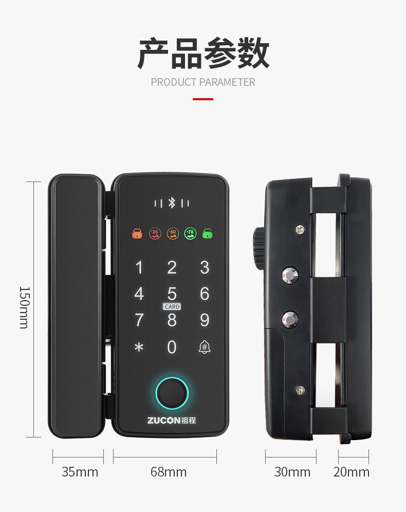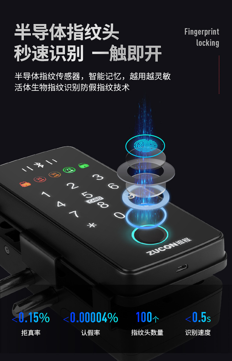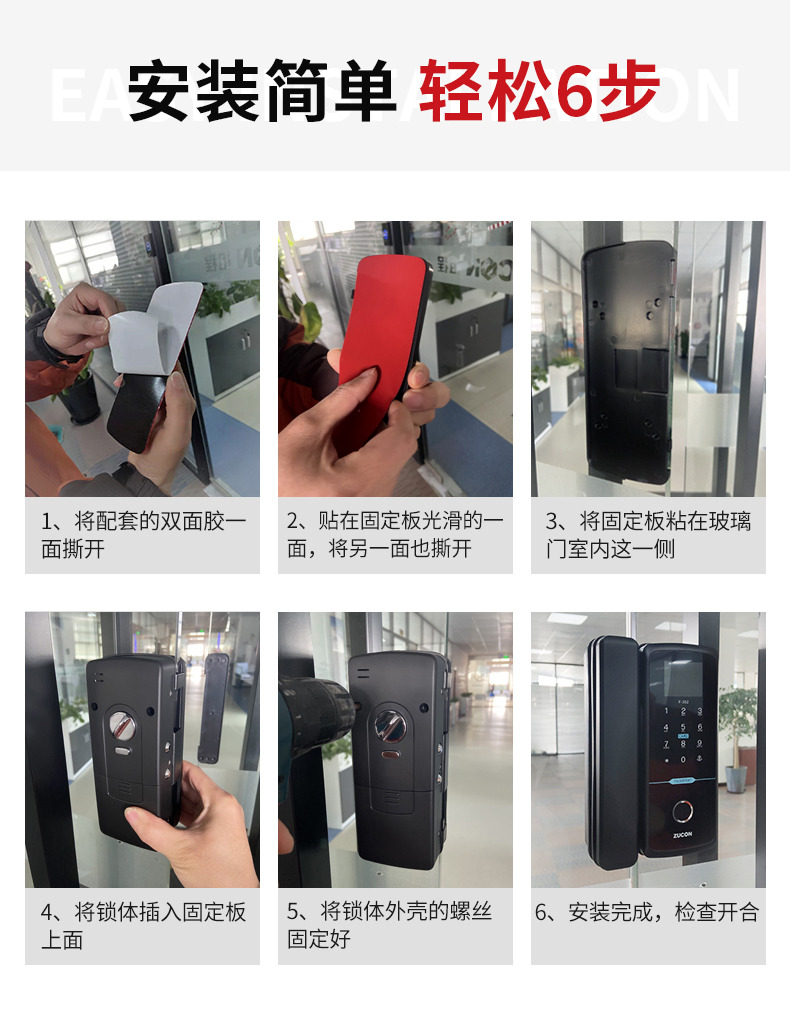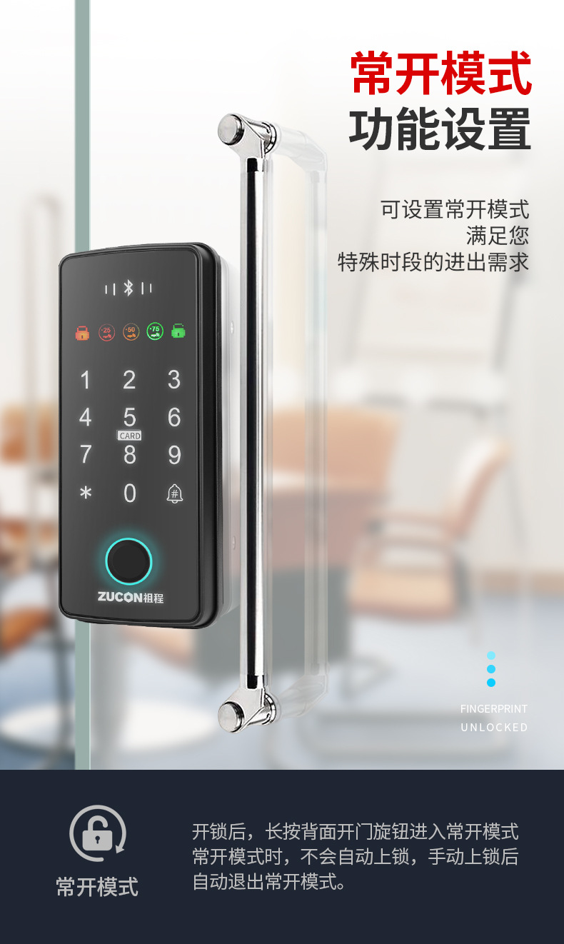 ZUCON祖程F340玻璃門指紋密碼鎖辦公室密碼遙控門鎖單雙門智能電子門禁鎖