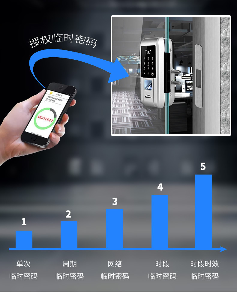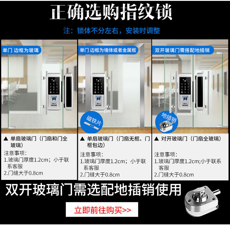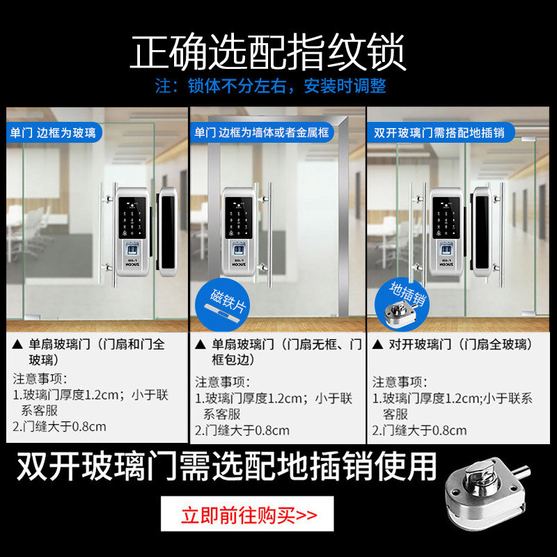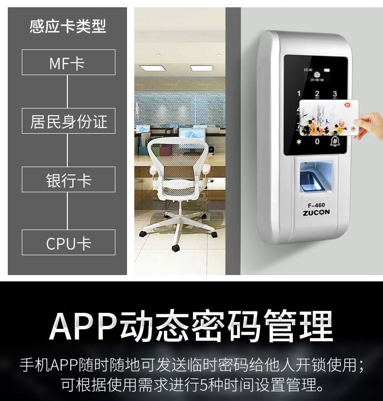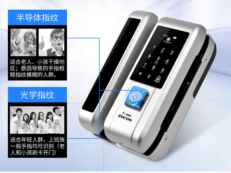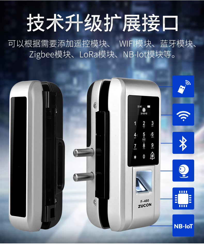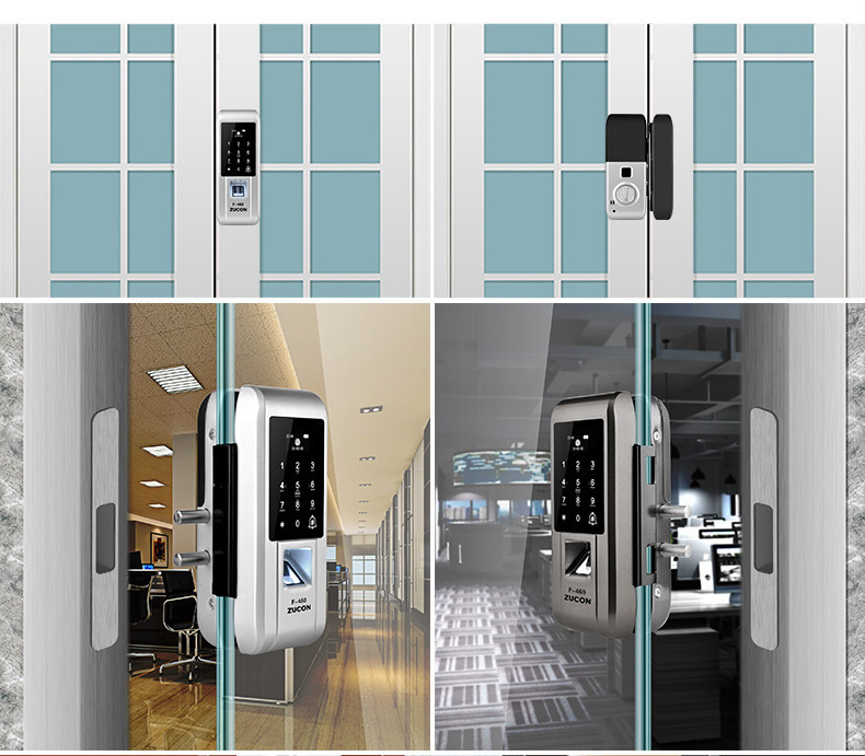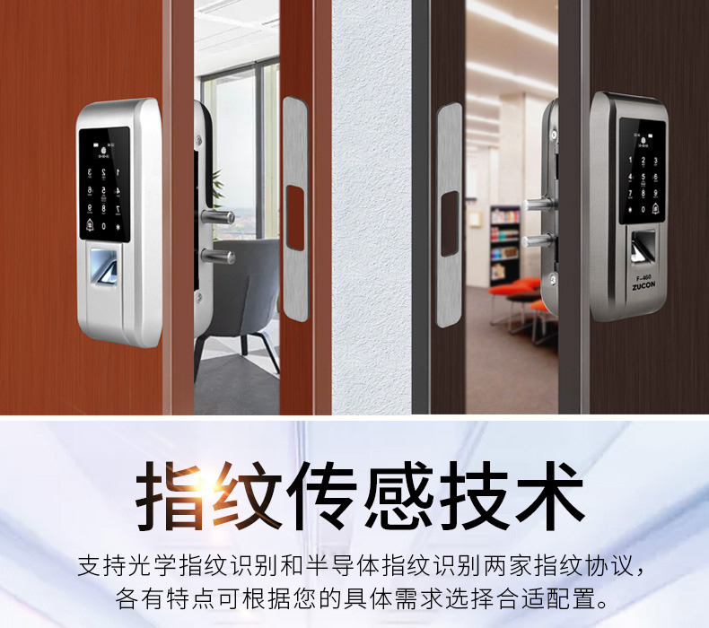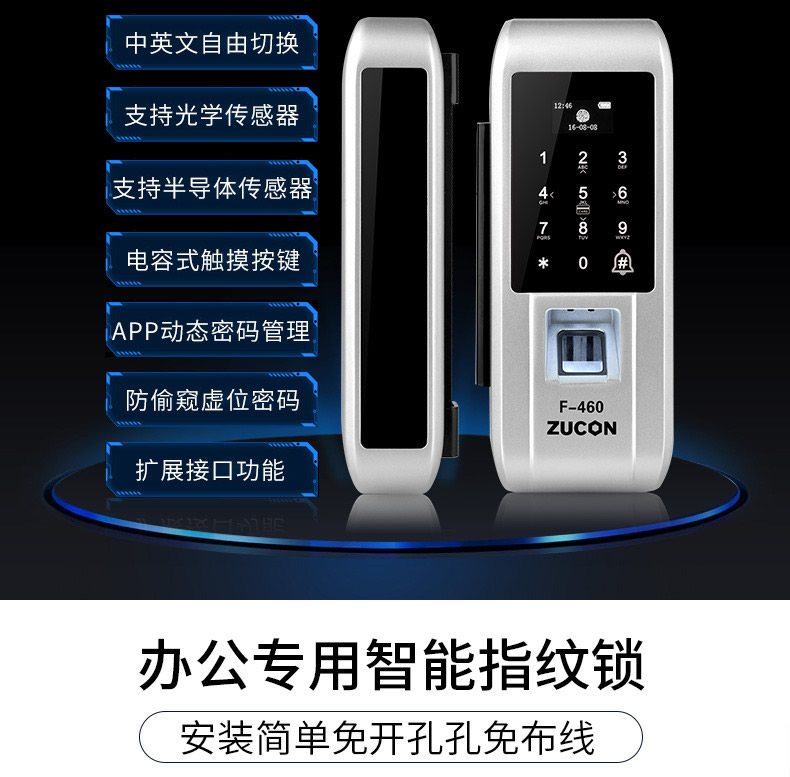 ZUCON祖程F460辦公室玻璃門指紋鎖免開孔免布線密碼鎖鋅合金屬門禁鎖IC卡
