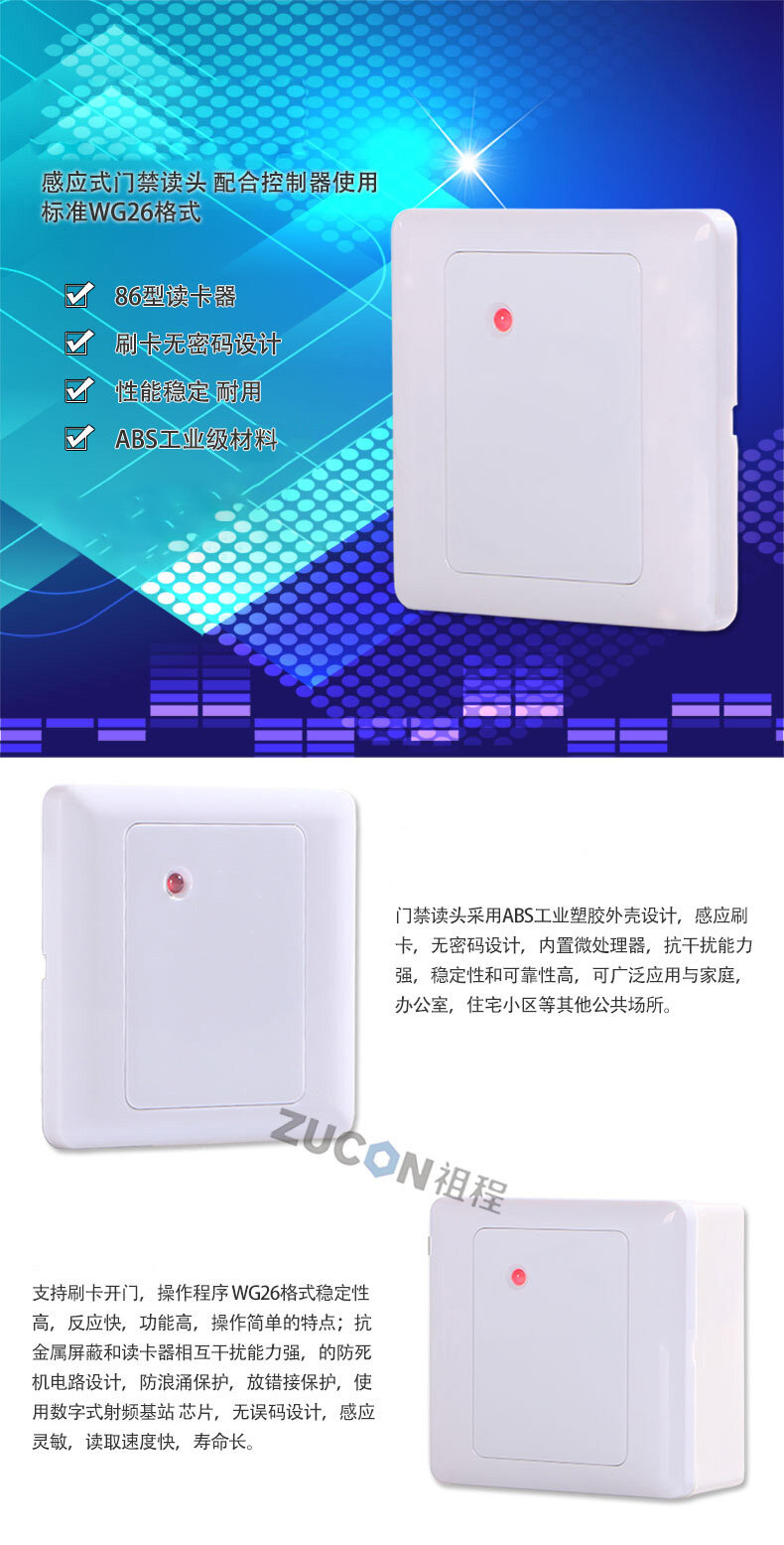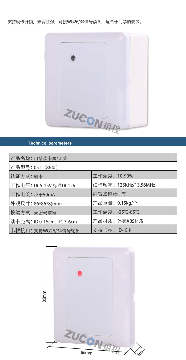 ZUCON祖程05J-86型門(mén)禁考勤讀卡器IDIC卡門(mén)禁讀頭刷卡機(jī)門(mén)禁刷卡器讀頭