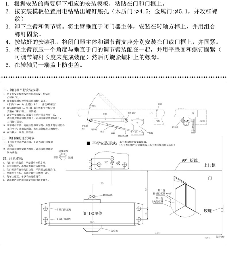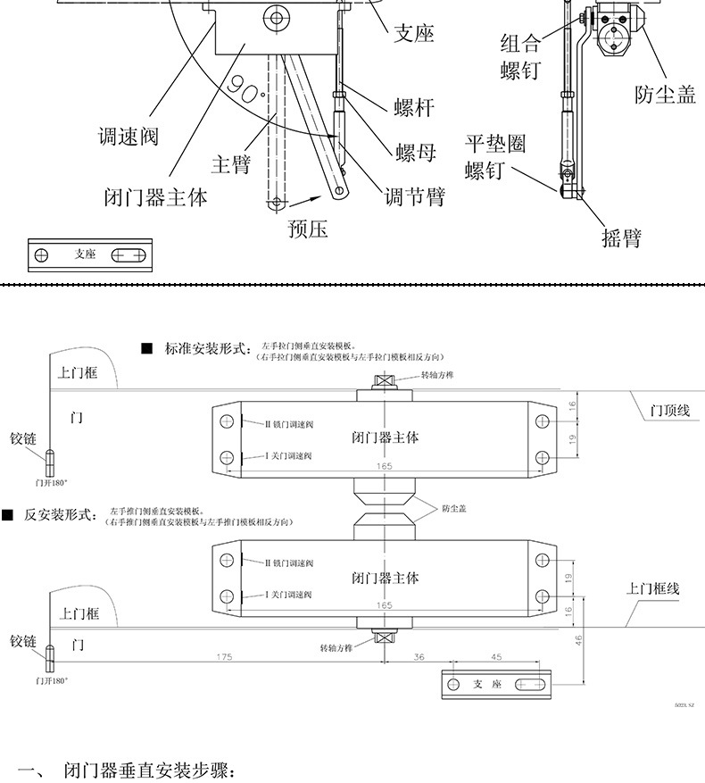 ZUCON祖程061A不定位定位液壓緩沖閉門器自動關(guān)門器家用門防火門35-65KG