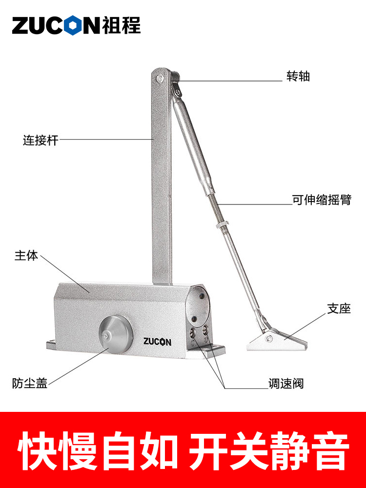 ZUCON祖程051+液壓閉門器小號自動關門器門禁閉門器定位不定位