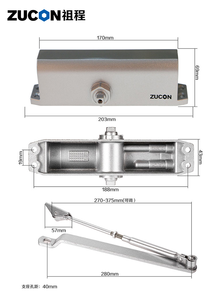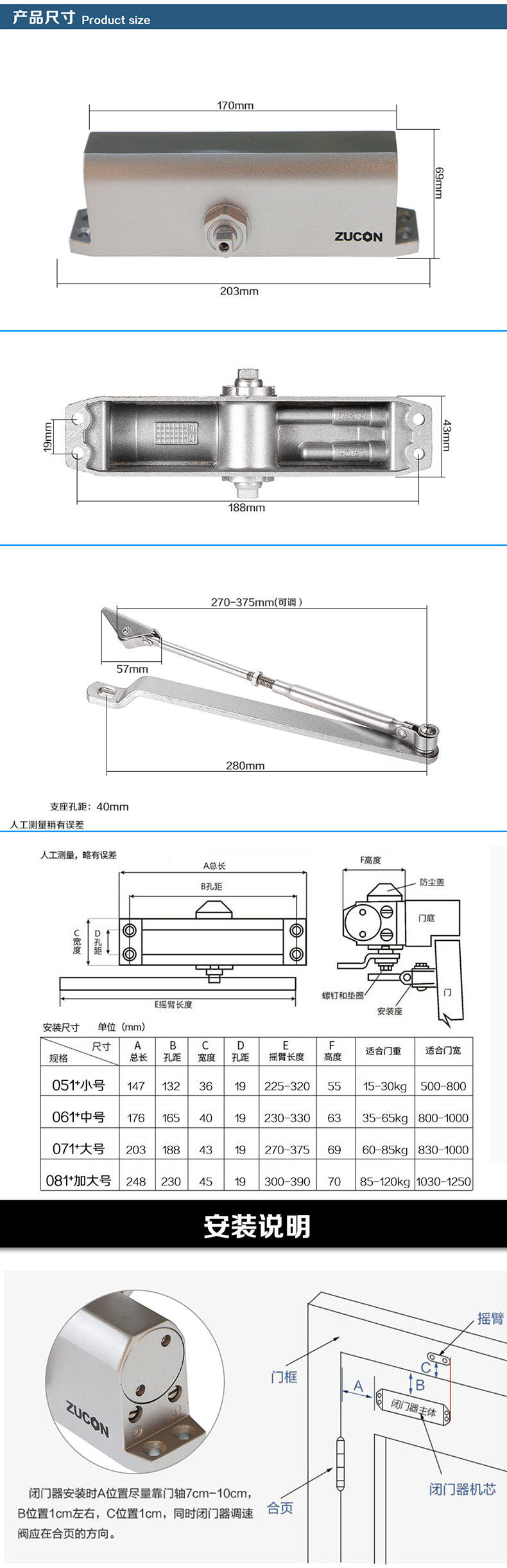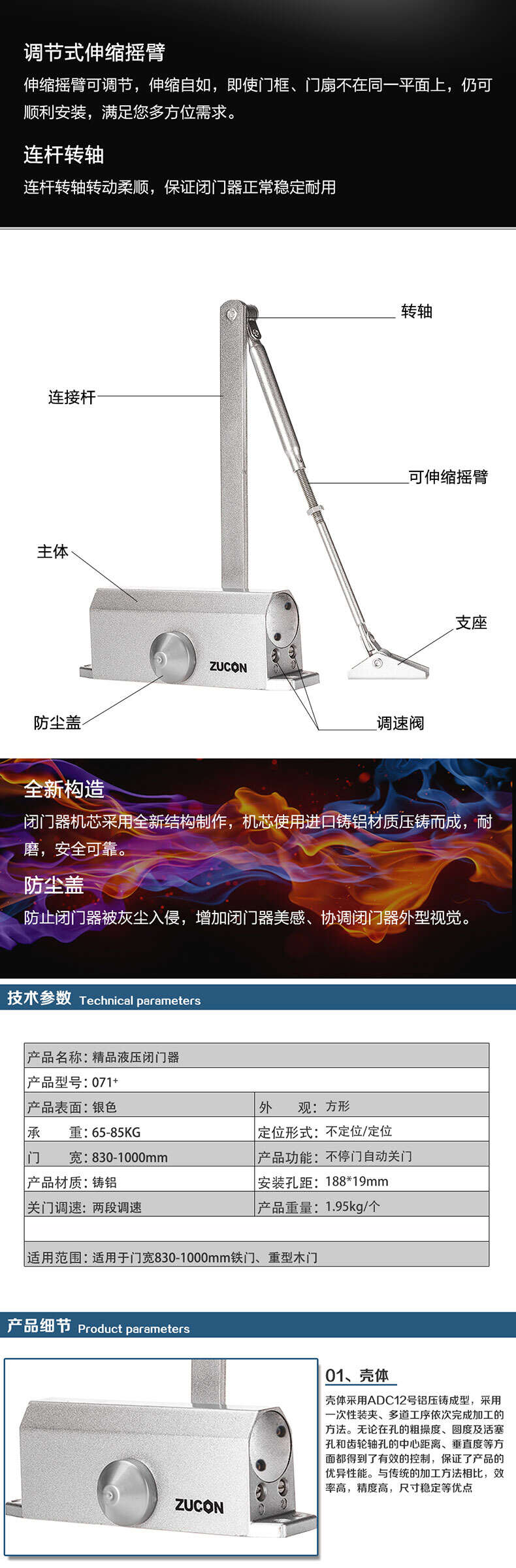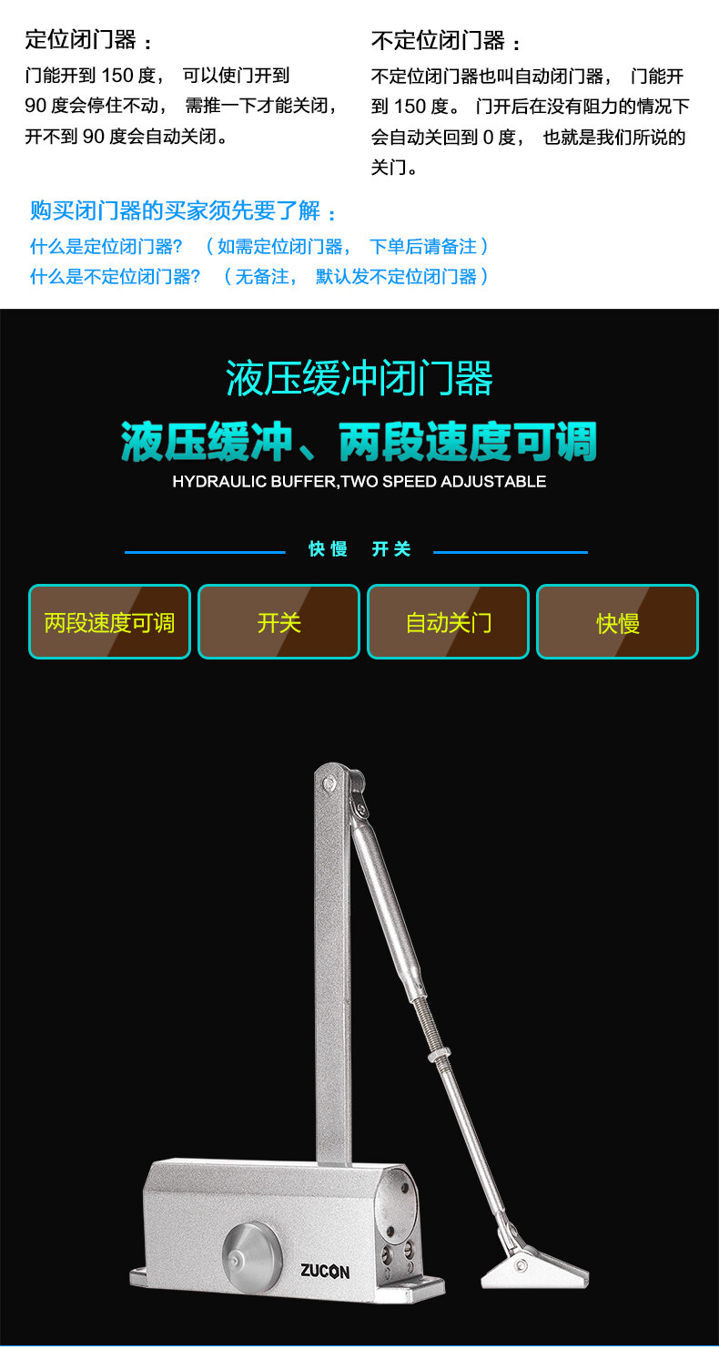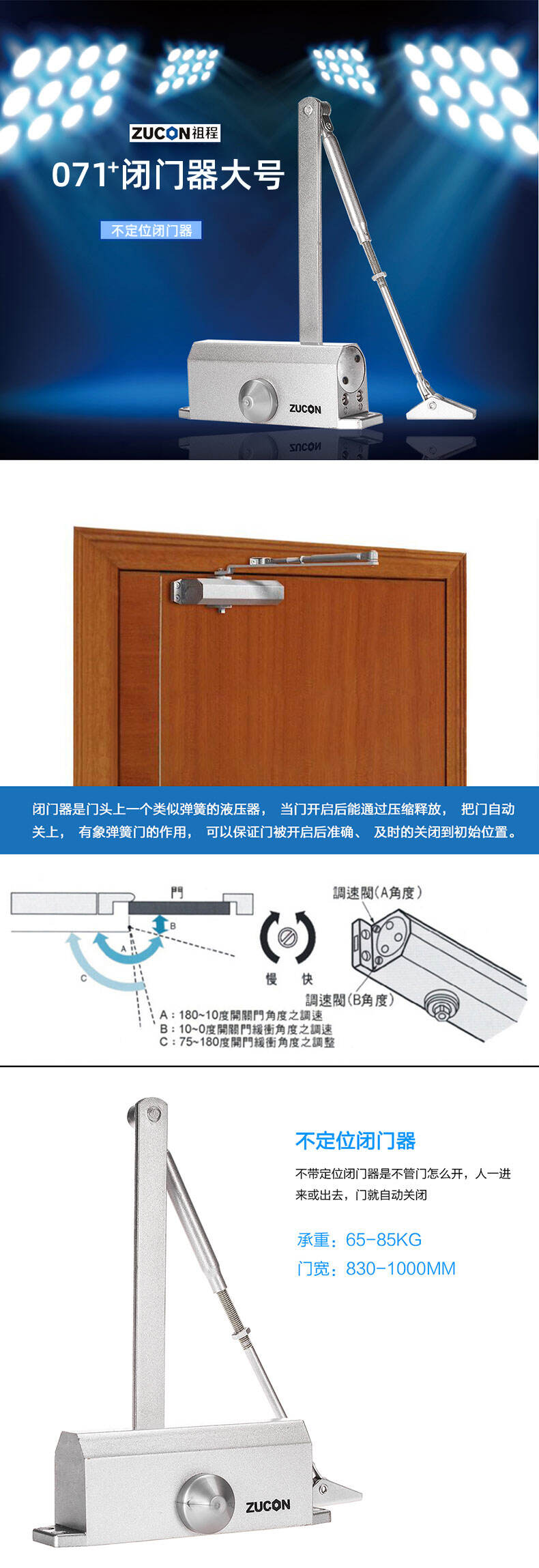 ZUCON祖程071+大號液壓閉門器65KG自動關門器071+閉門器不定位