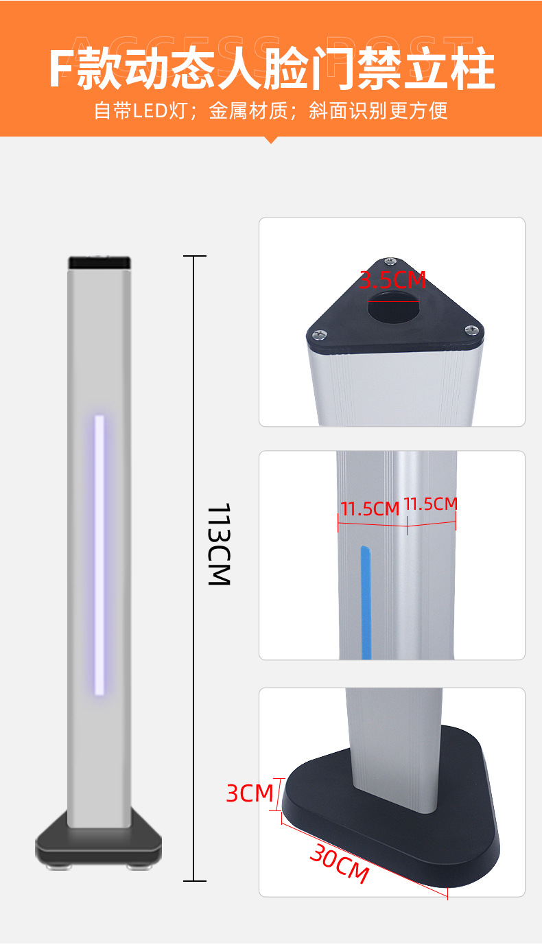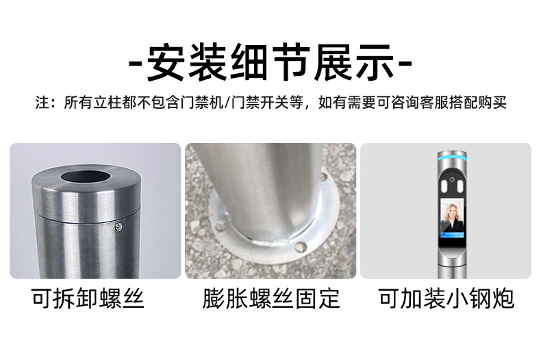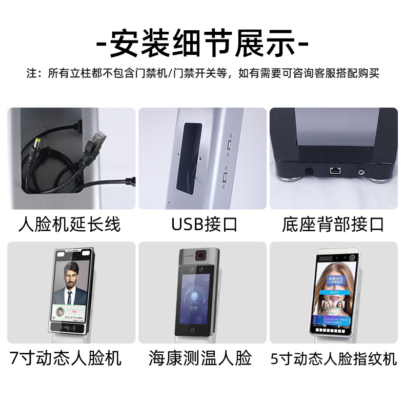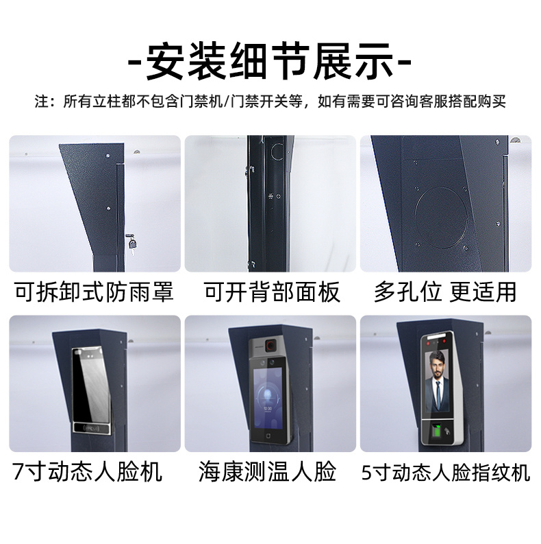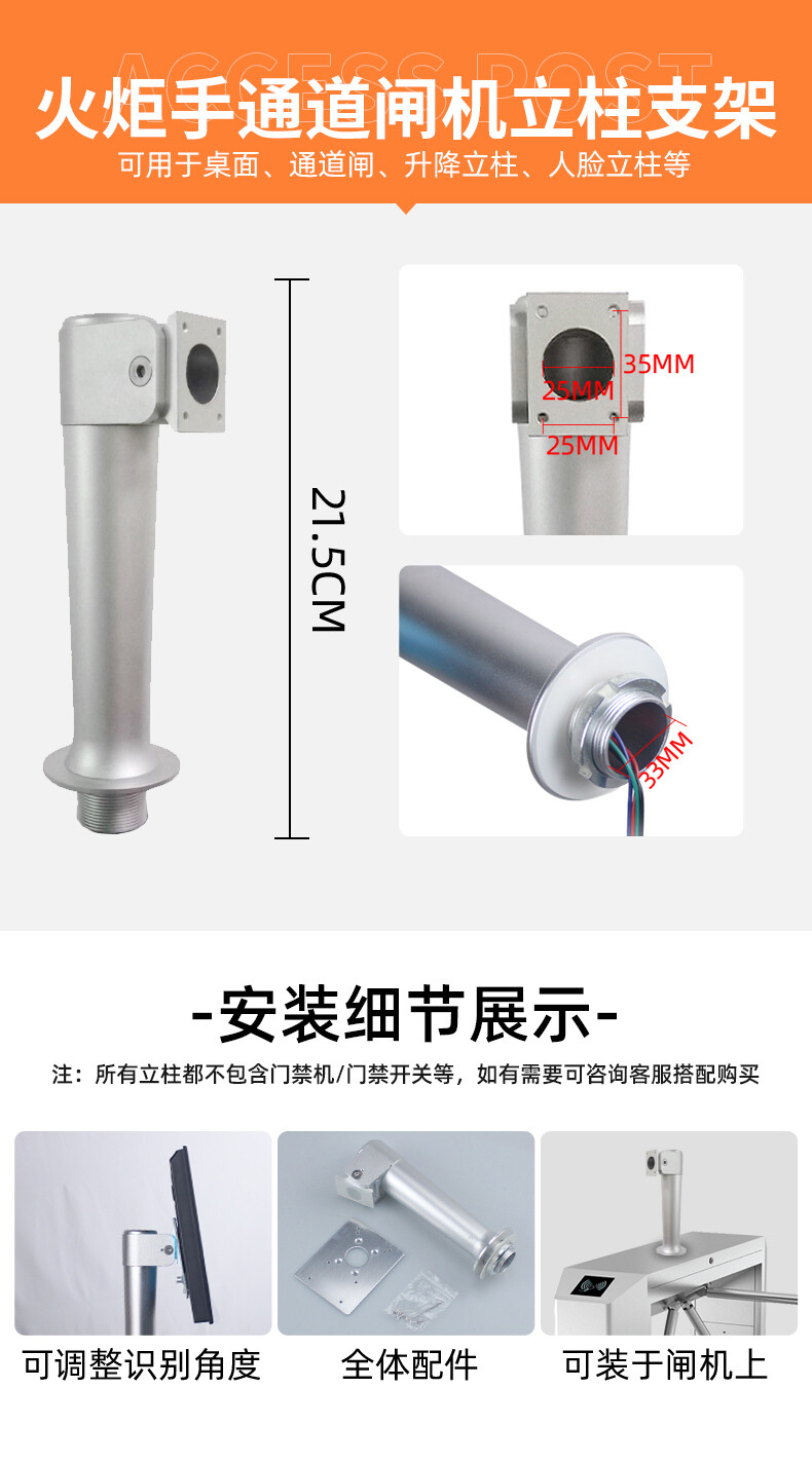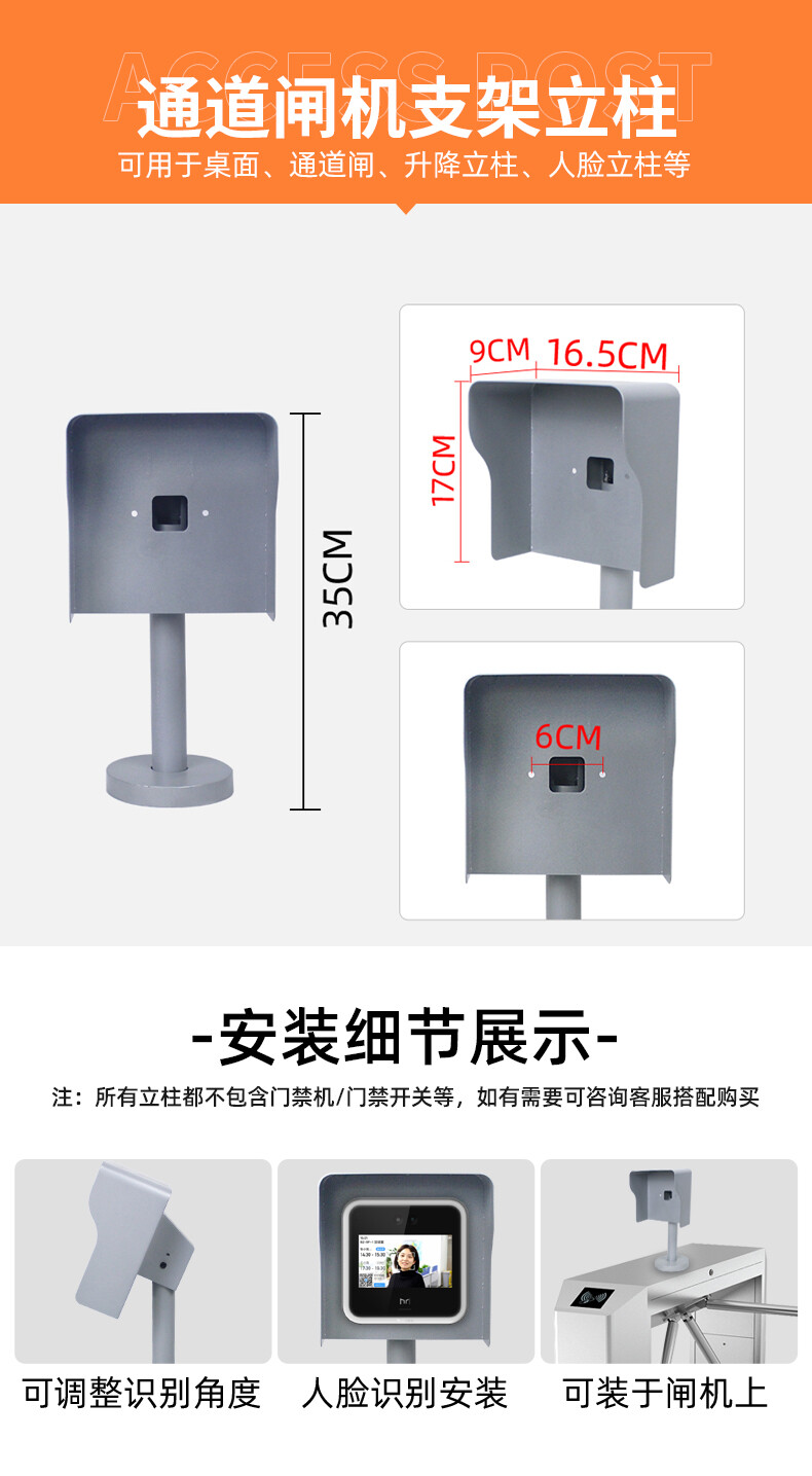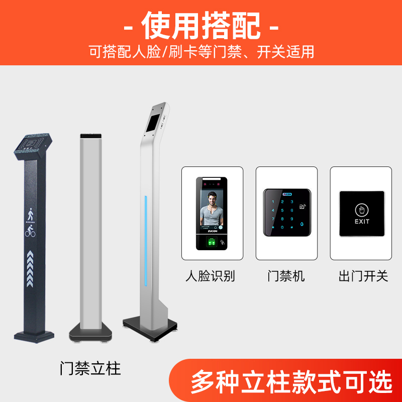 ZUCON祖程立柱測(cè)溫人臉識(shí)別刷卡機(jī)金屬防水防曬支架立柱通道閘支架立柱