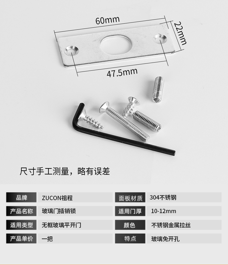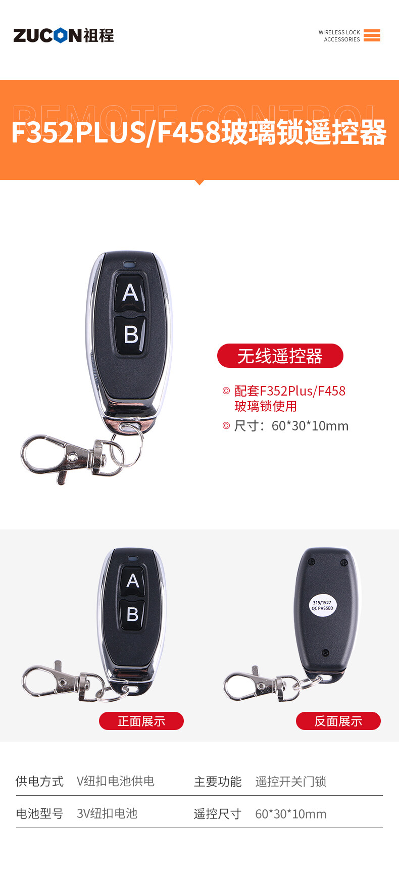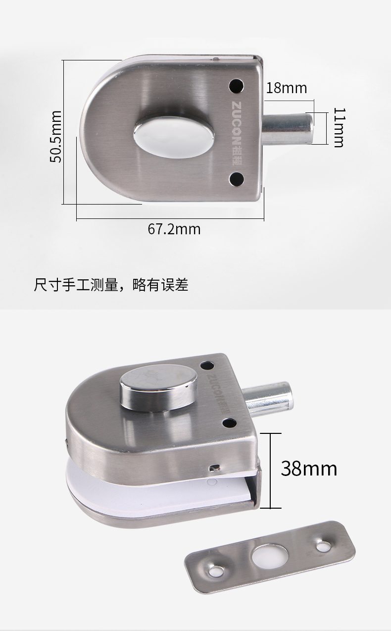 ZUCON祖程玻璃門鎖地銷對開玻璃鎖無線遙控膠底板地插銷