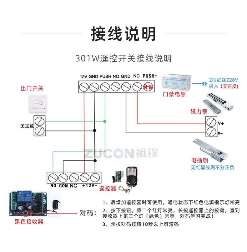 ZUCON祖程K50門(mén)禁系統(tǒng)套裝配套遙控器 即插即用遙控開(kāi)關(guān) 電子遙控器315M學(xué)習(xí)型