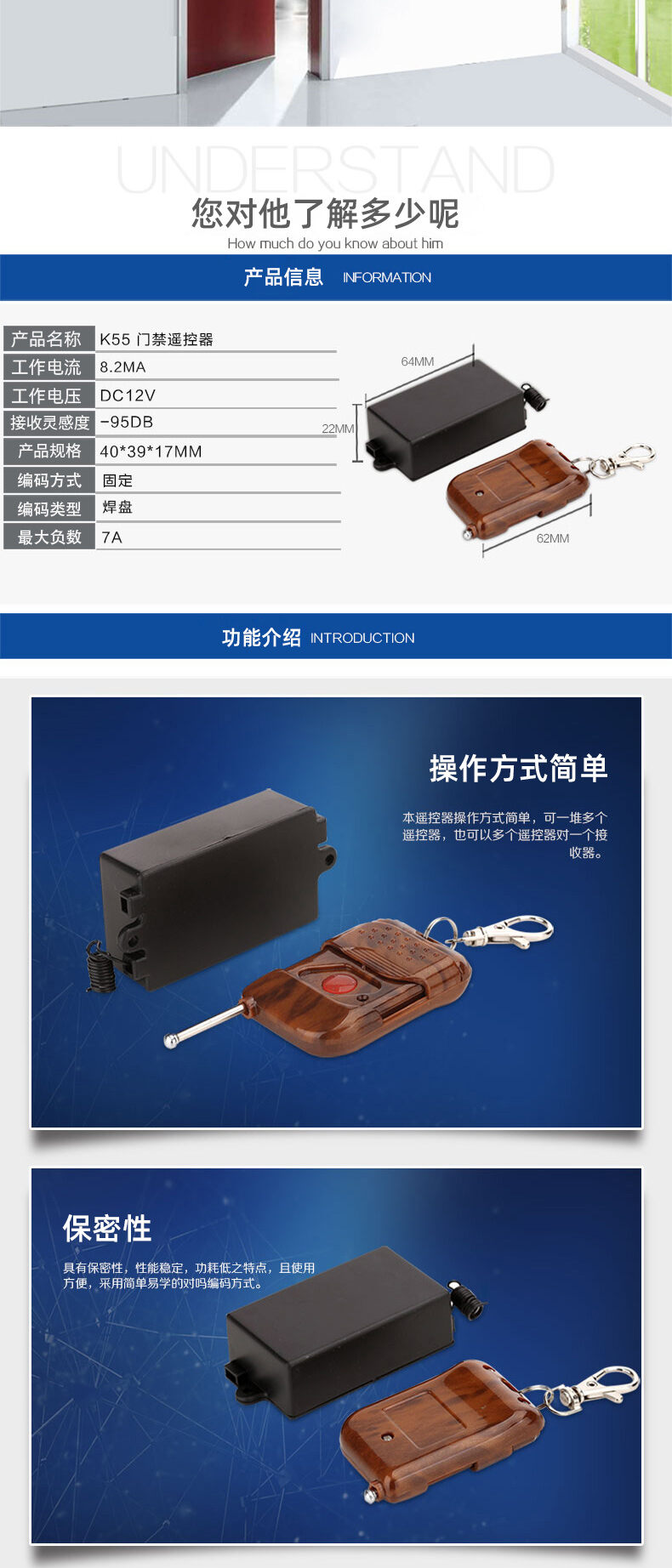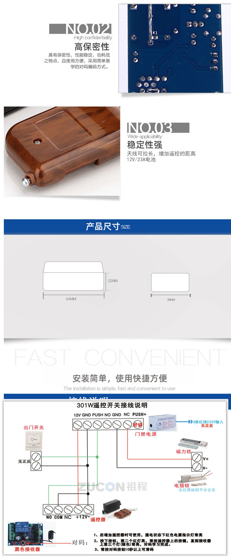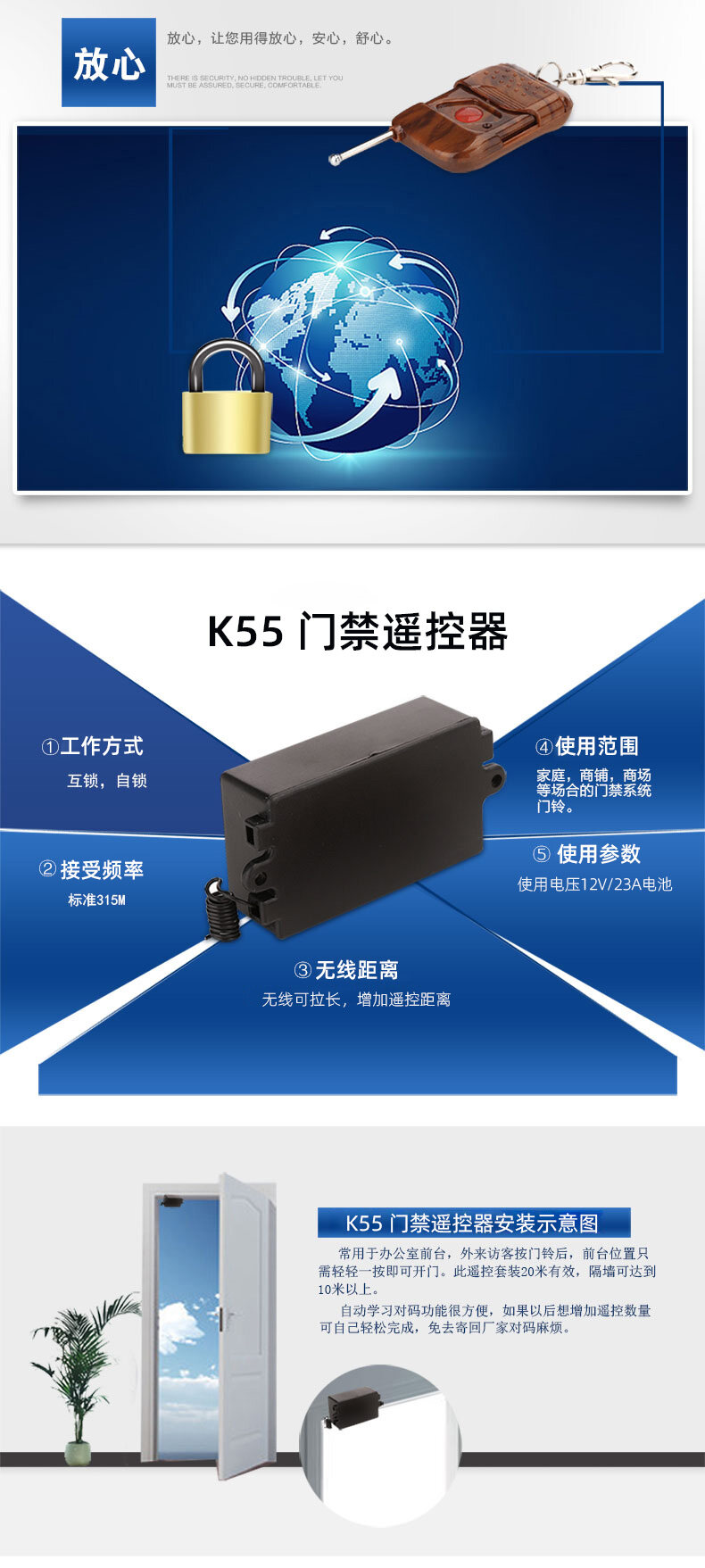 ZUCON祖程K55無線遙控開關 DC12V門禁無線遙控器 電子門禁系統配套遙控