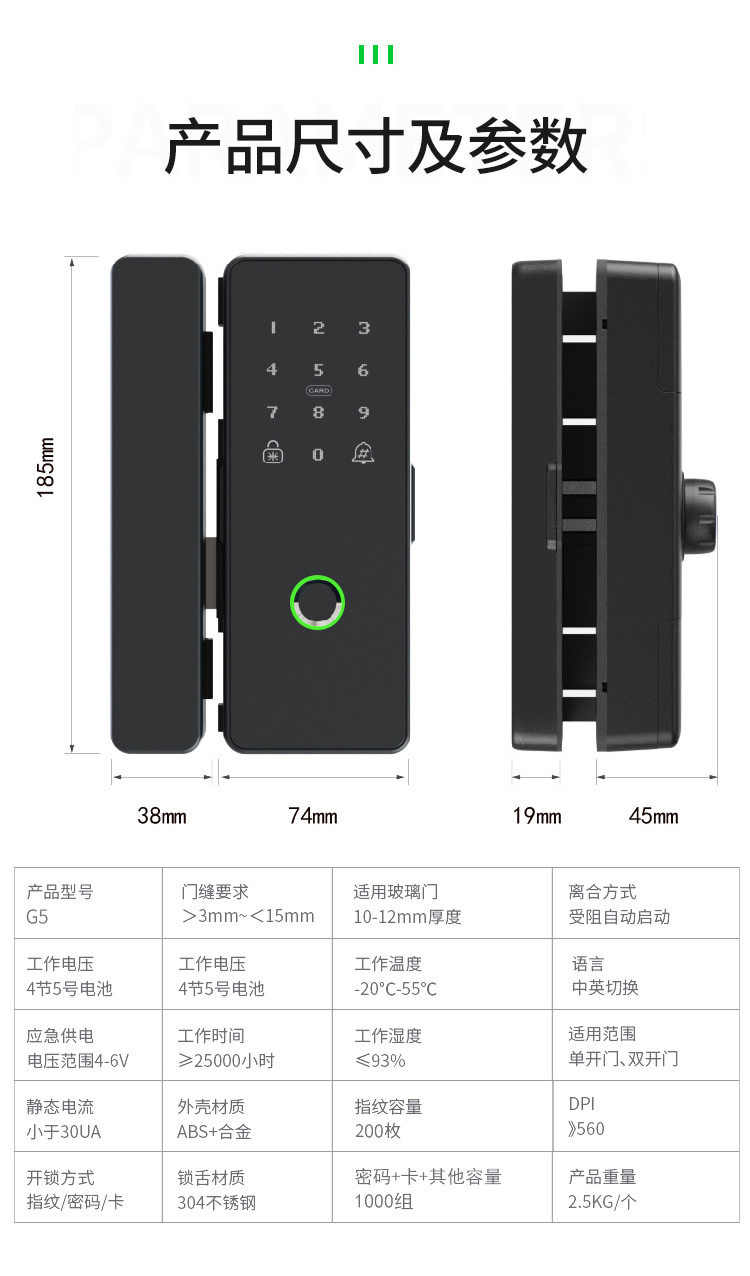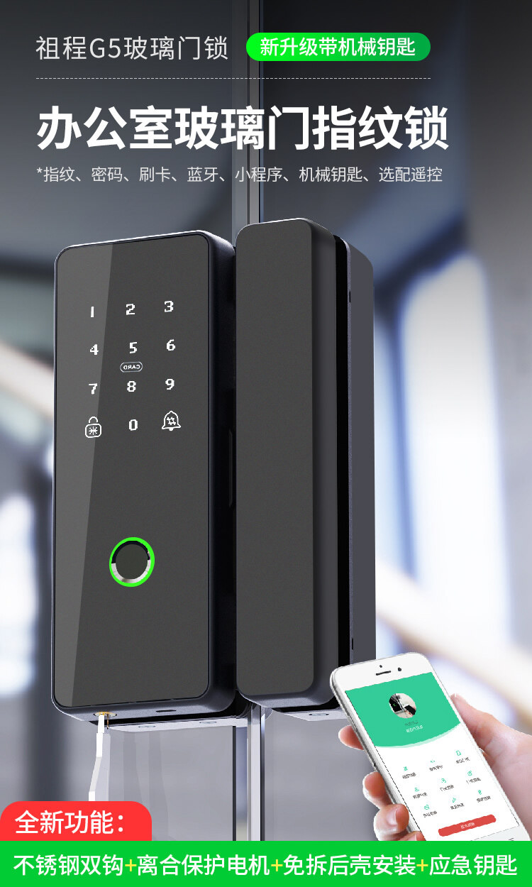 ZUCON祖程G5辦公室玻璃門指紋鎖密碼免開孔單雙門鎖智能電子鎖門禁鎖