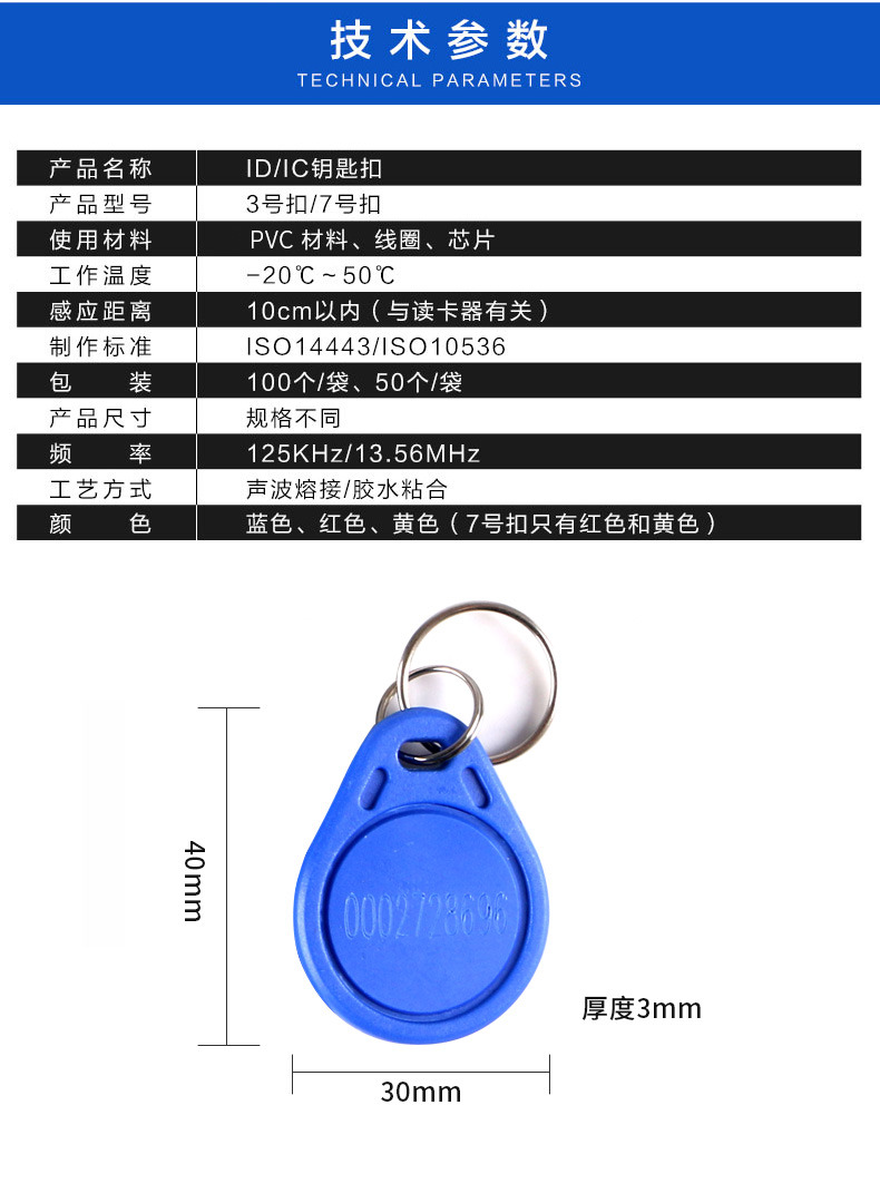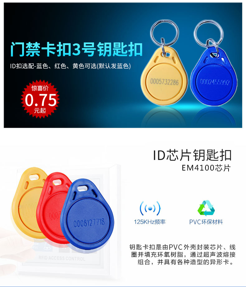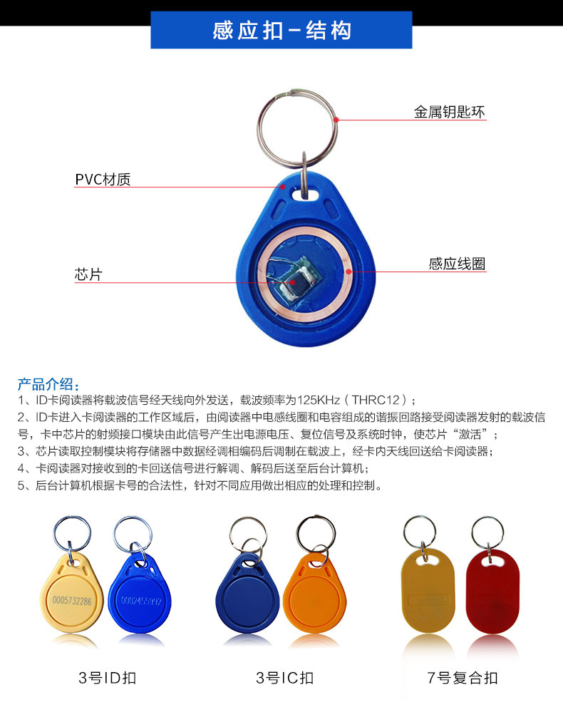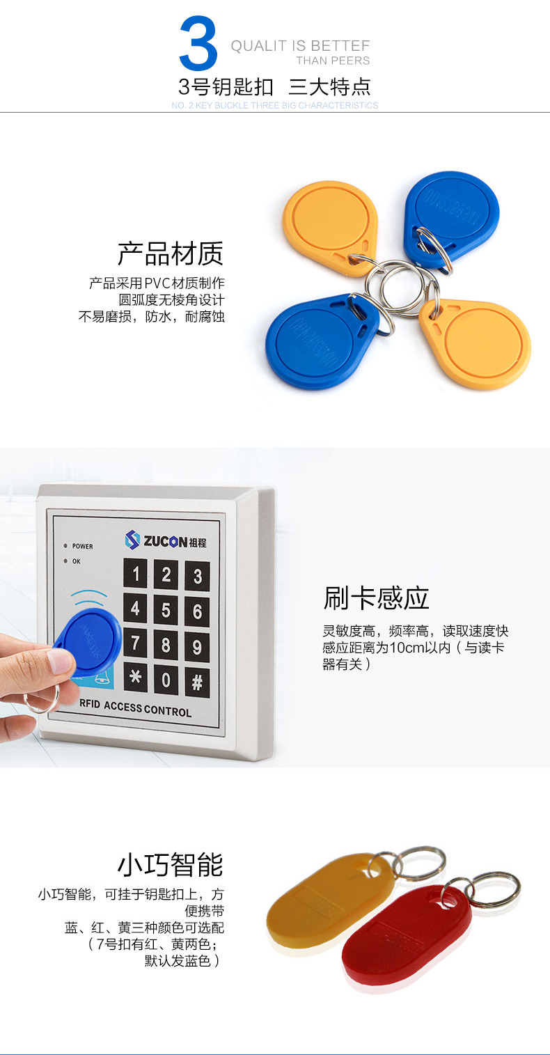ZUCON祖程3號ID卡扣鑰匙扣門禁考勤扣ID感應(yīng)扣3號ID鑰匙扣 ID異形扣