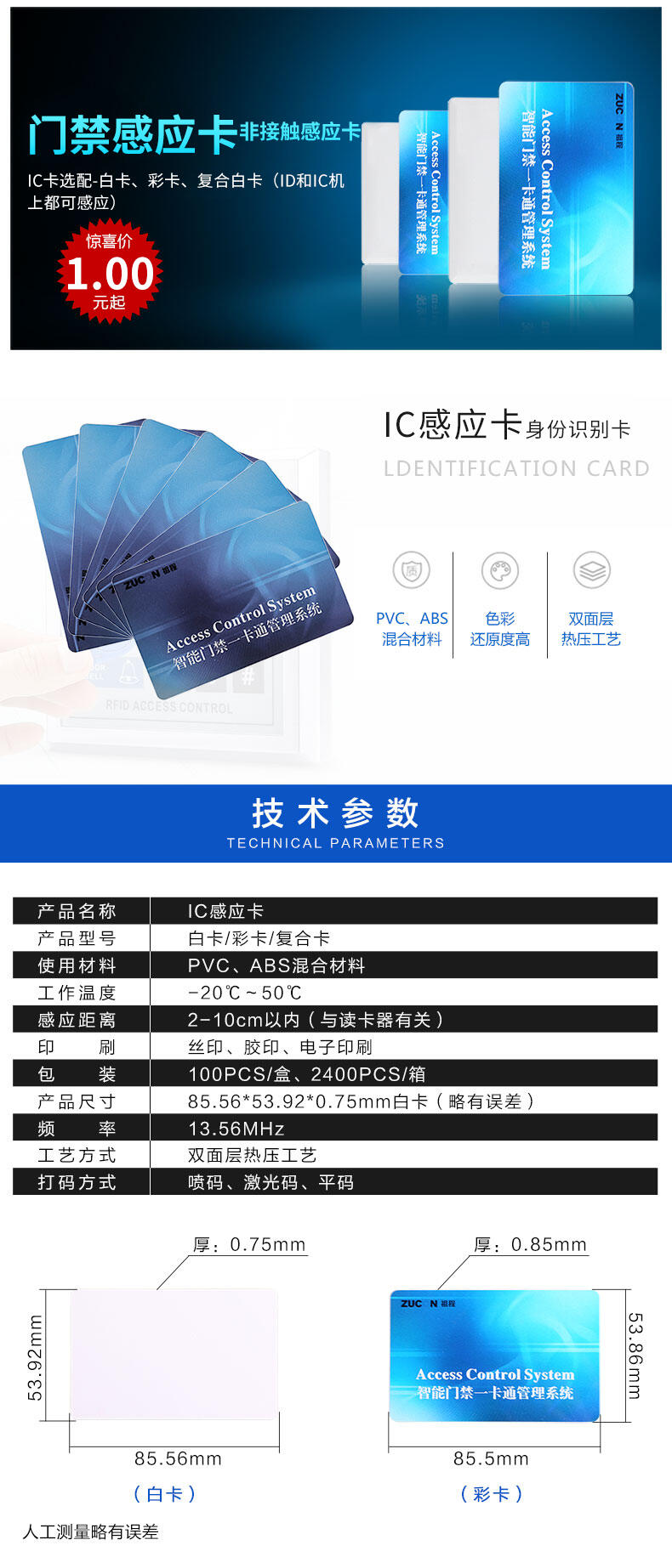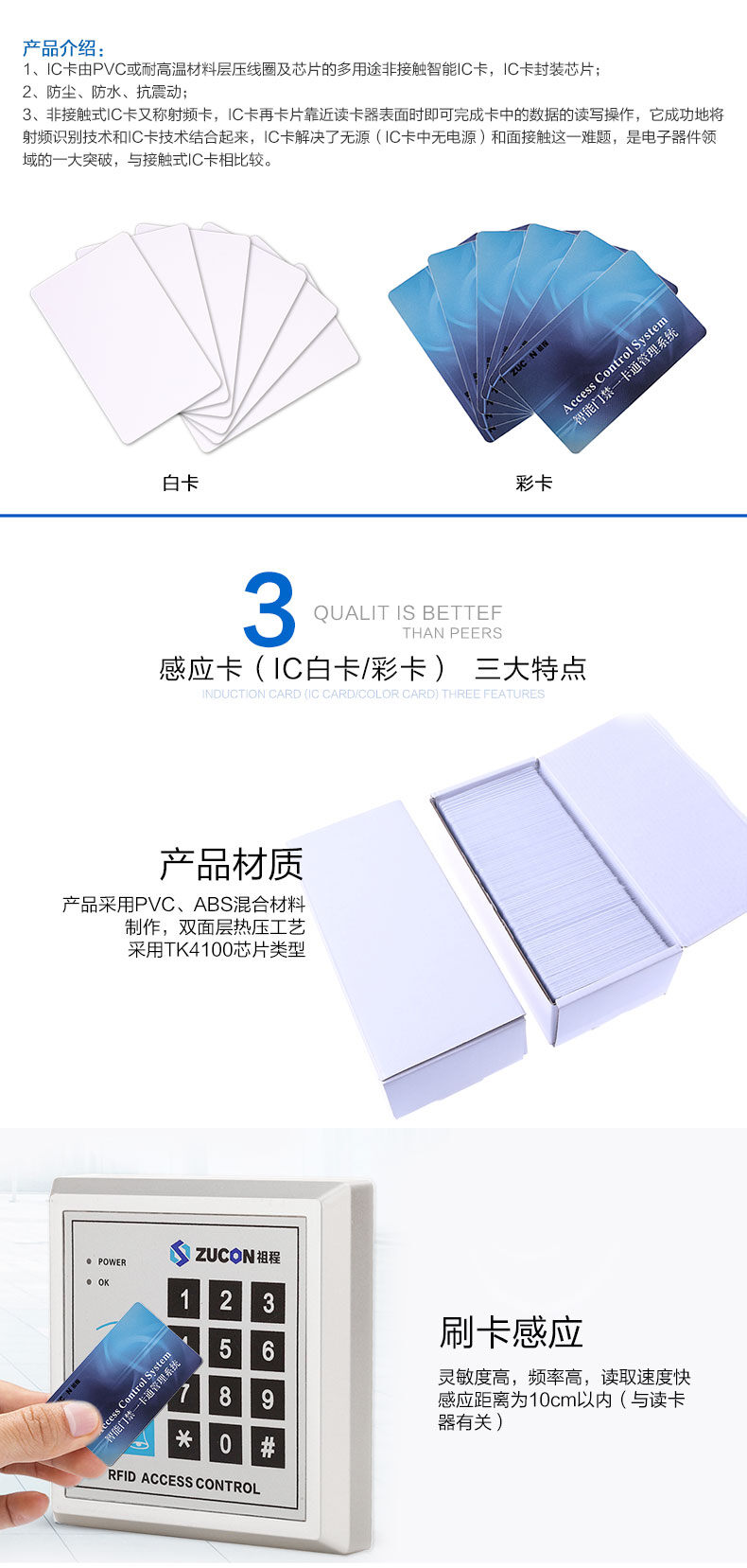 ZUCON祖程IC彩卡門禁考勤系統感應IC卡 IC卡M1卡 IC考勤卡 IC門禁卡