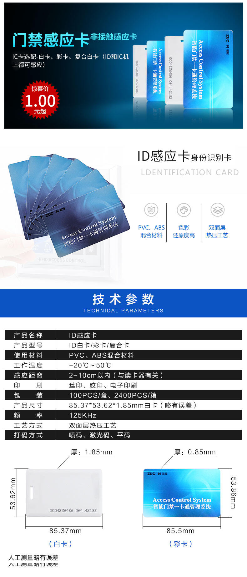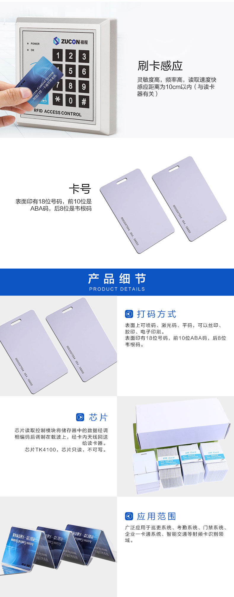 ZUCON祖程ID彩卡門禁考勤系統感應卡ID門卡考勤卡EM卡薄卡厚卡彩卡選配