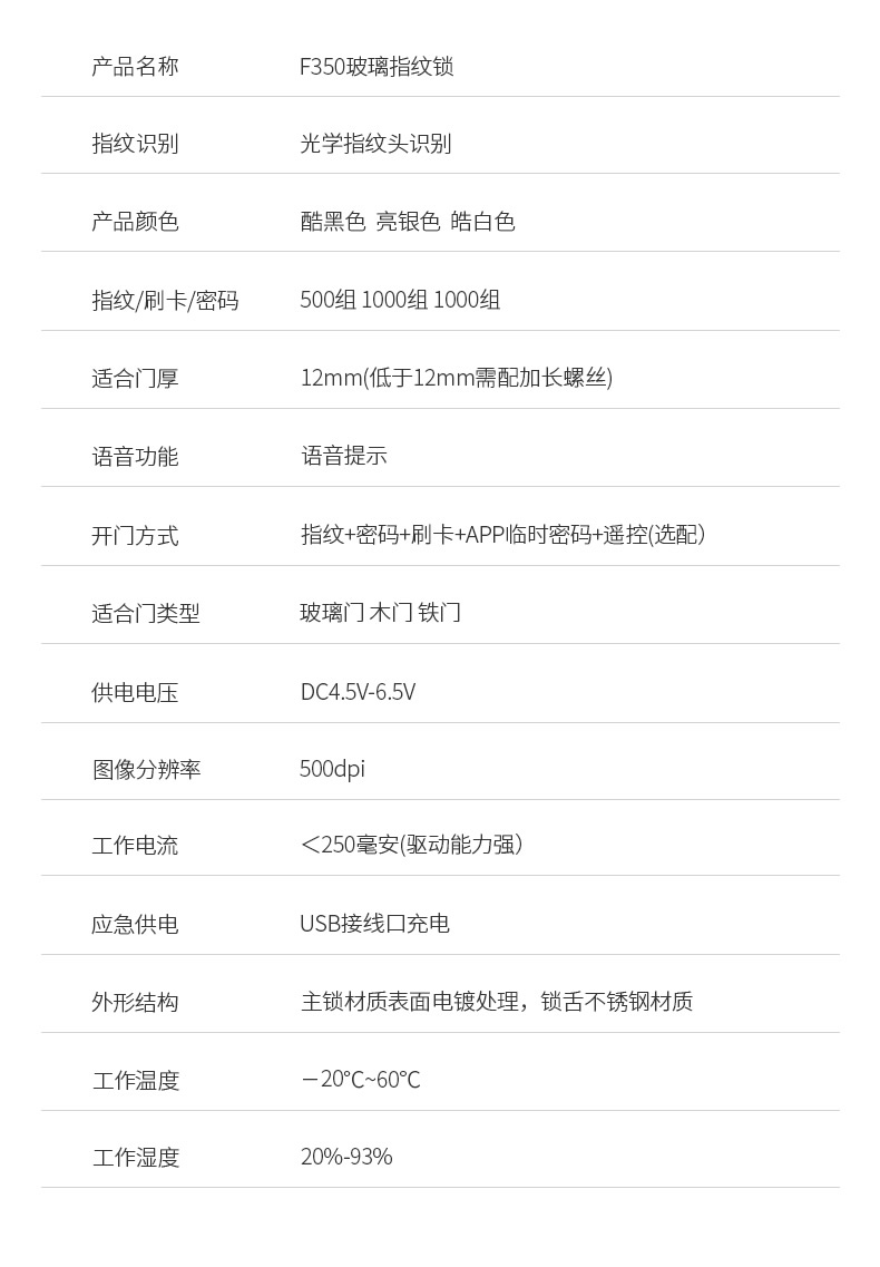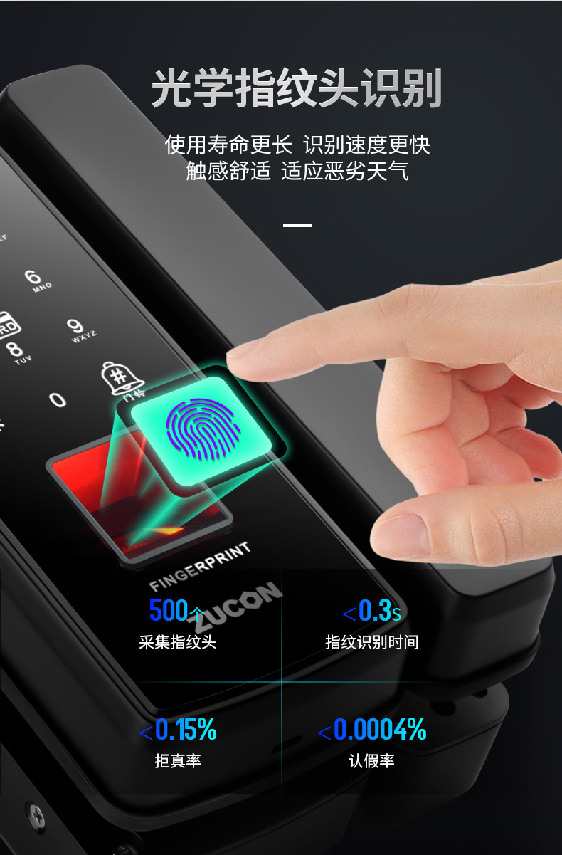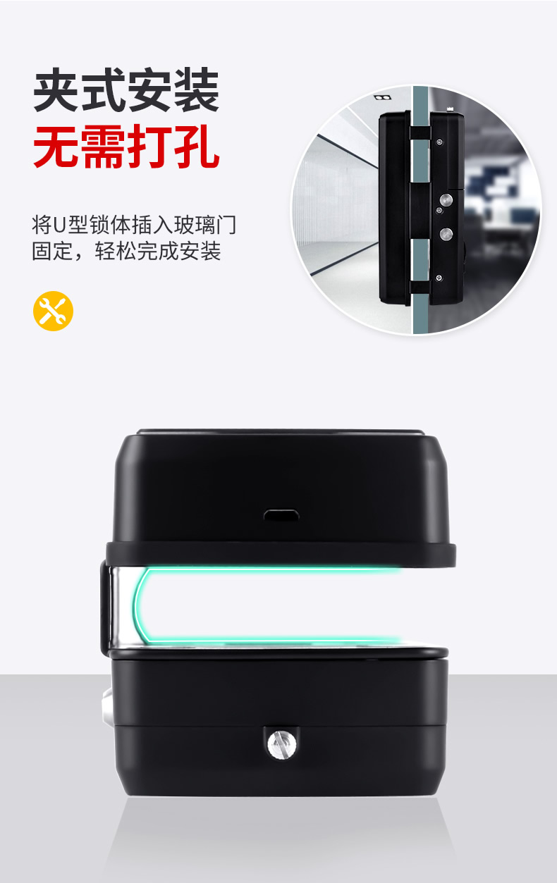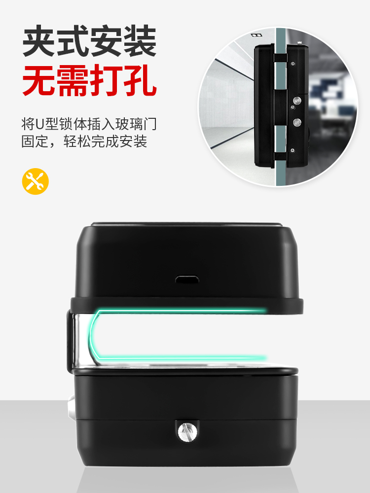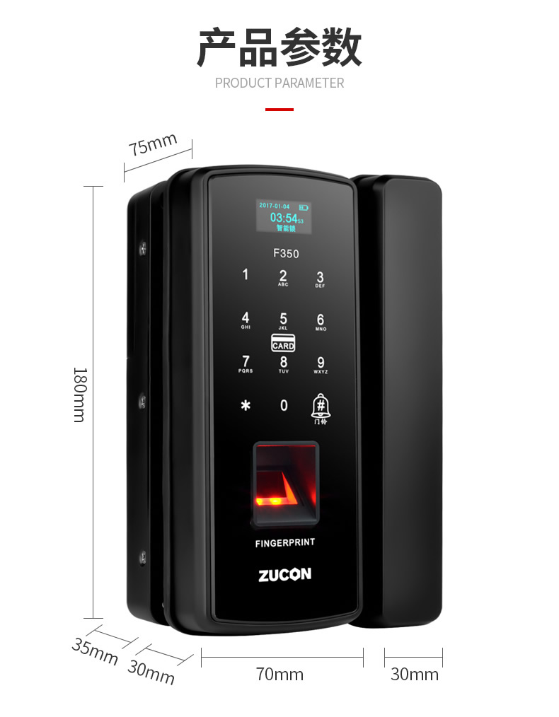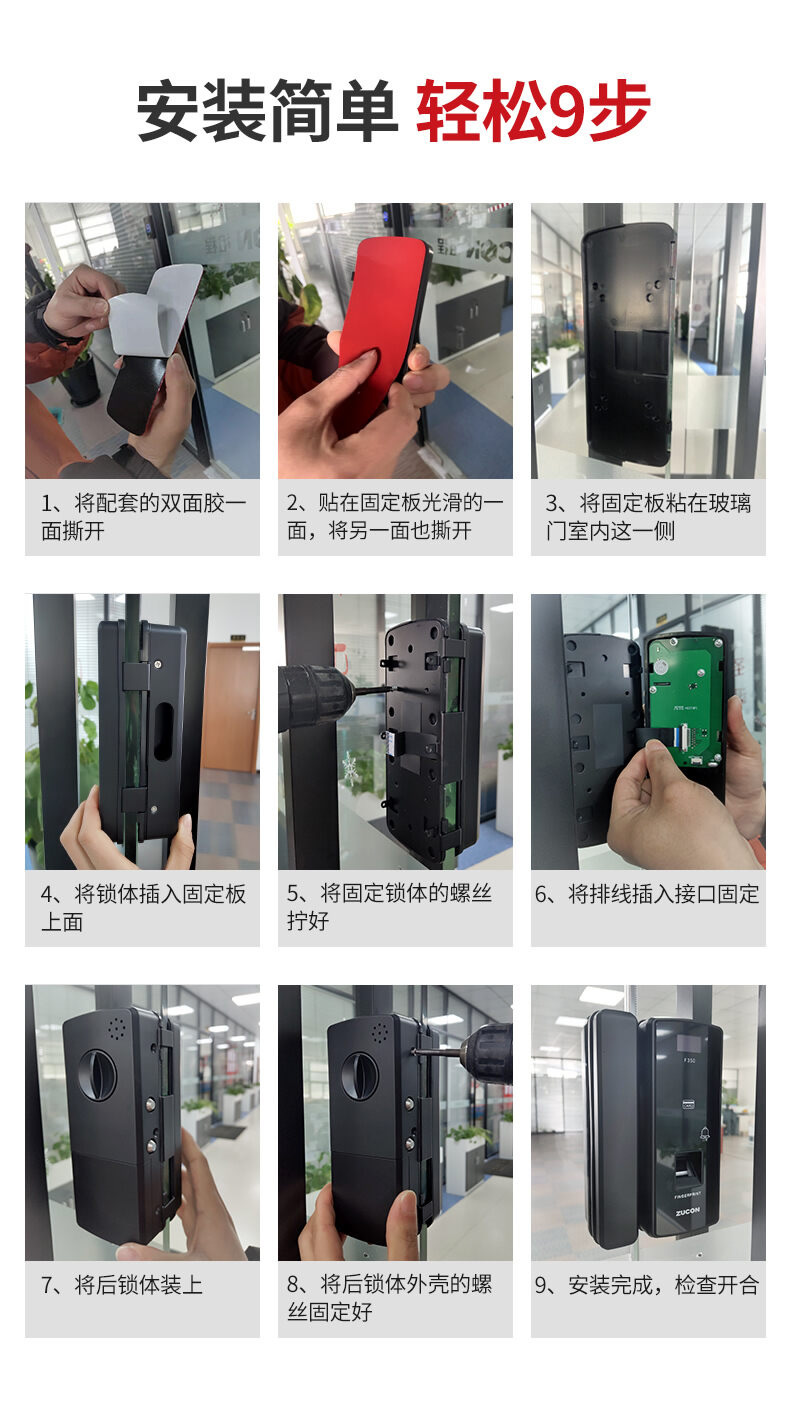 ZUCON祖程F350玻璃門指紋鎖免開孔辦公室密碼鎖商鋪門鎖雙門有框智能電子門禁鎖
