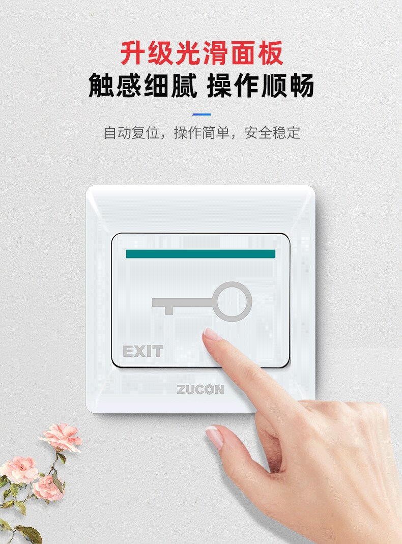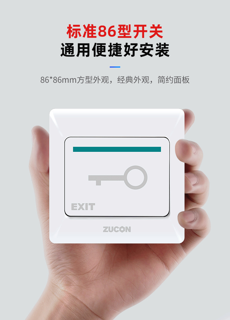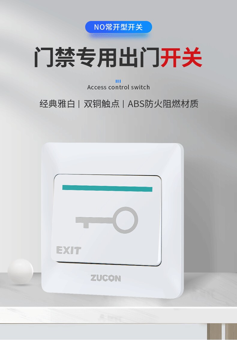 ZUCON祖程K01電子門禁開關 門鎖開關 出門按鈕 86盒大小開關 亞白色