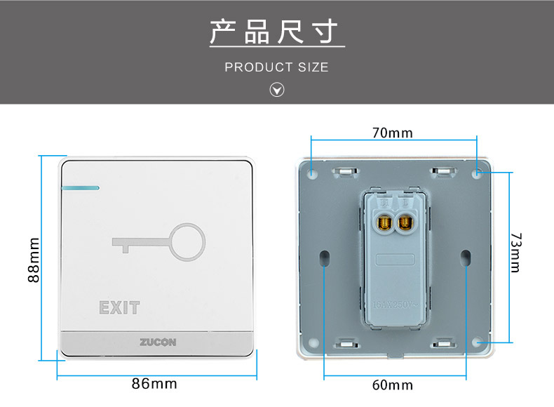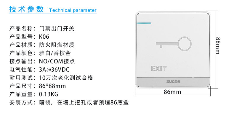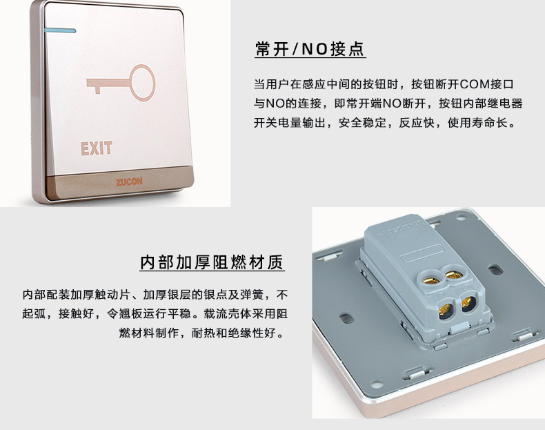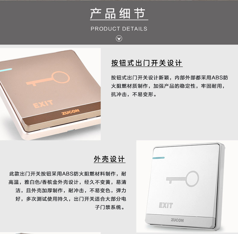 ZUCON祖程K06大面板 電子門禁開關(guān)門鎖開關(guān)出門按鈕 雅白香檳金兩色
