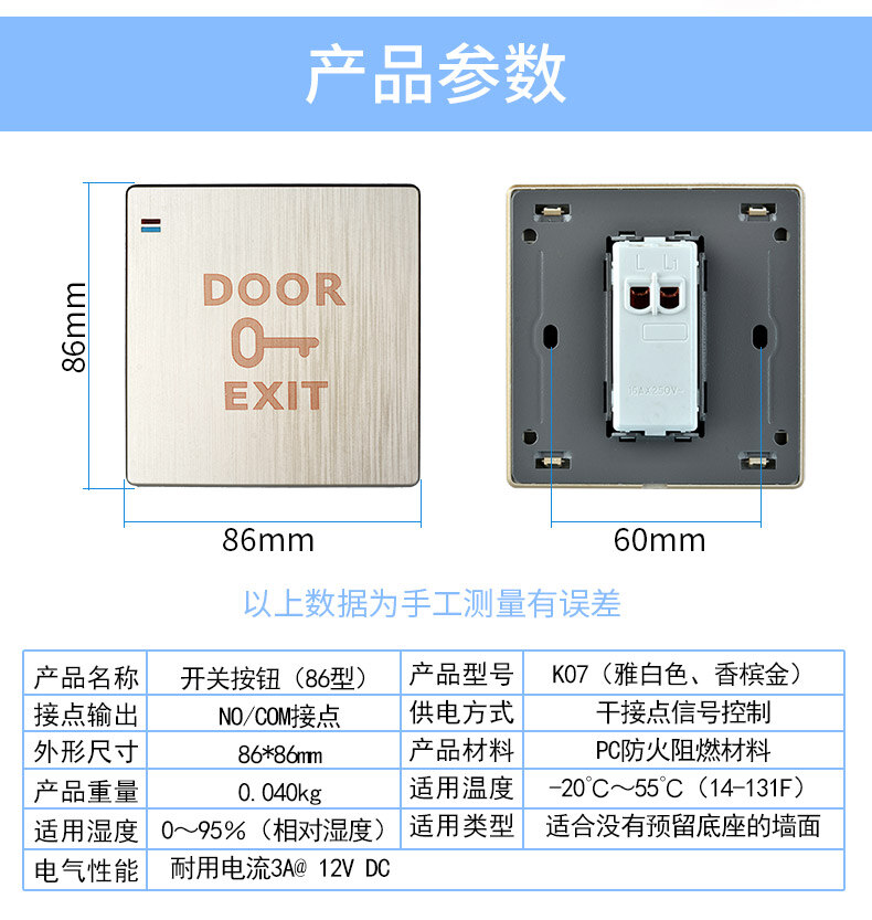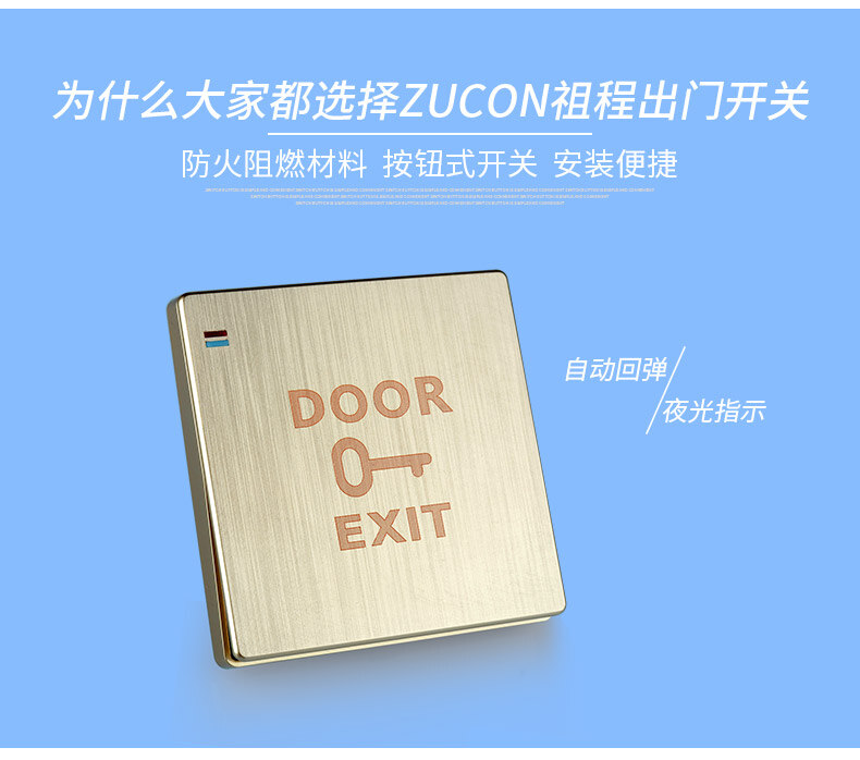 ZUCON祖程K07電子門禁開關門鎖開關出門按鈕雅白拉絲香檳金兩色可選