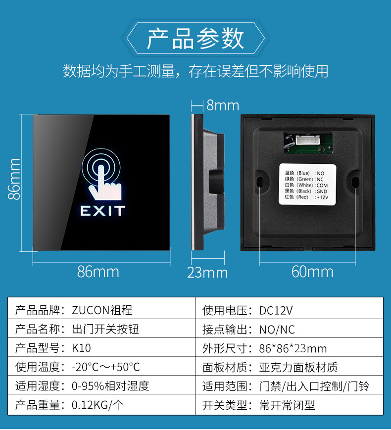 ZUCON祖程K10電子門禁開關(guān) 門禁觸摸開關(guān) 電子開門器K10新款86型