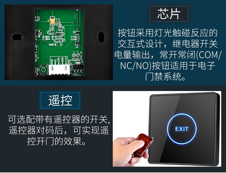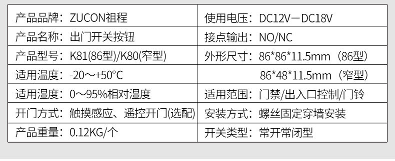 ZUCON祖程K80、K81門禁觸摸開關 出門開關開關 遠程遙控電子開門器K81新款86型